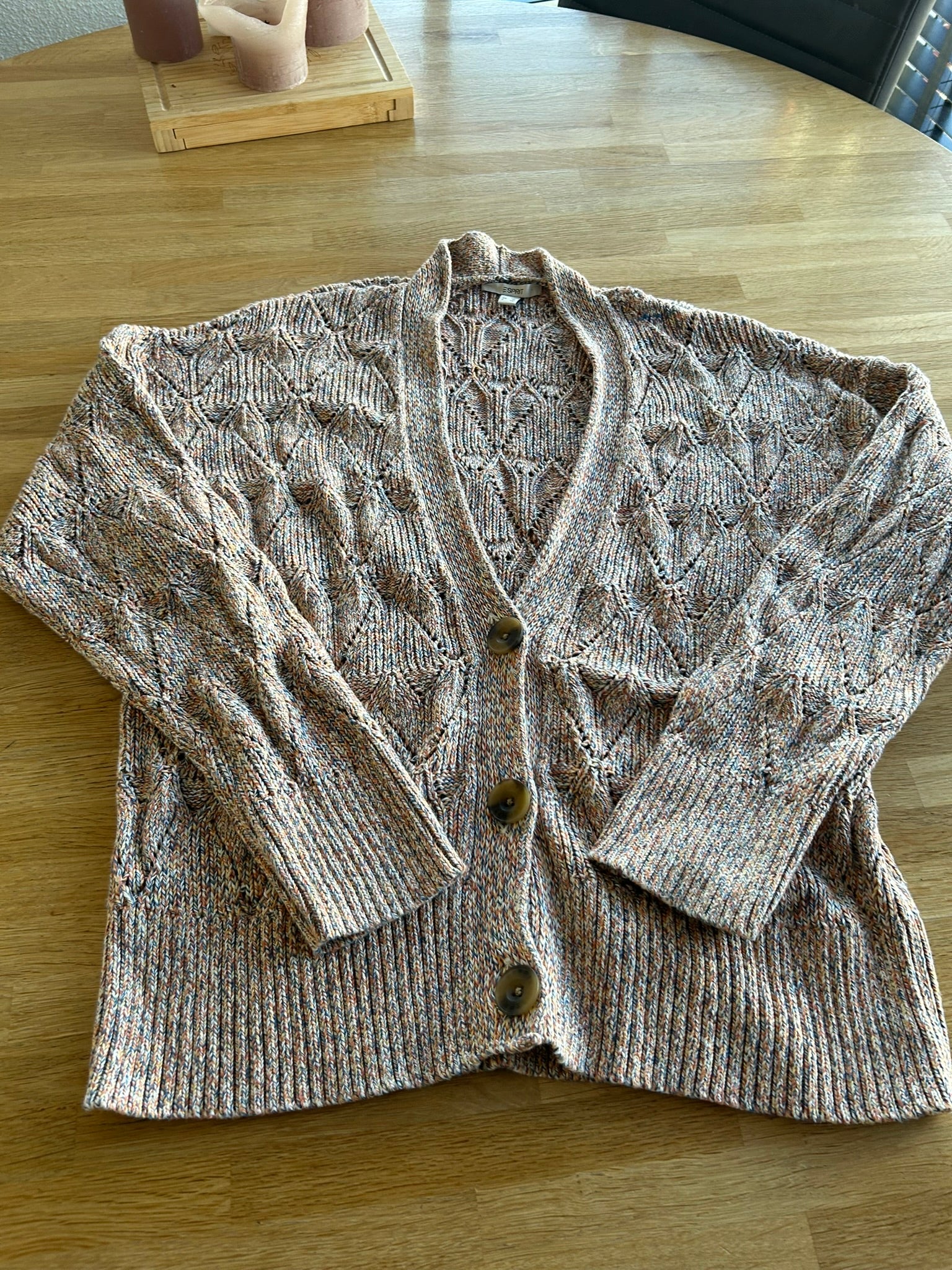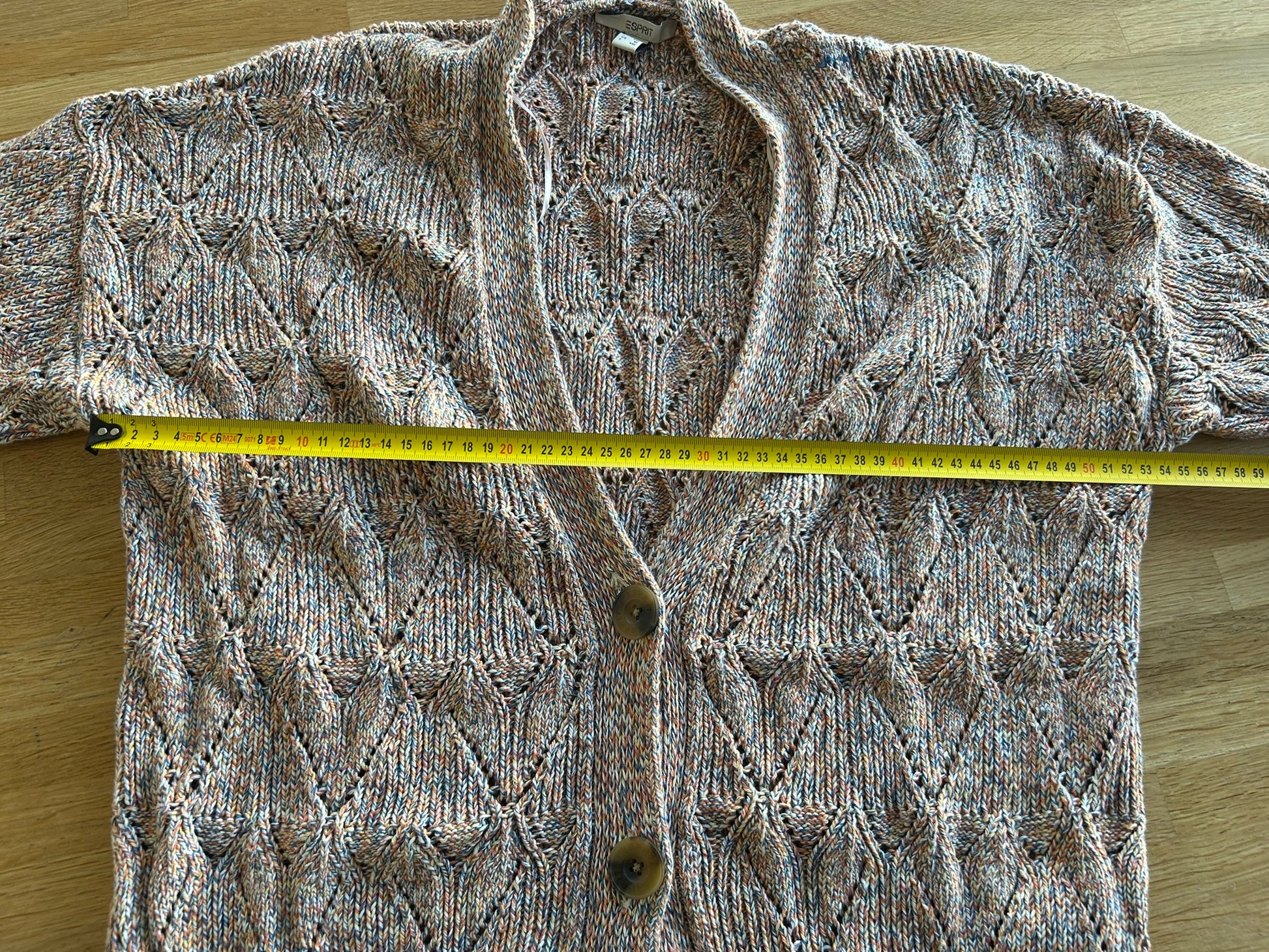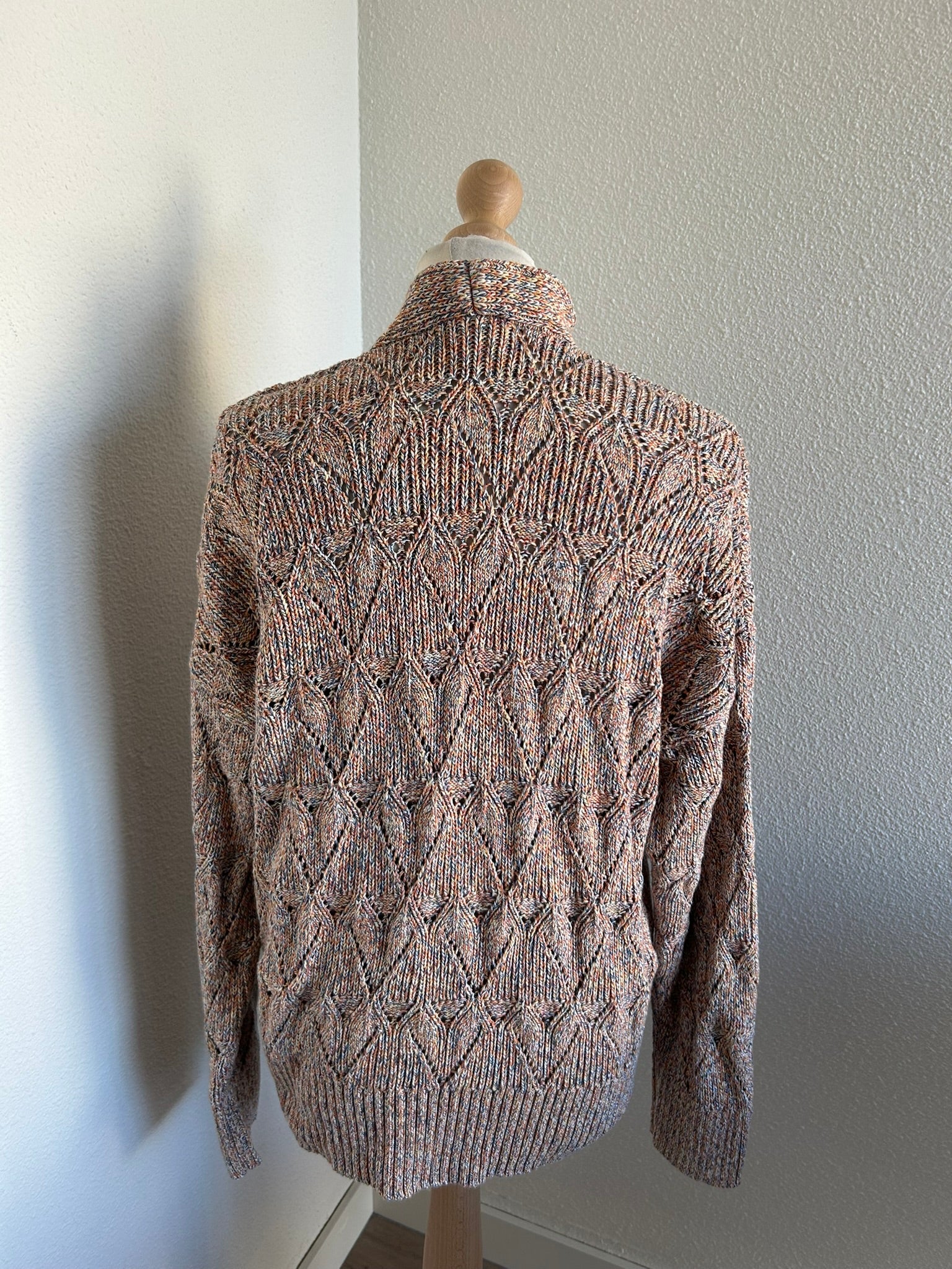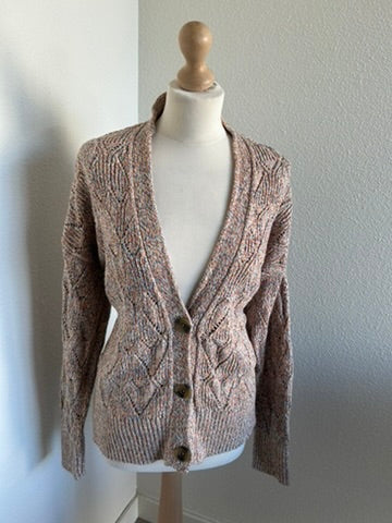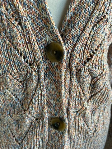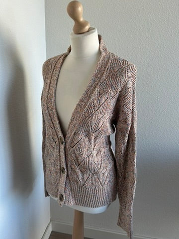 - V-hals, lange mouwen, retro knopen en gehaakt patroon