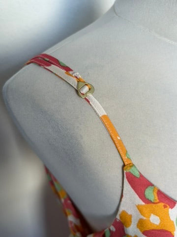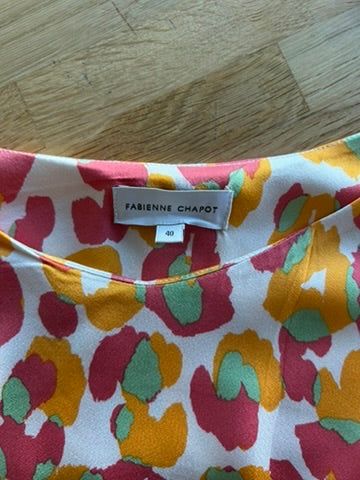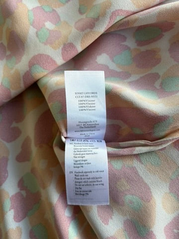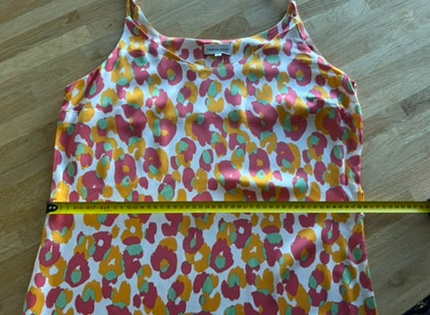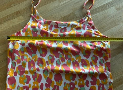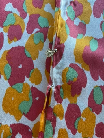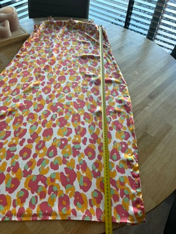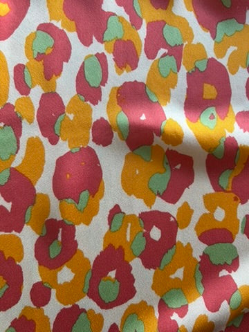 - Creme wit met koraal oranje roze en groene gevlekte print