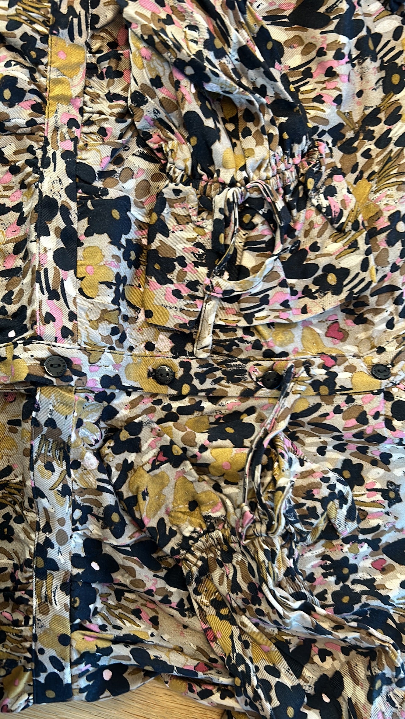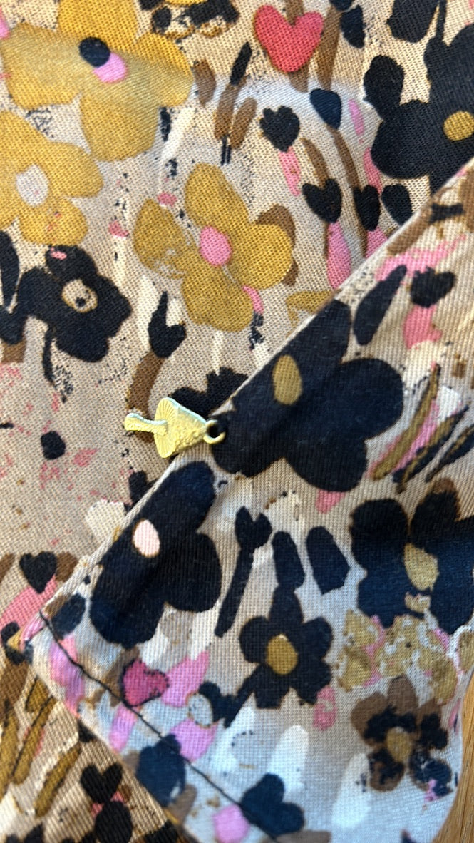 - Lichtbruin mey zwarte bruine en roze bloemen print