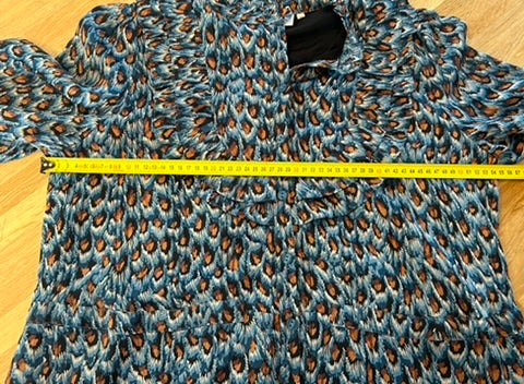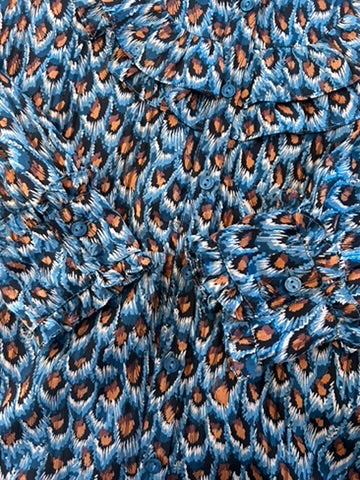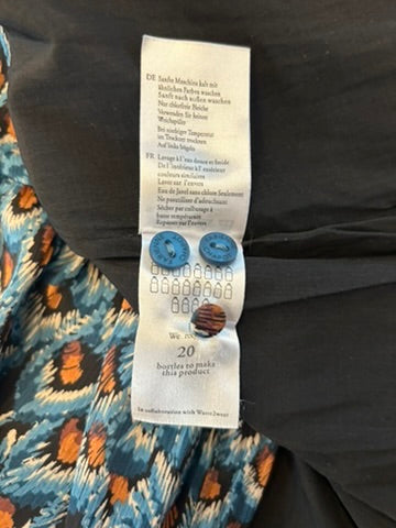 - Zwart met blauwe bruine en witte pauwen print
