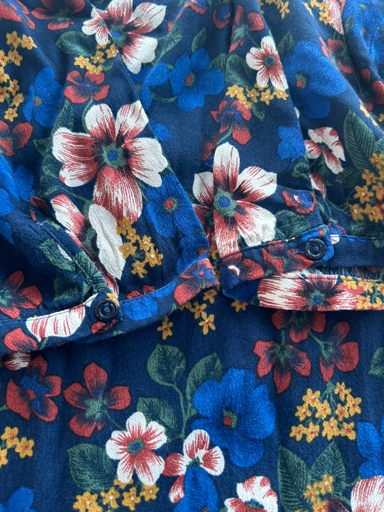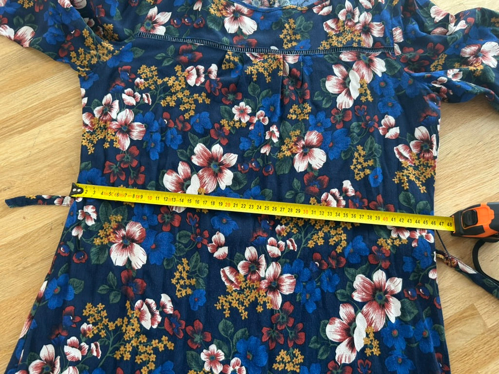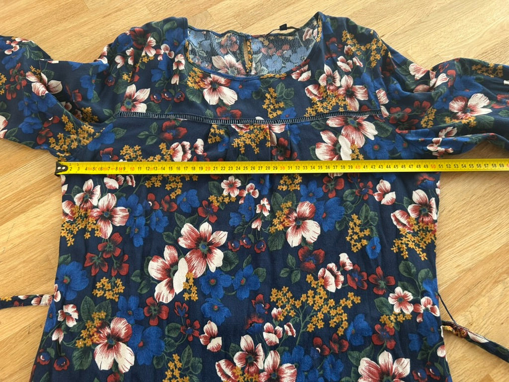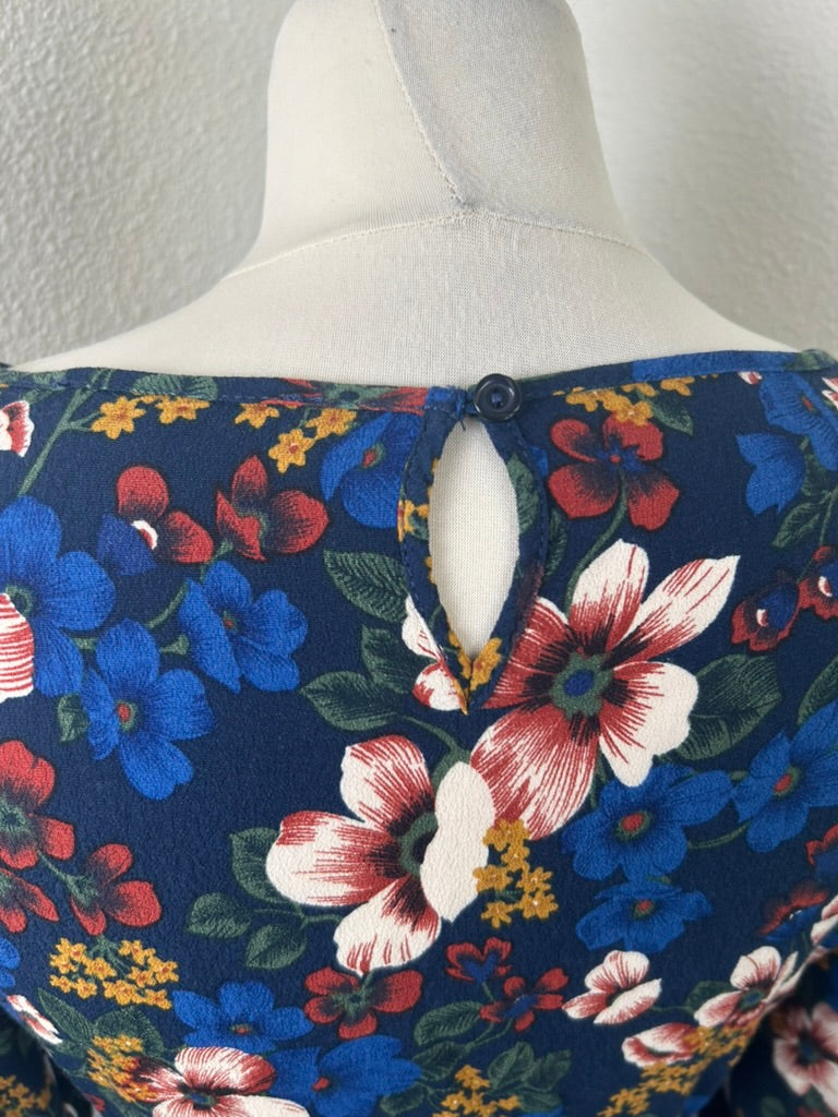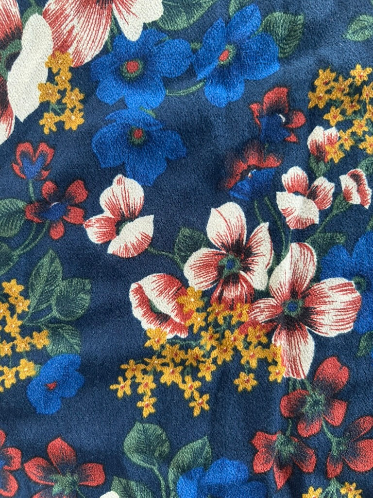 - Donker / marine blauw met witte blauwe mosterdgele roze en rode bloemen print