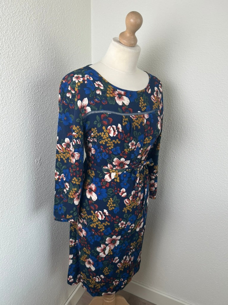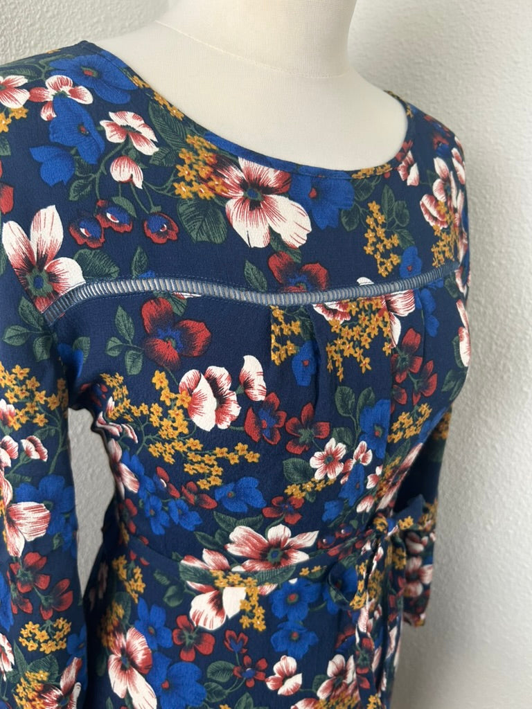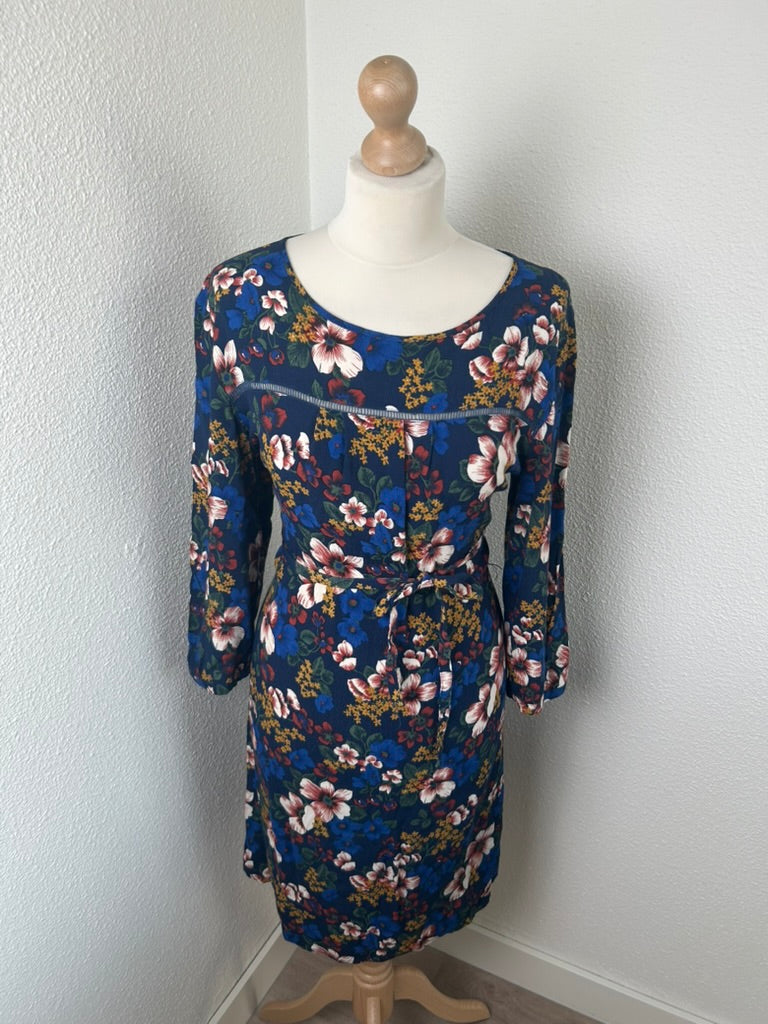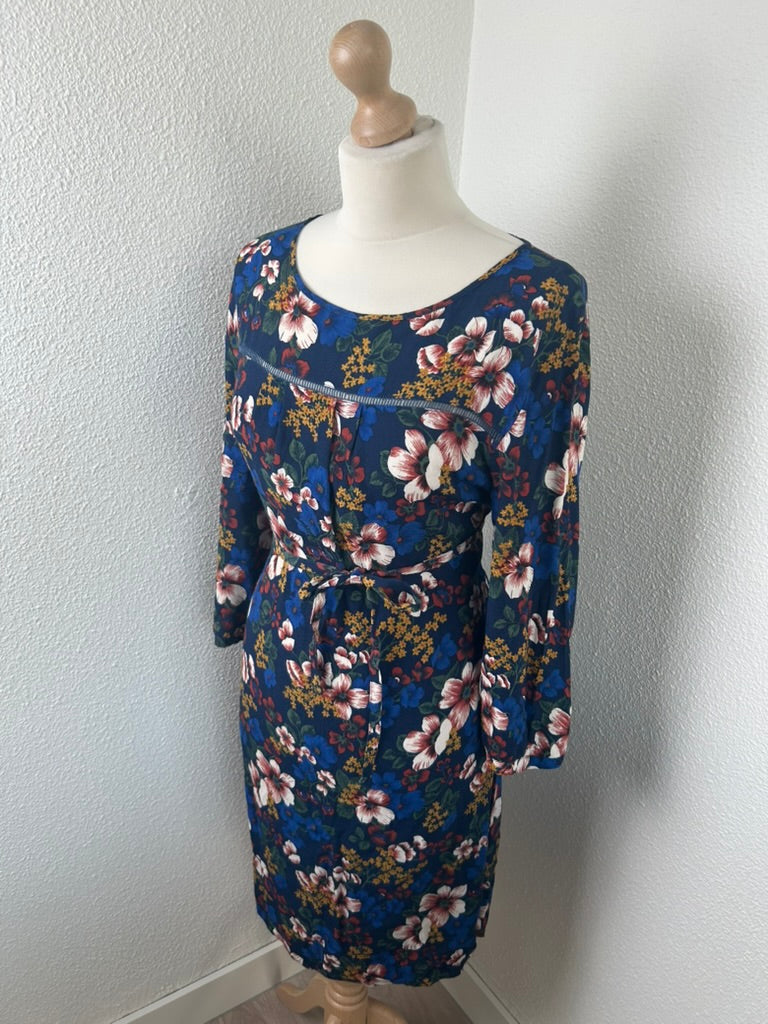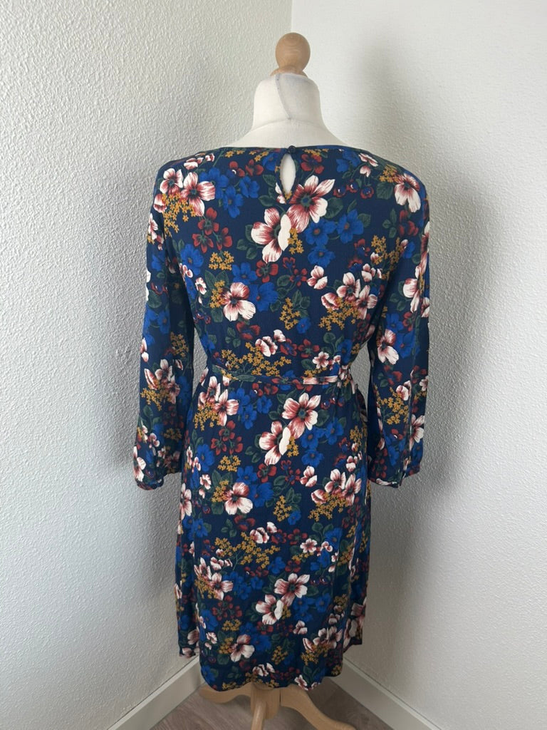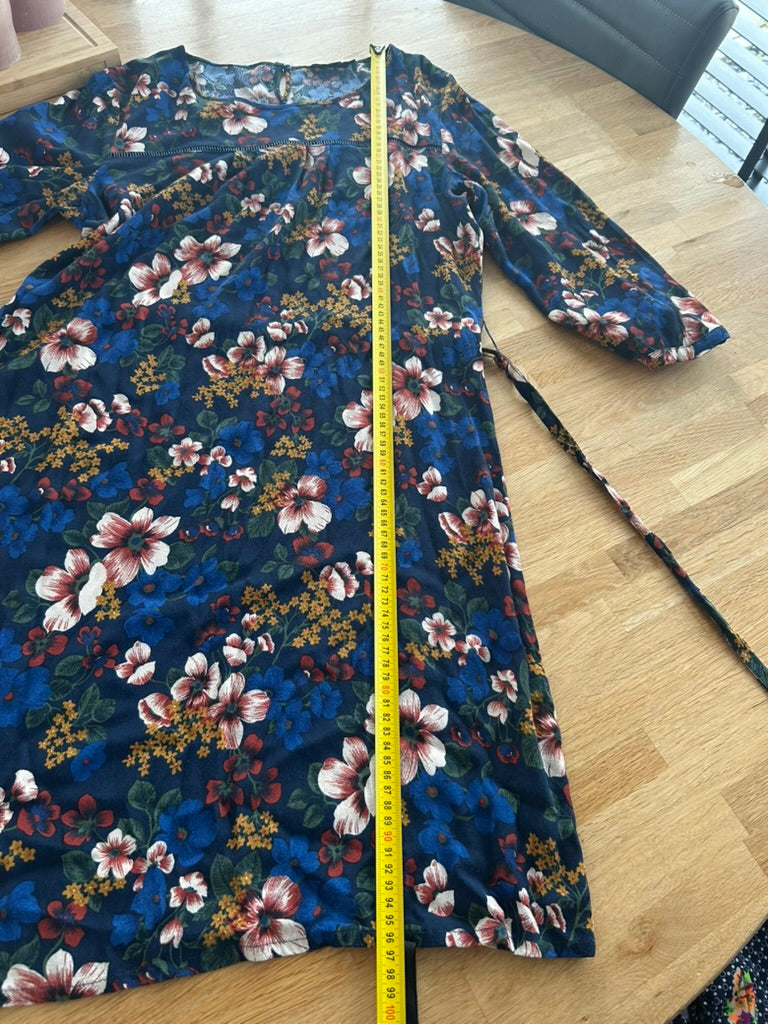 - Donker / marine blauw met witte blauwe mosterdgele roze en rode bloemen print