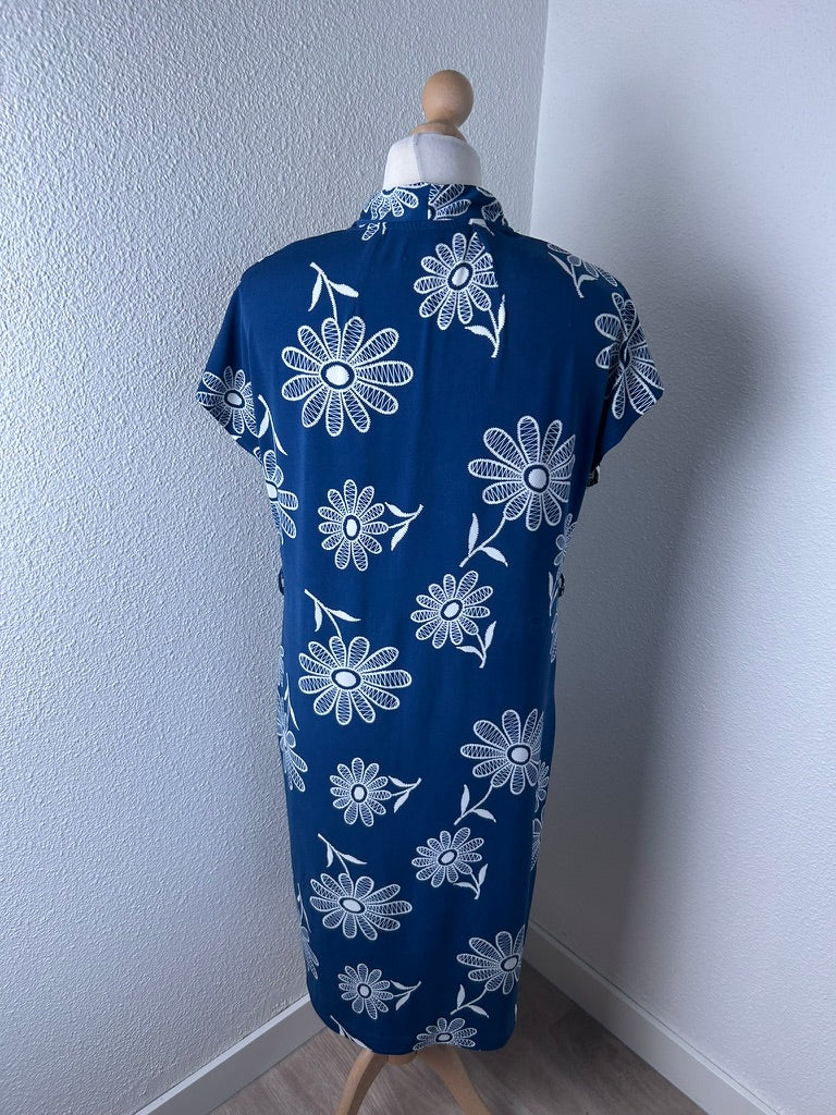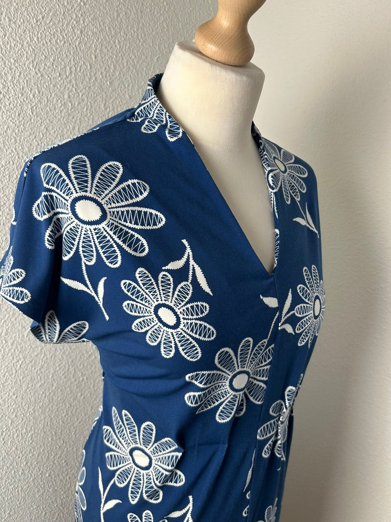 - Kort kraagje met inkeping aan de hals, korte mouwen, leuke plooien