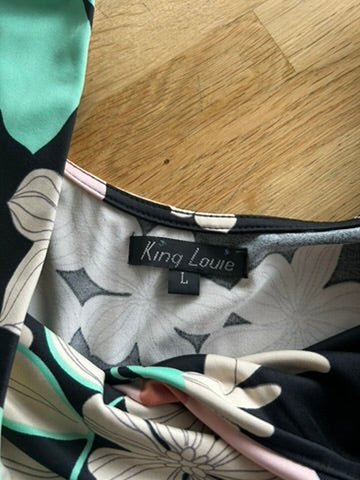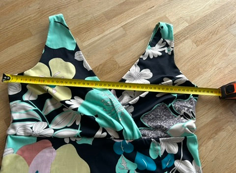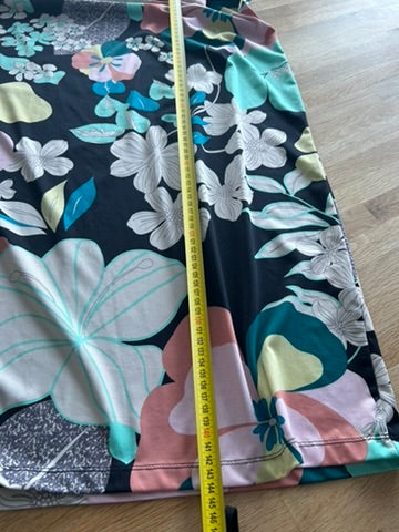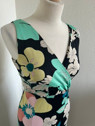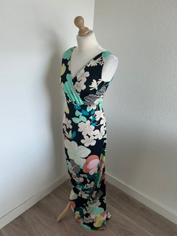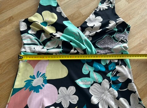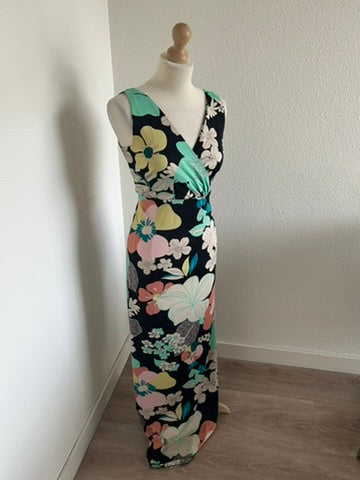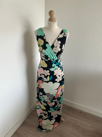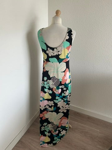 - Super mooie zwarte jurk met pastel kleurige bloemen print in oranje roze geel blauw wit