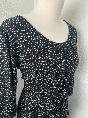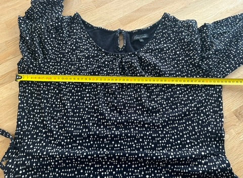 - Ronde boothals, halve mouwen met detail, knooplint rond het middel, nek detail met knoopje