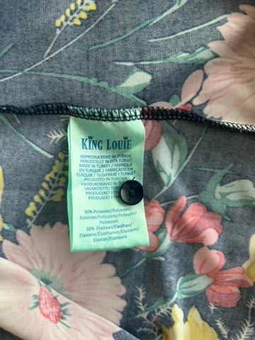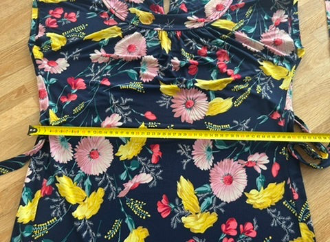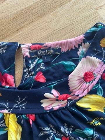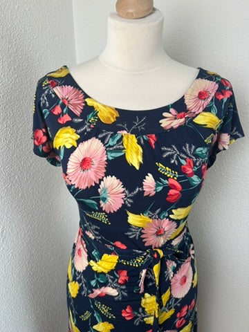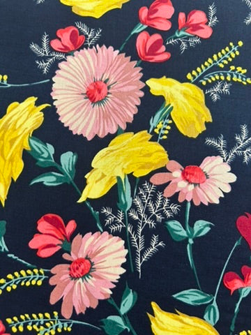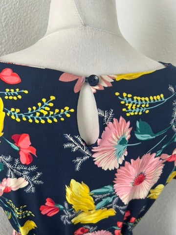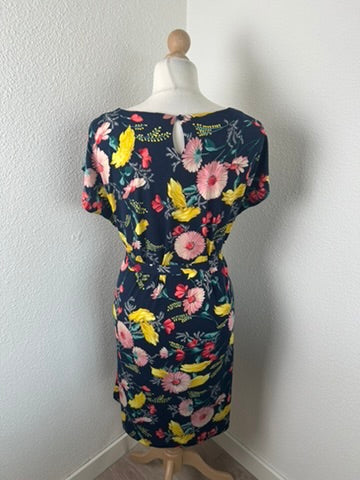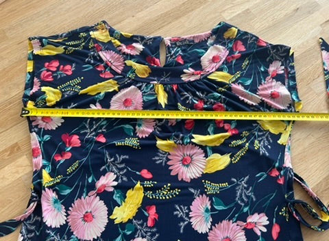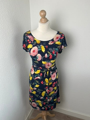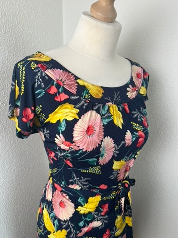 - Donker / marine blauw met gekleurde bloemen print in roze wit geel en groen