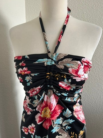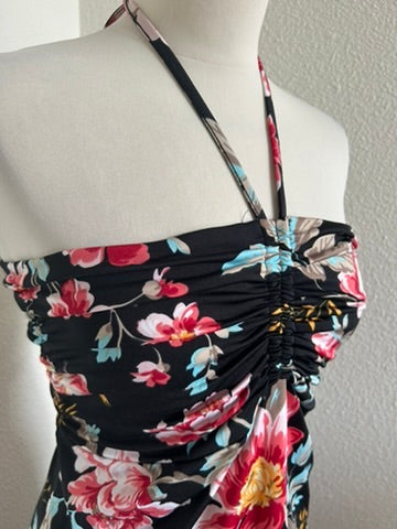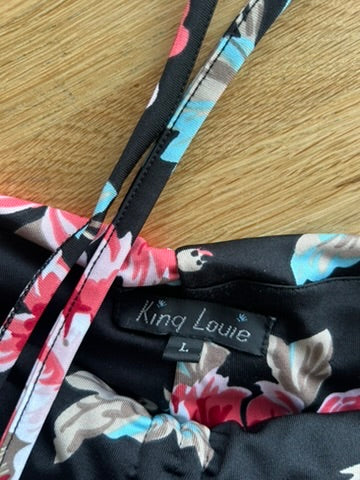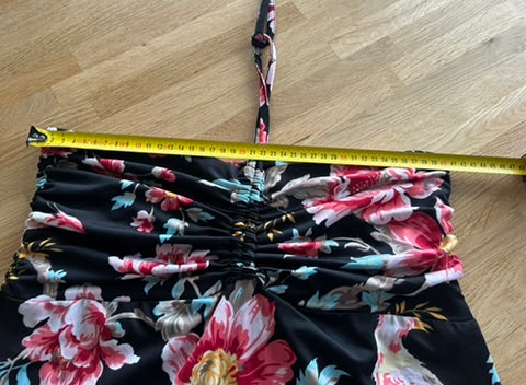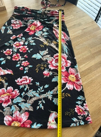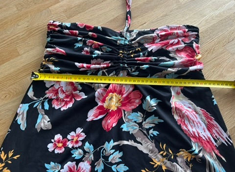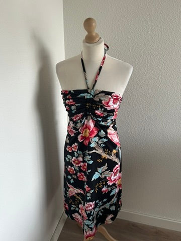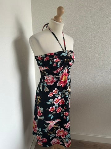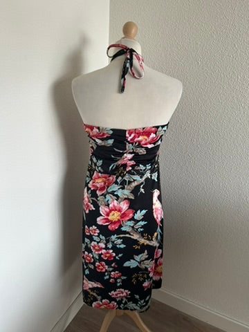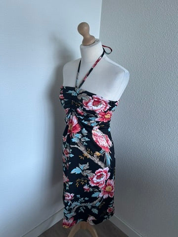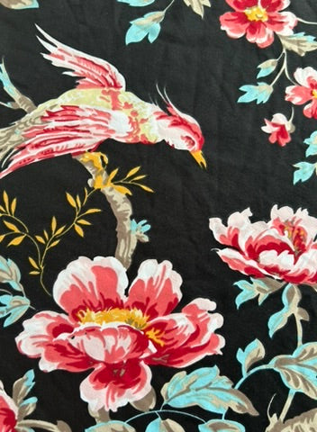 - Zwart met met roze witte turquoise blauwe vogels en bloemen print