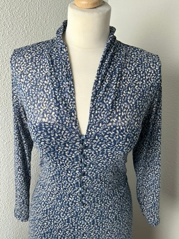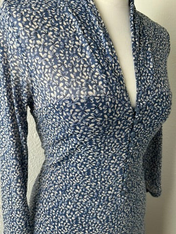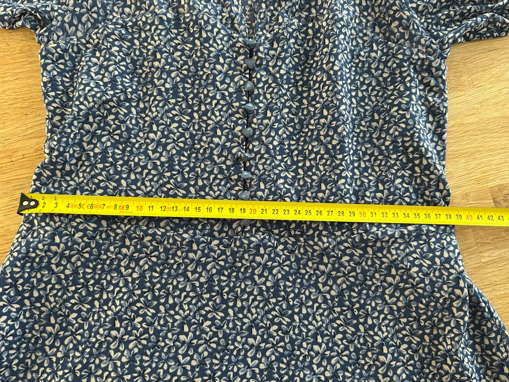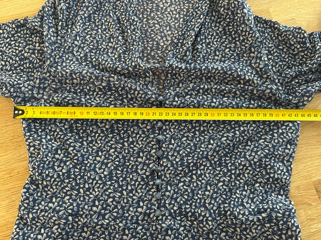 - Blauw met witte bloemen print