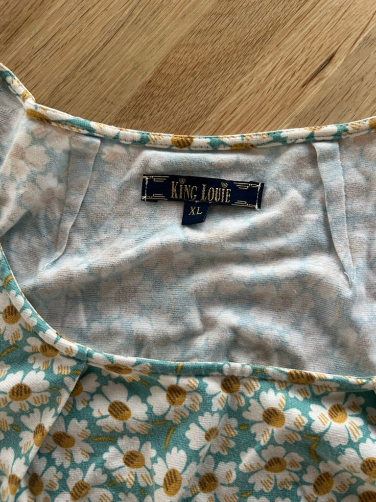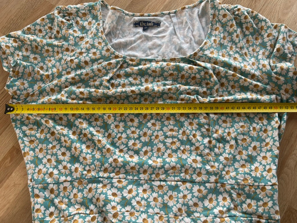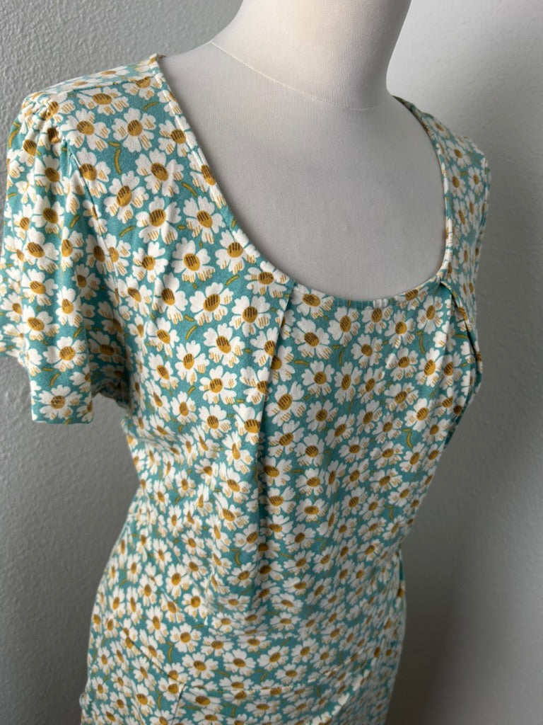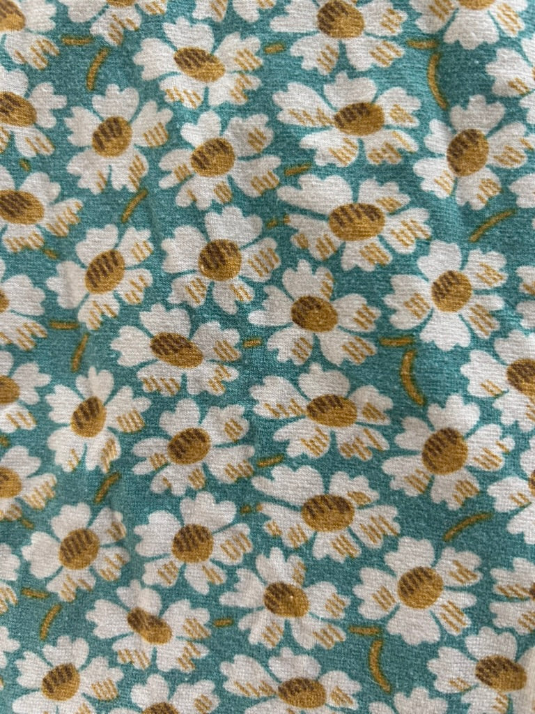 - Turquoise- groen met witte en koraal-oranje bloemen print