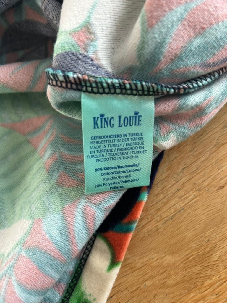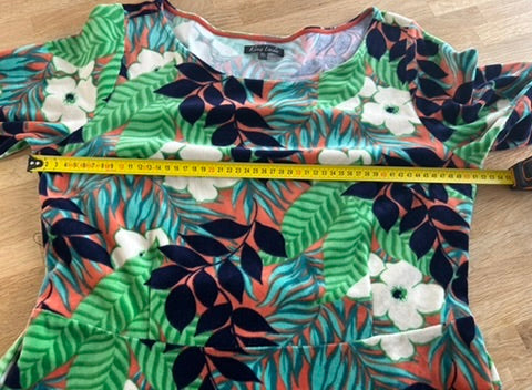 - Zwart met blauw koraal wit en groene retro bladeren print