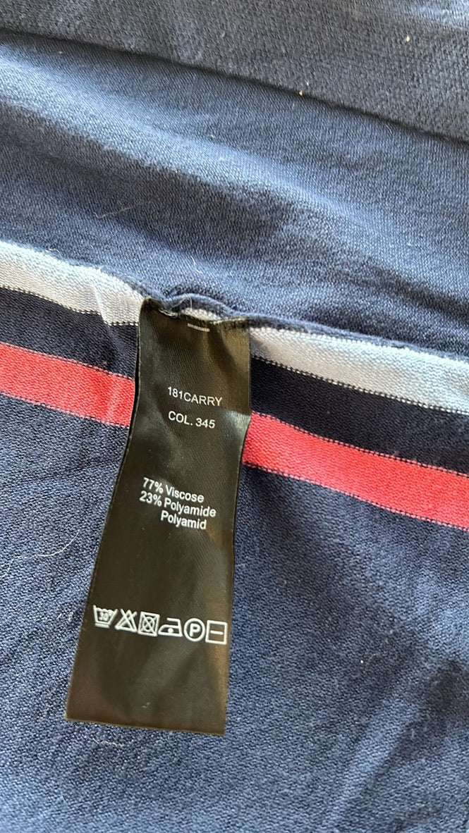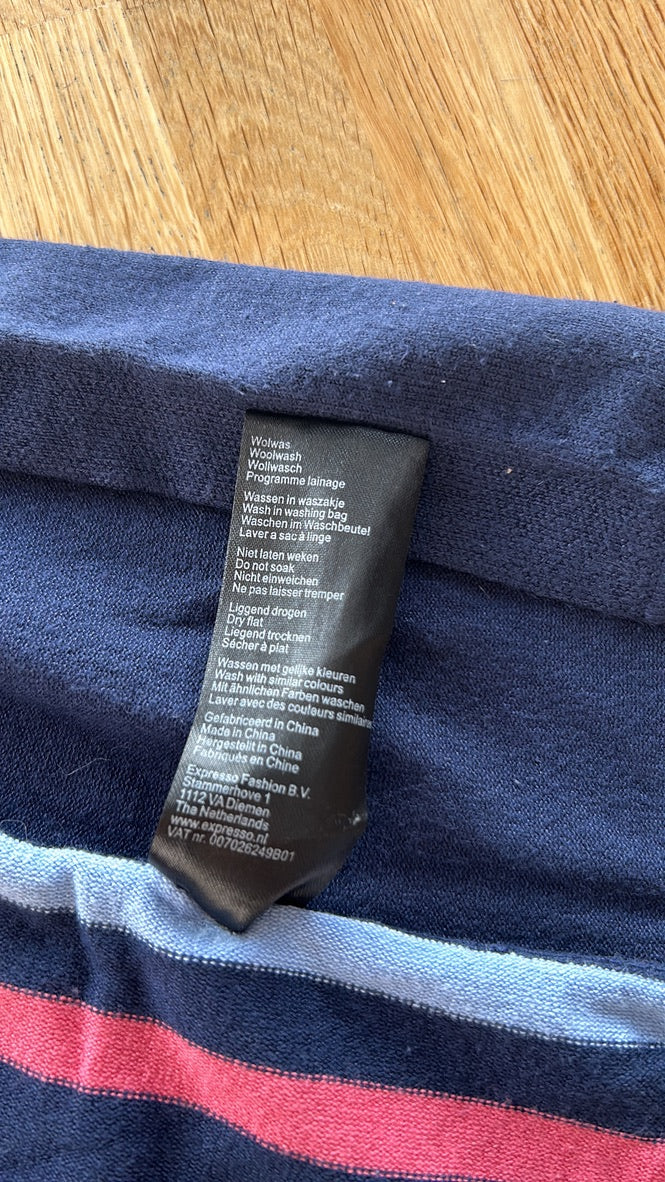 - Donkerblauw, marineblauw met roze en lichtblauwe strepen