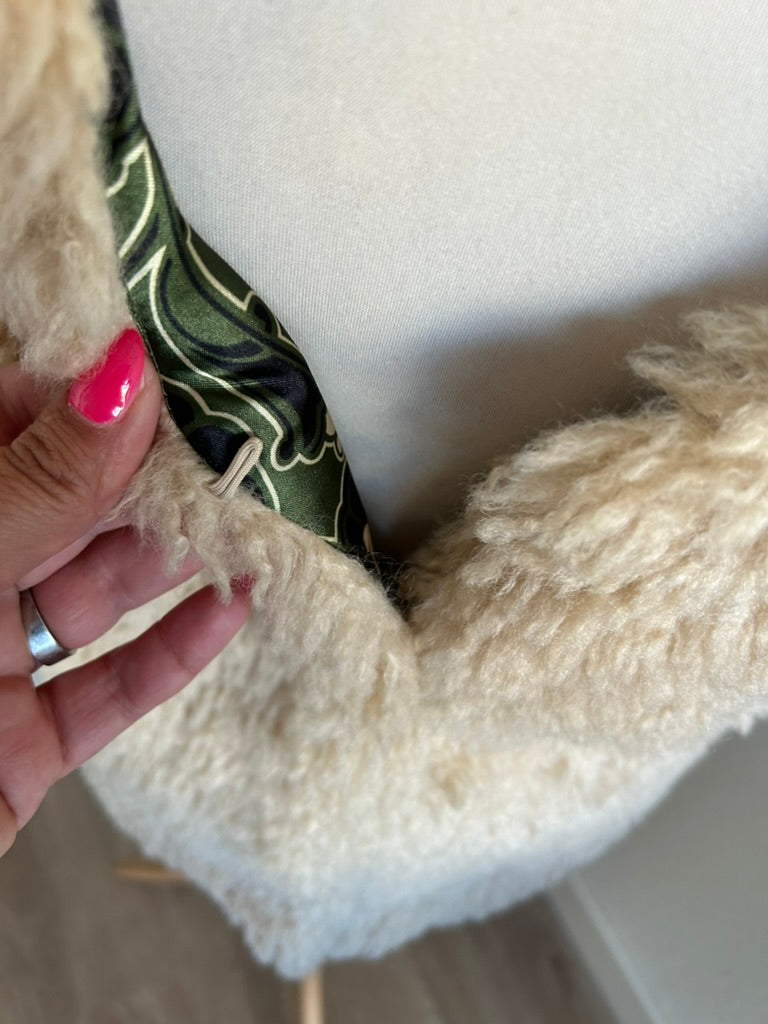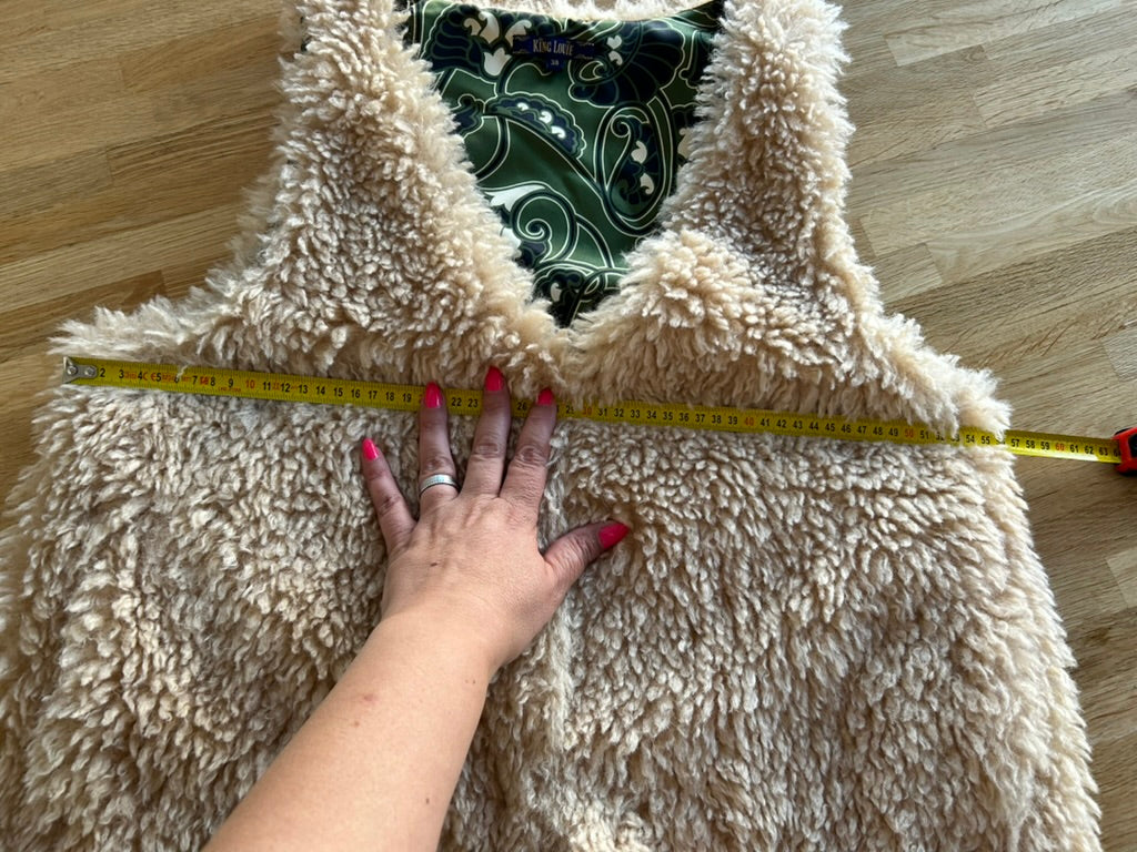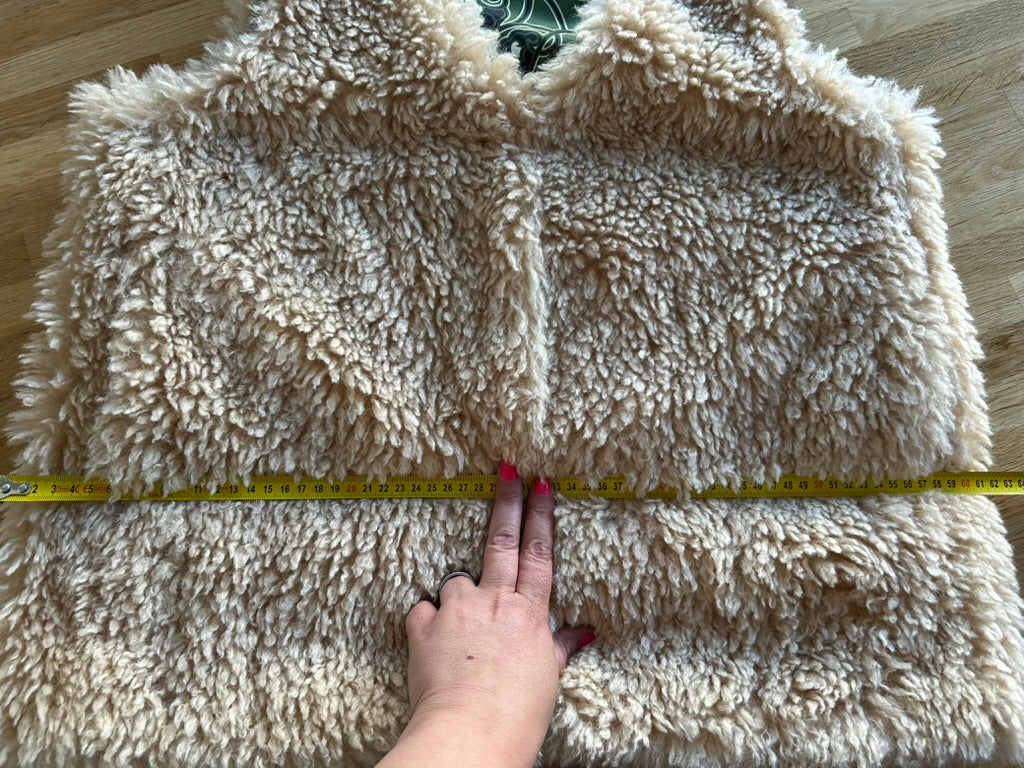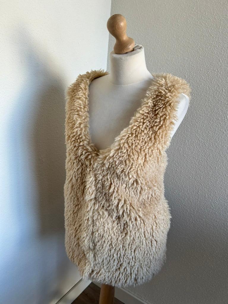 - Leuke fluffy faux-fur vest in creme/beige met gave groene voering