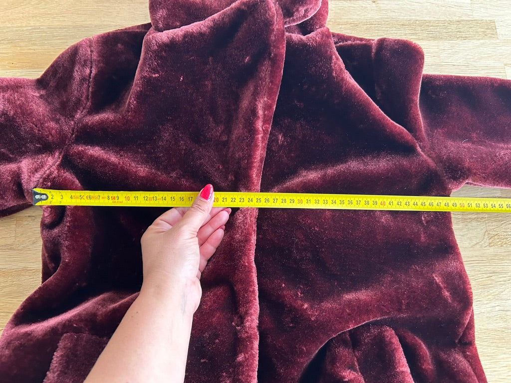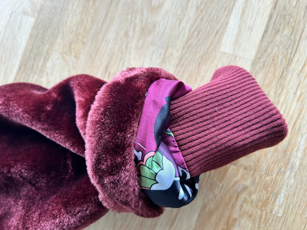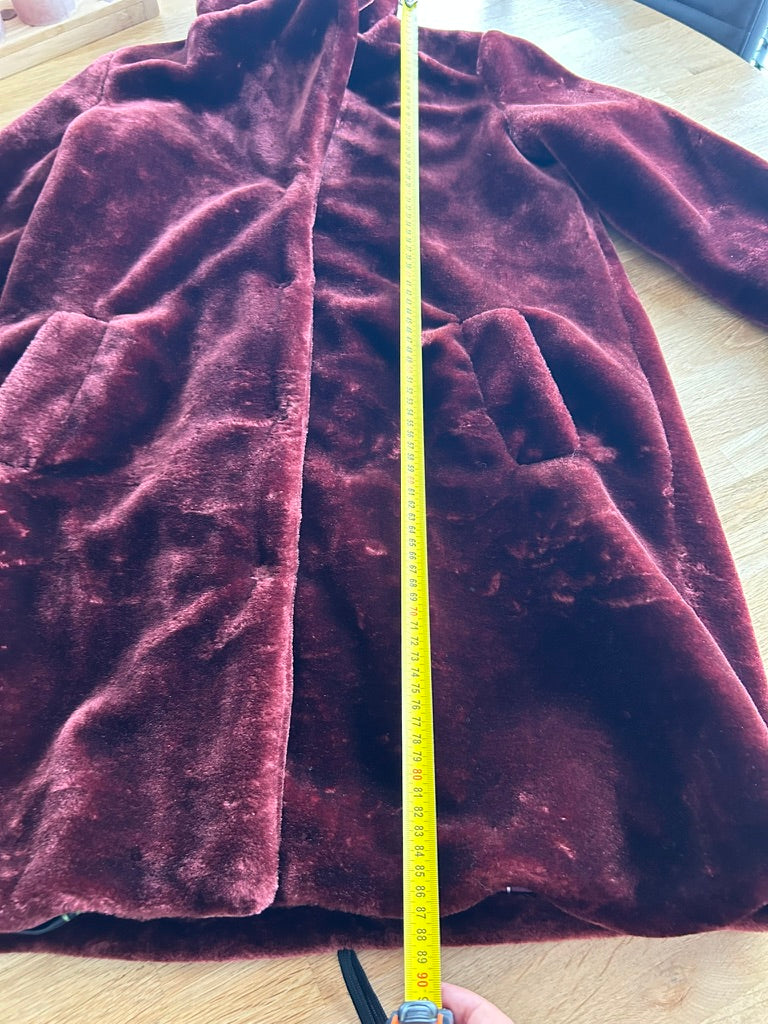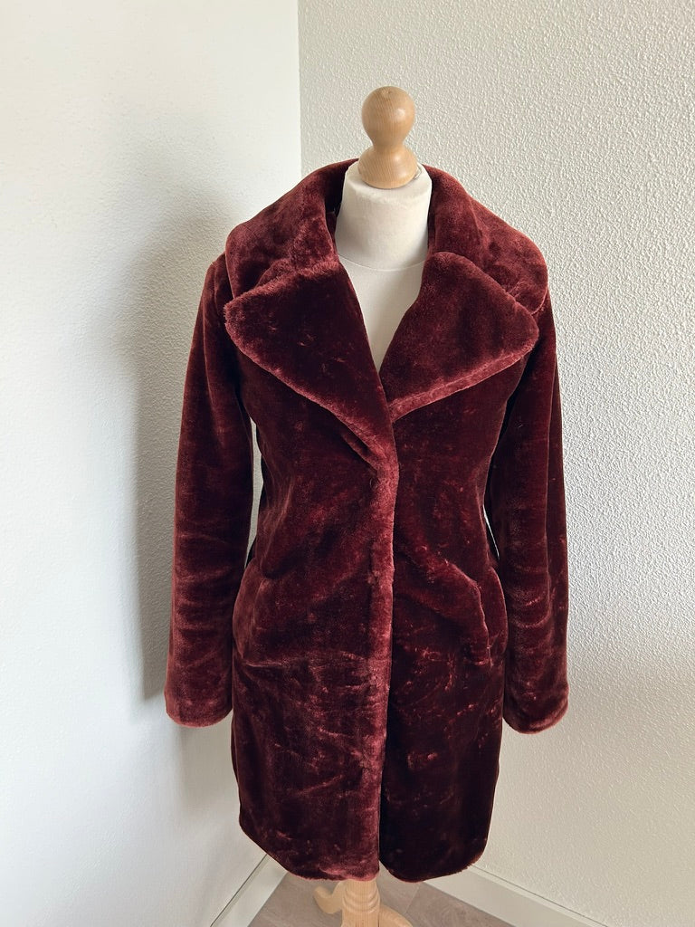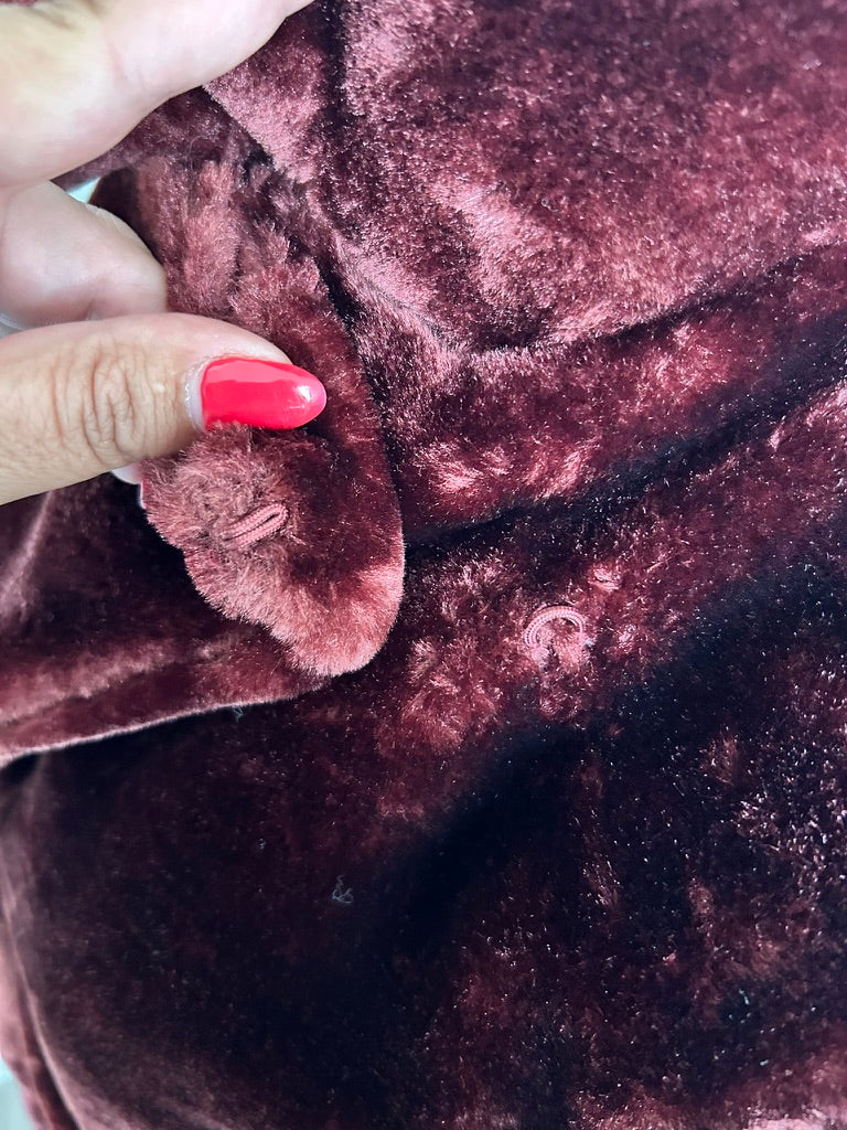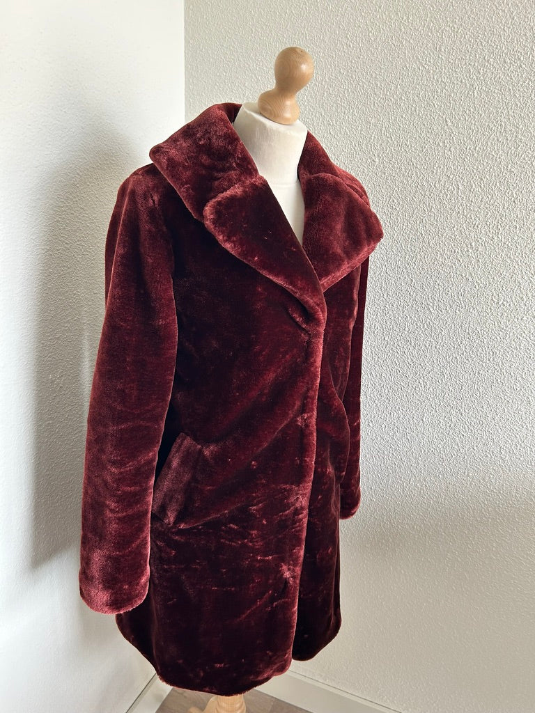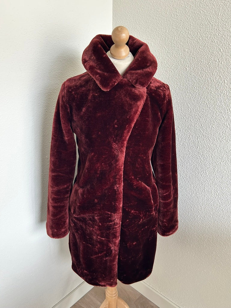 - Leuk retro fluffy jas in wijnrood/donkerrood met gladde intacte binnenvoering