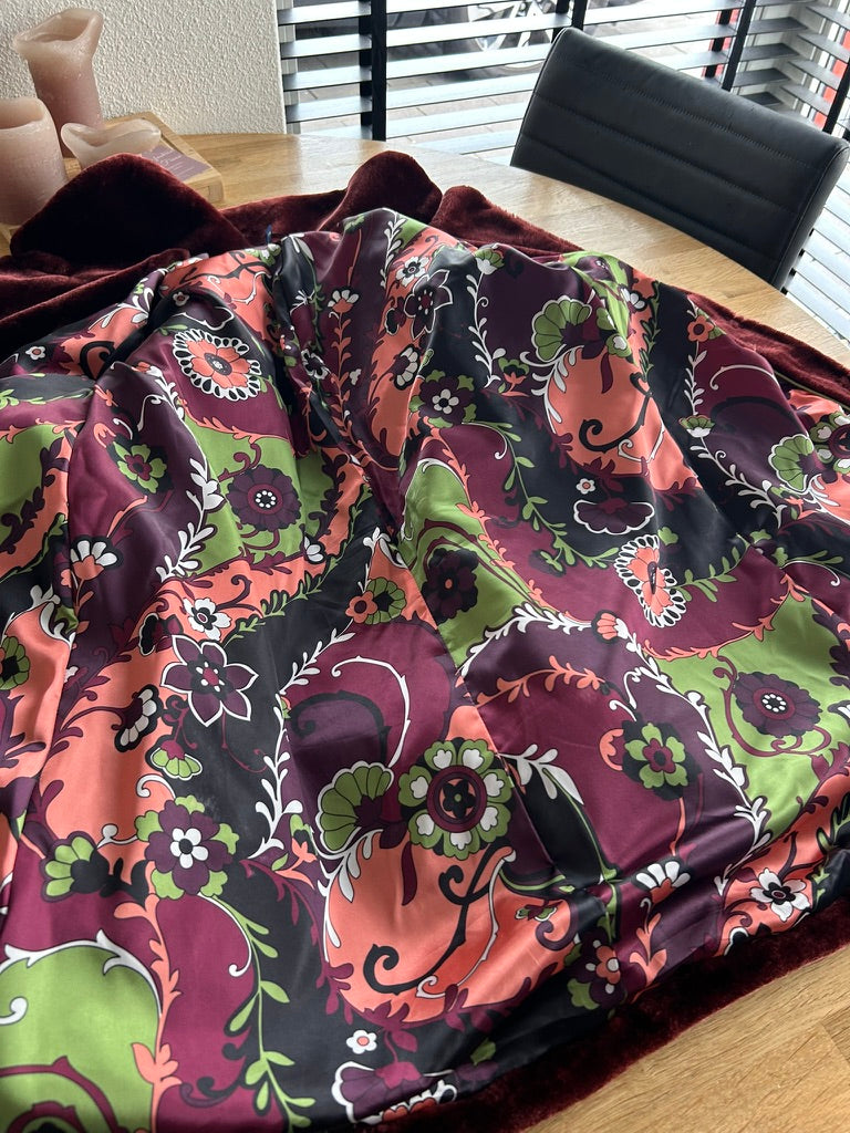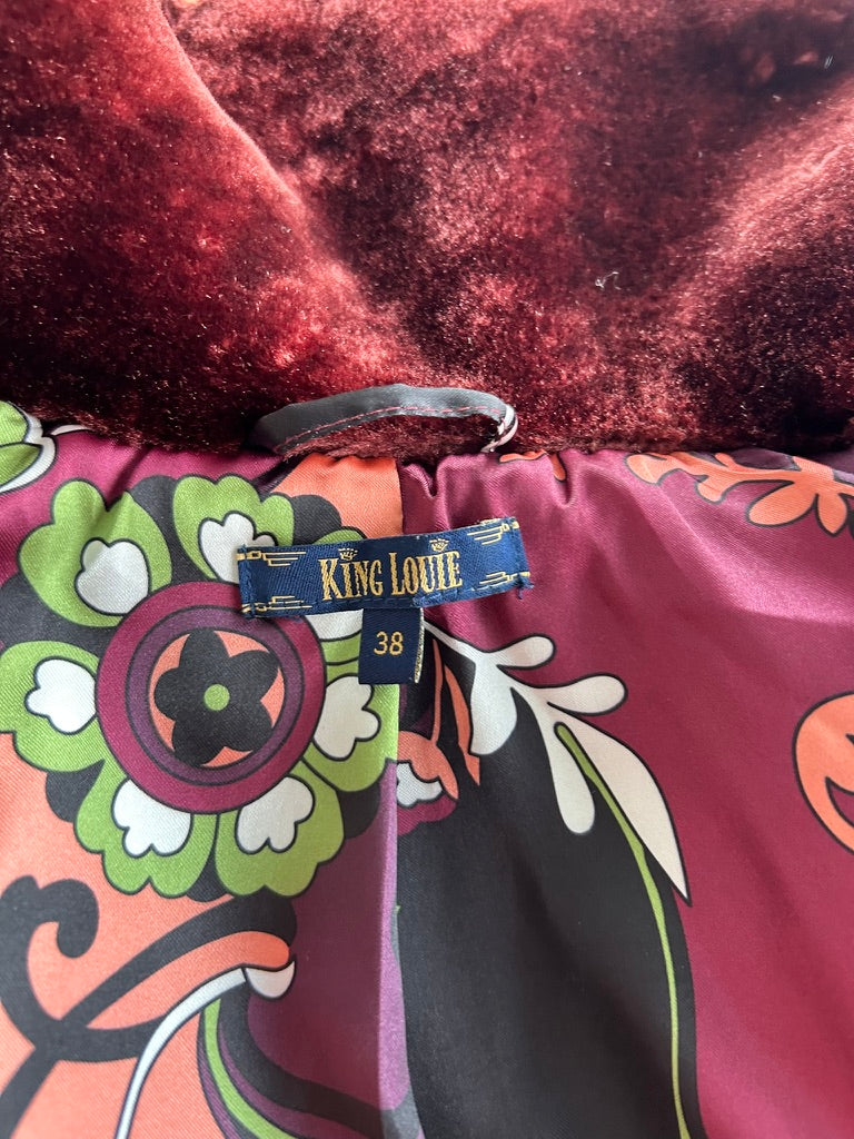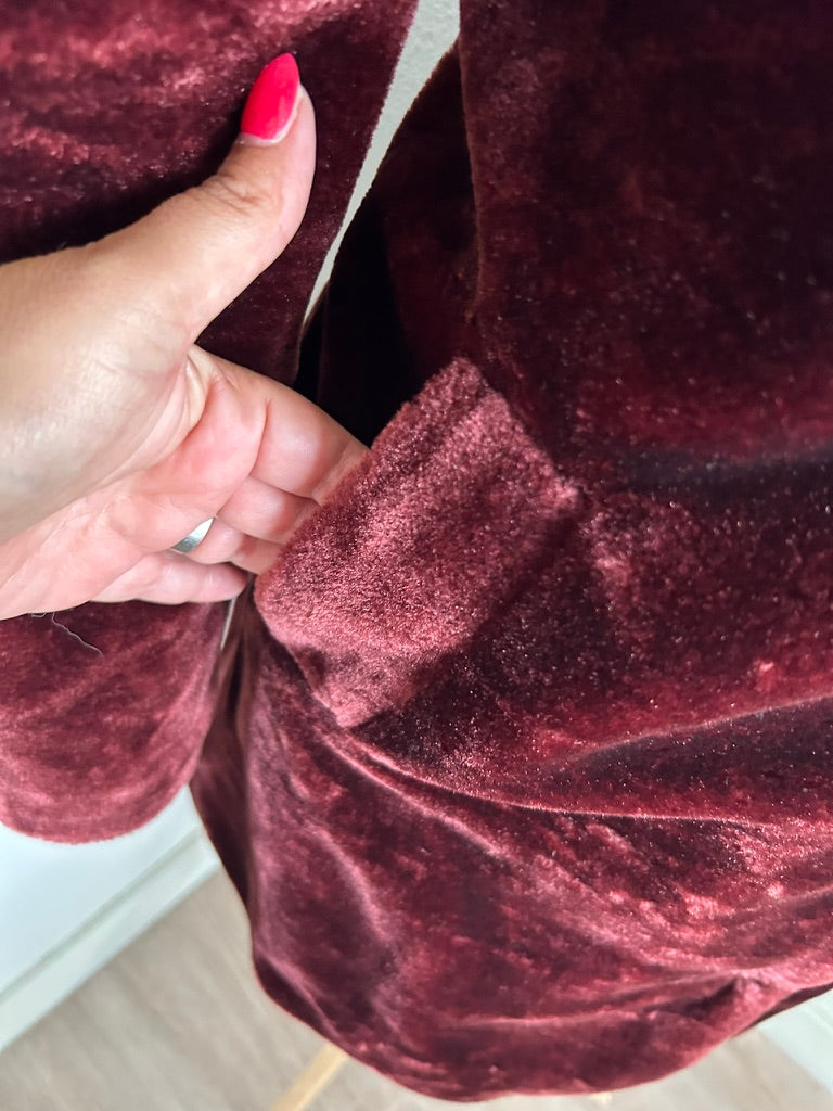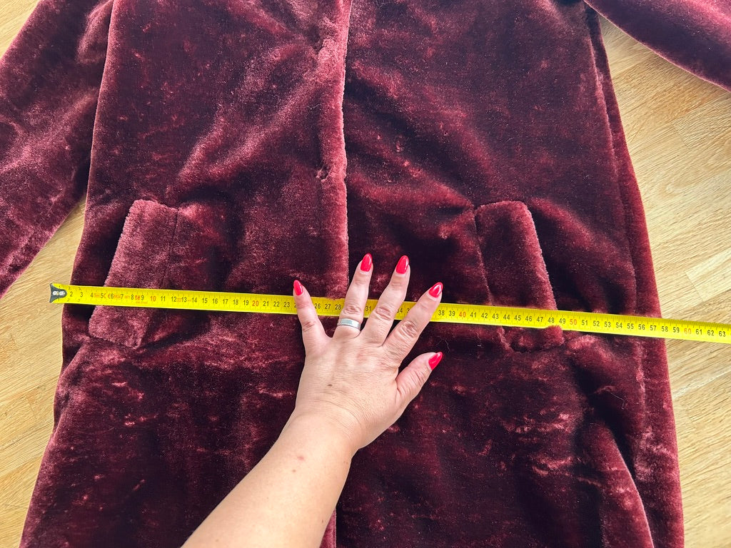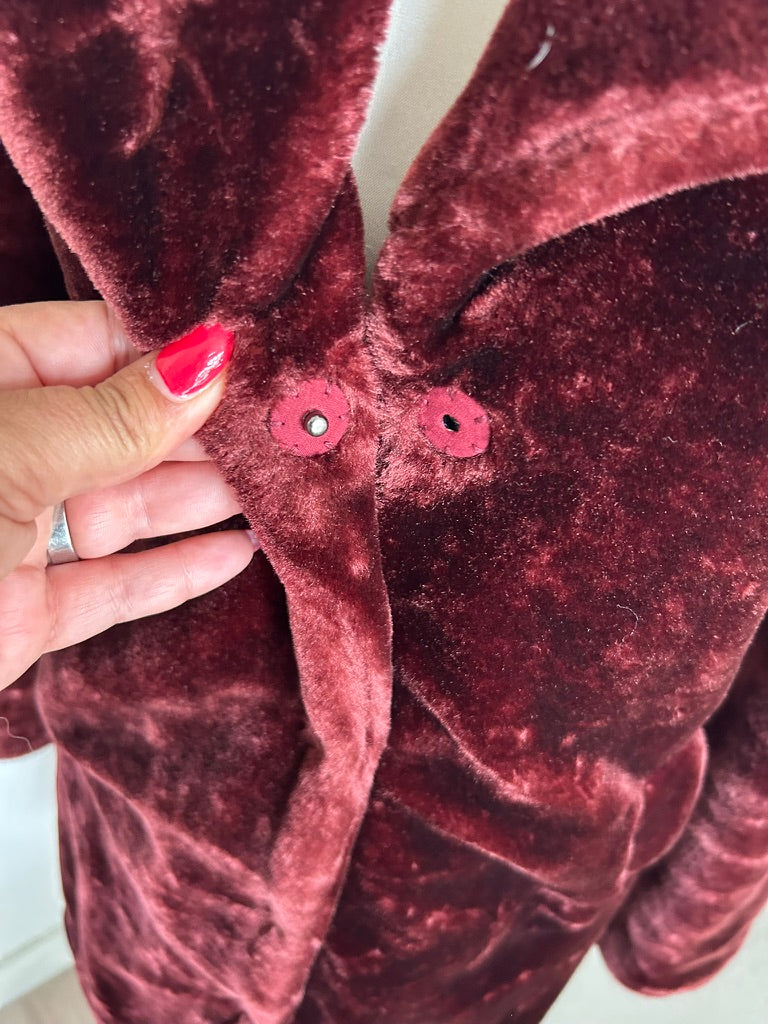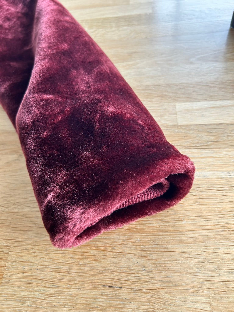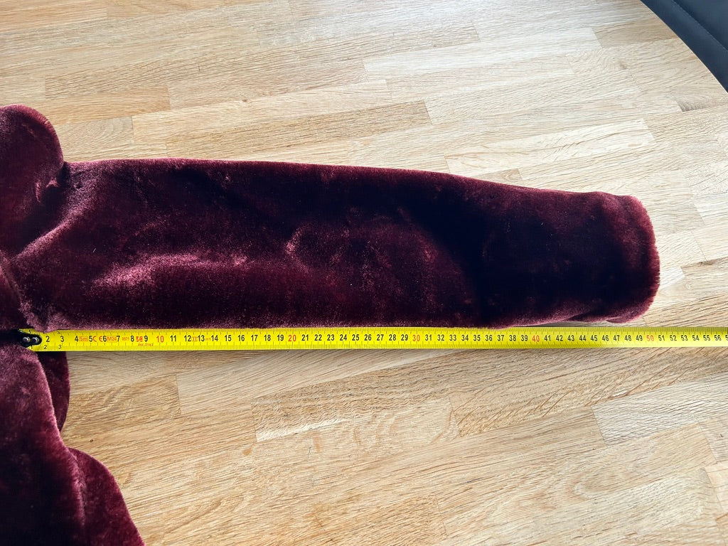 - Leuk retro fluffy jas in wijnrood/donkerrood met gladde intacte binnenvoering