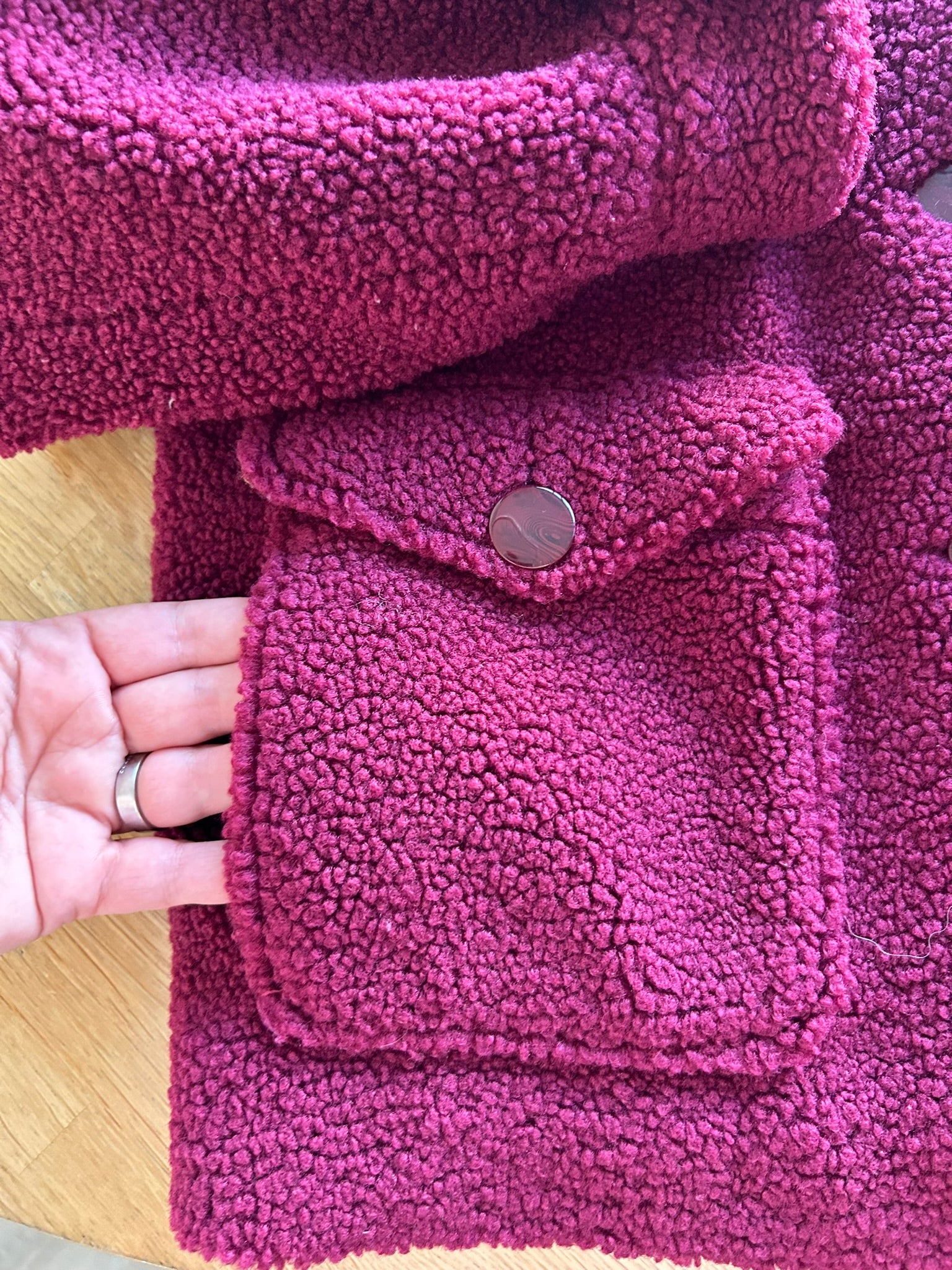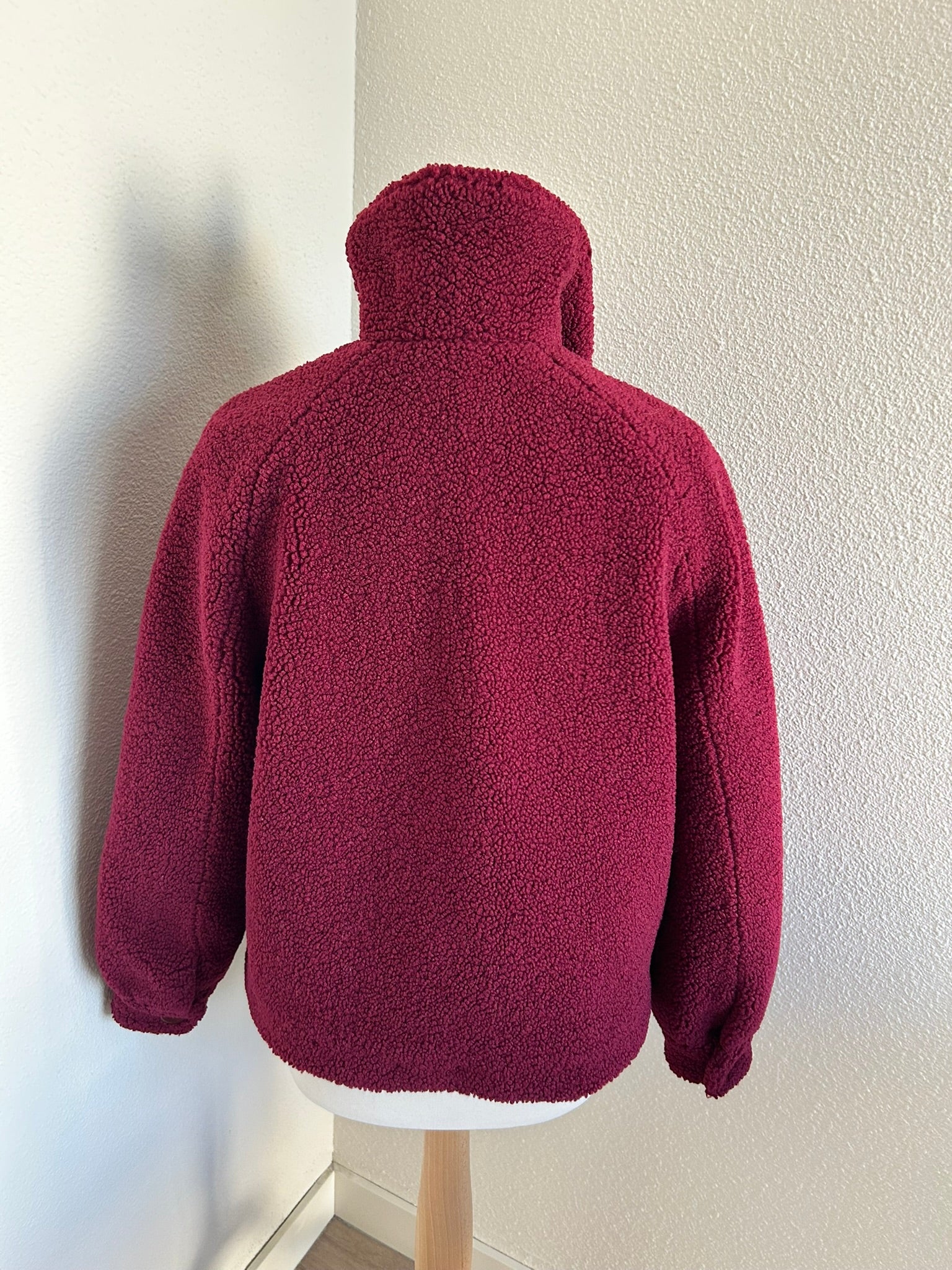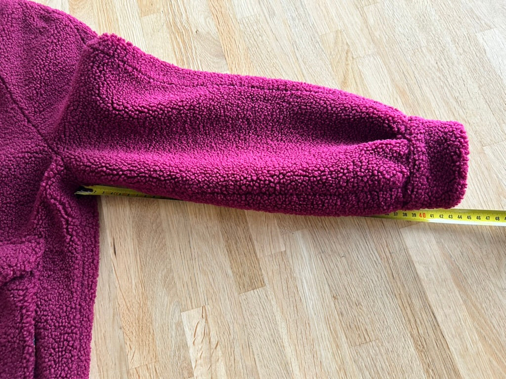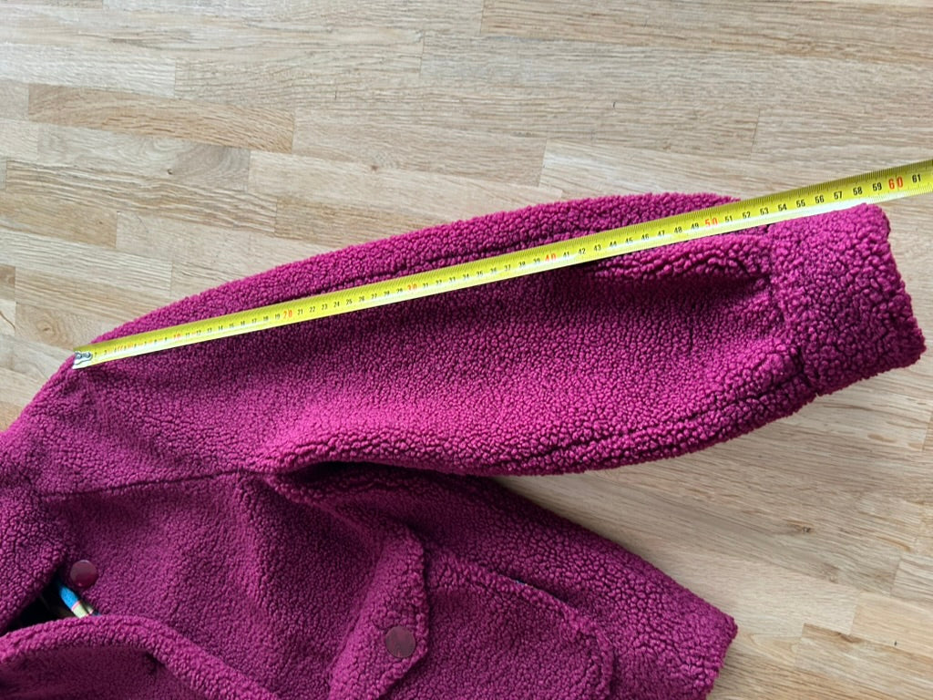 - Leuke Teddy fluffy jas in wijnrood/donkerrood met gave retro knopen en retro gladde intacte voering