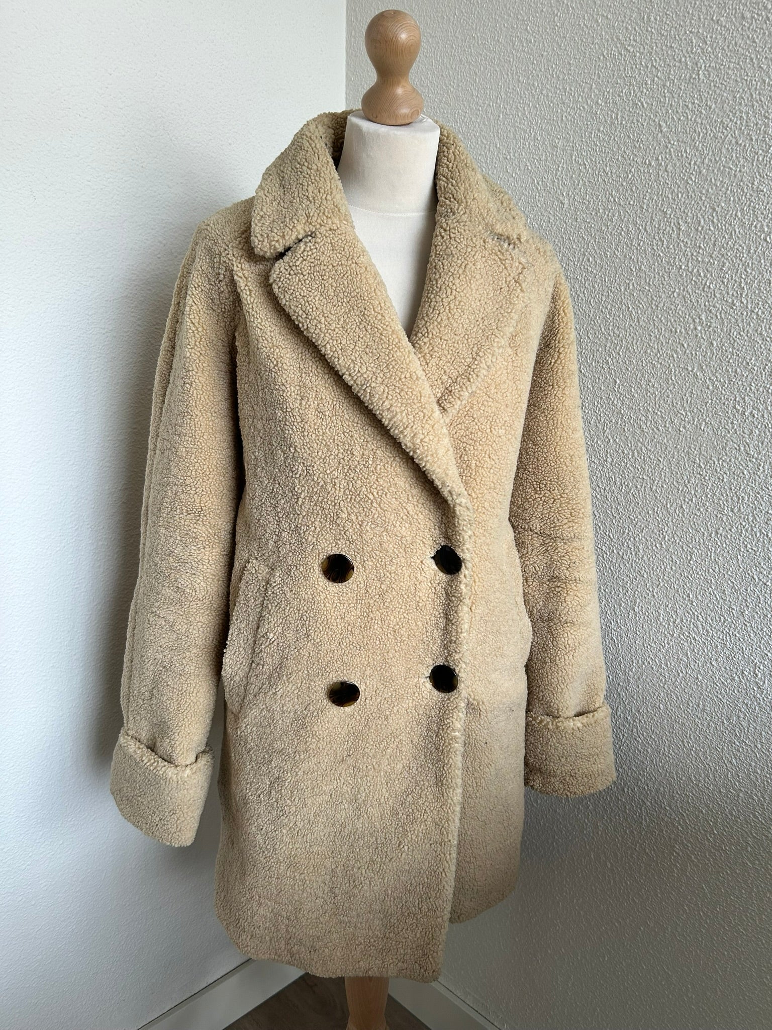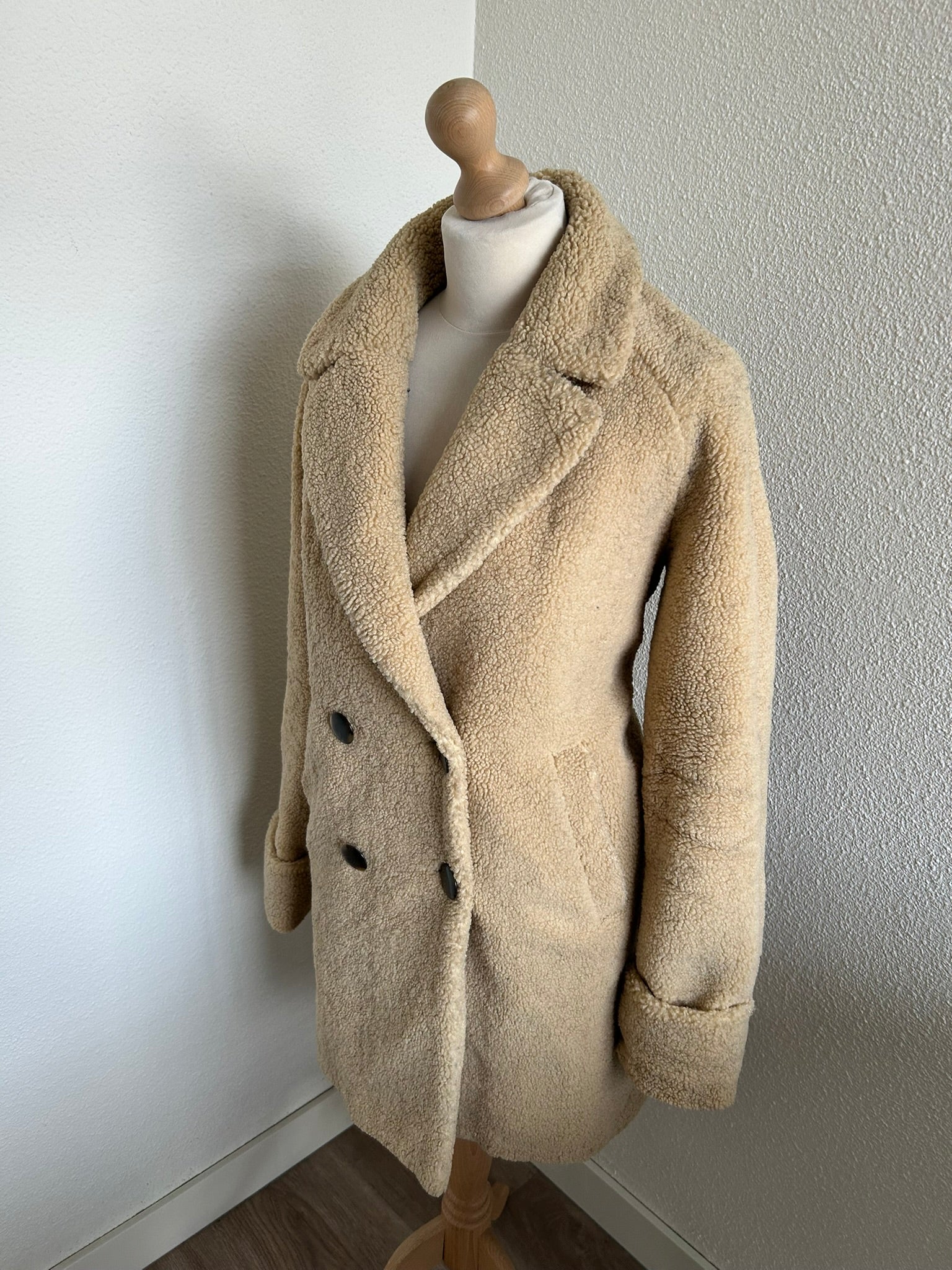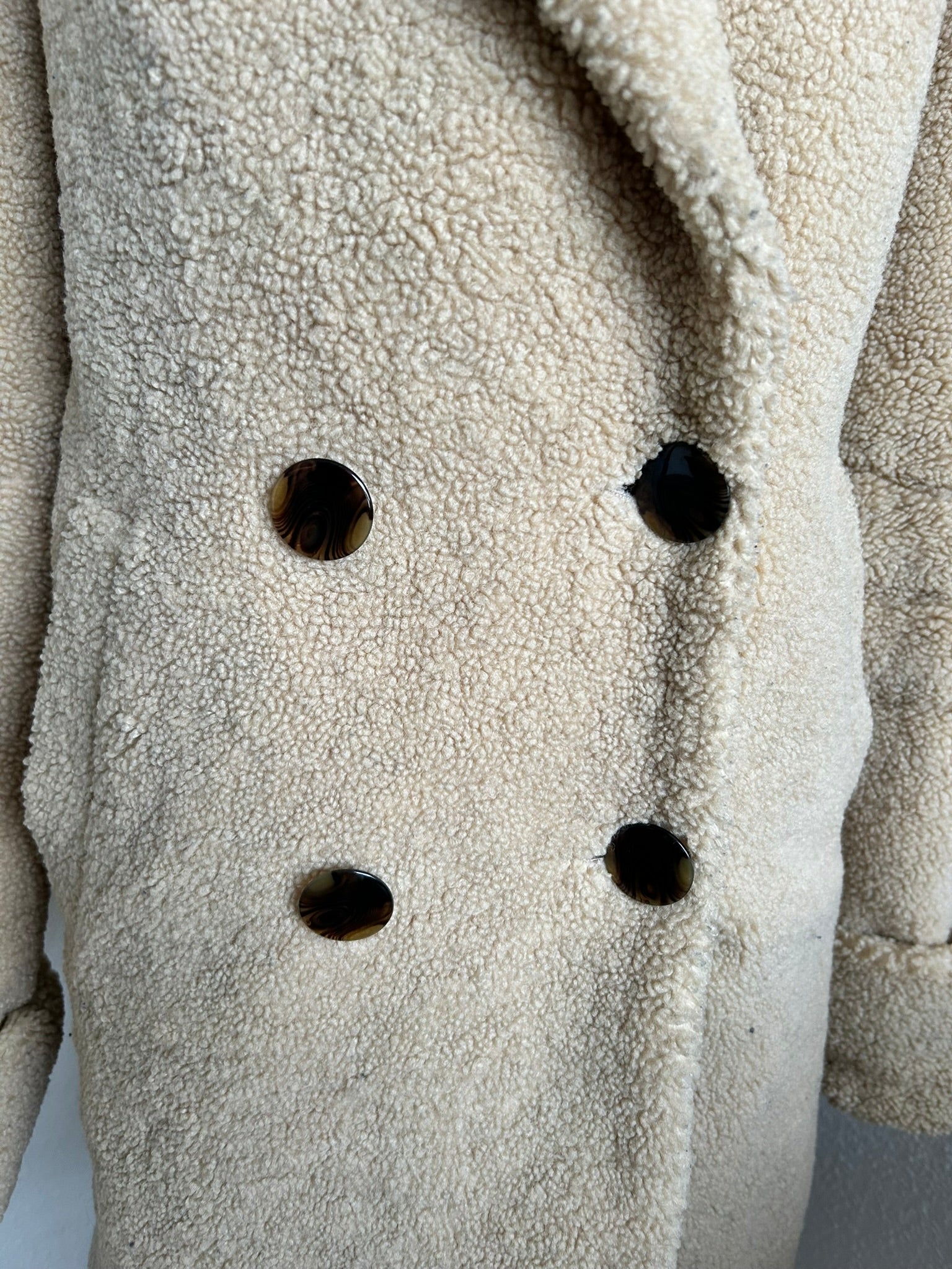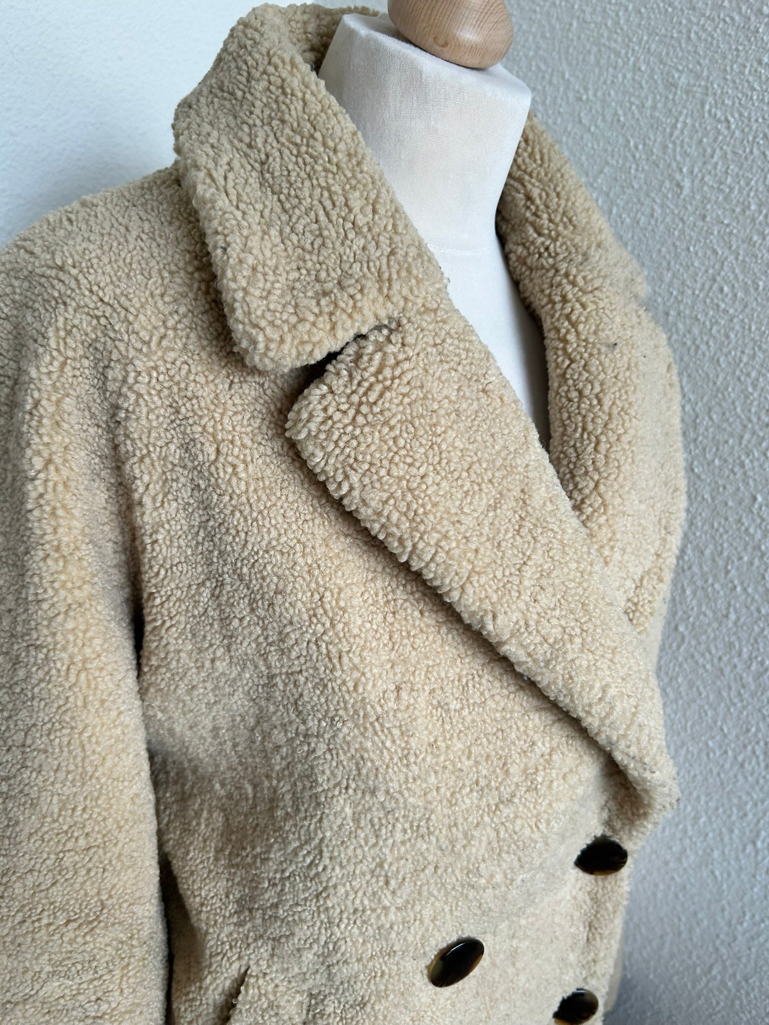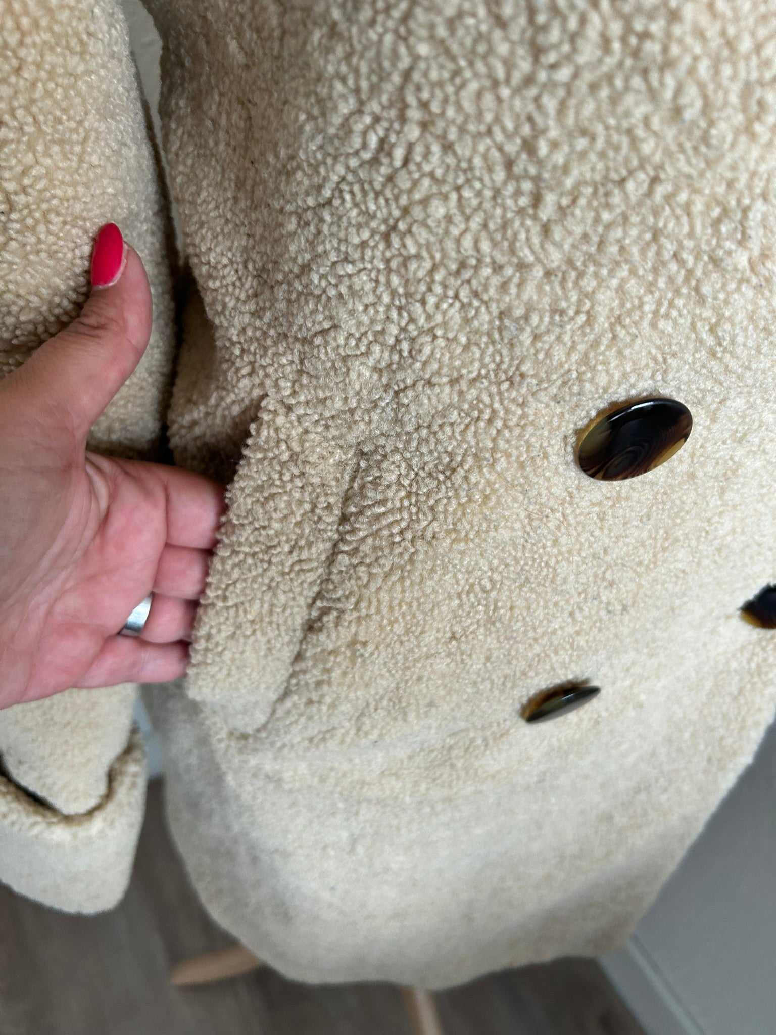 - Leuke Teddy fluffy jas in creme/beige met gave retro knopen