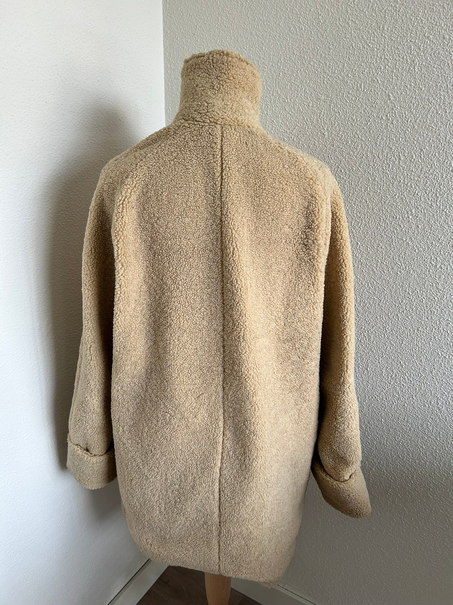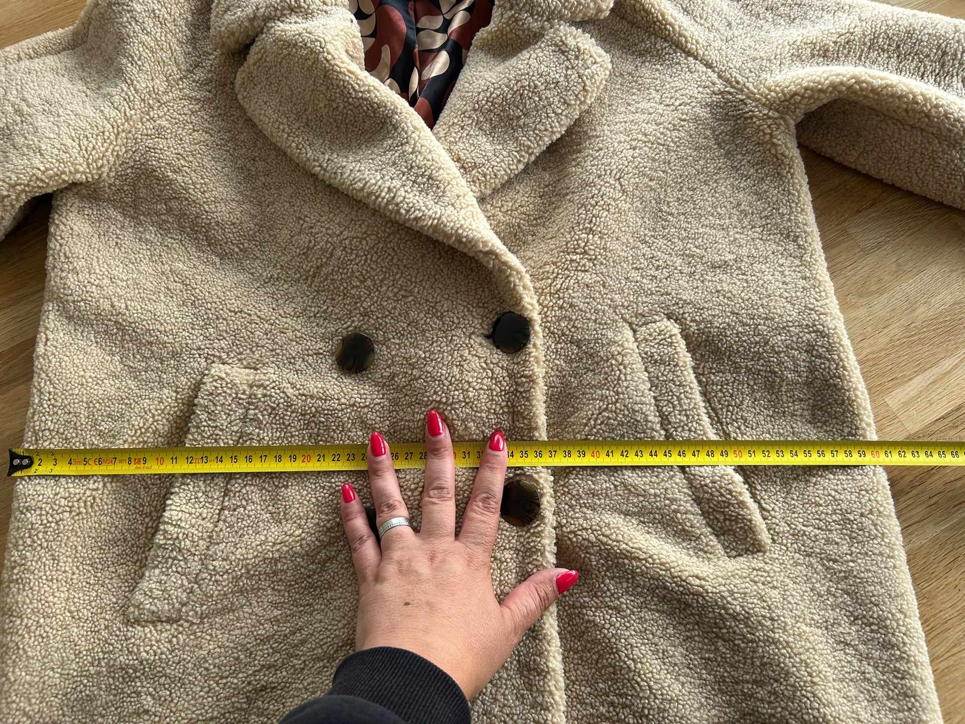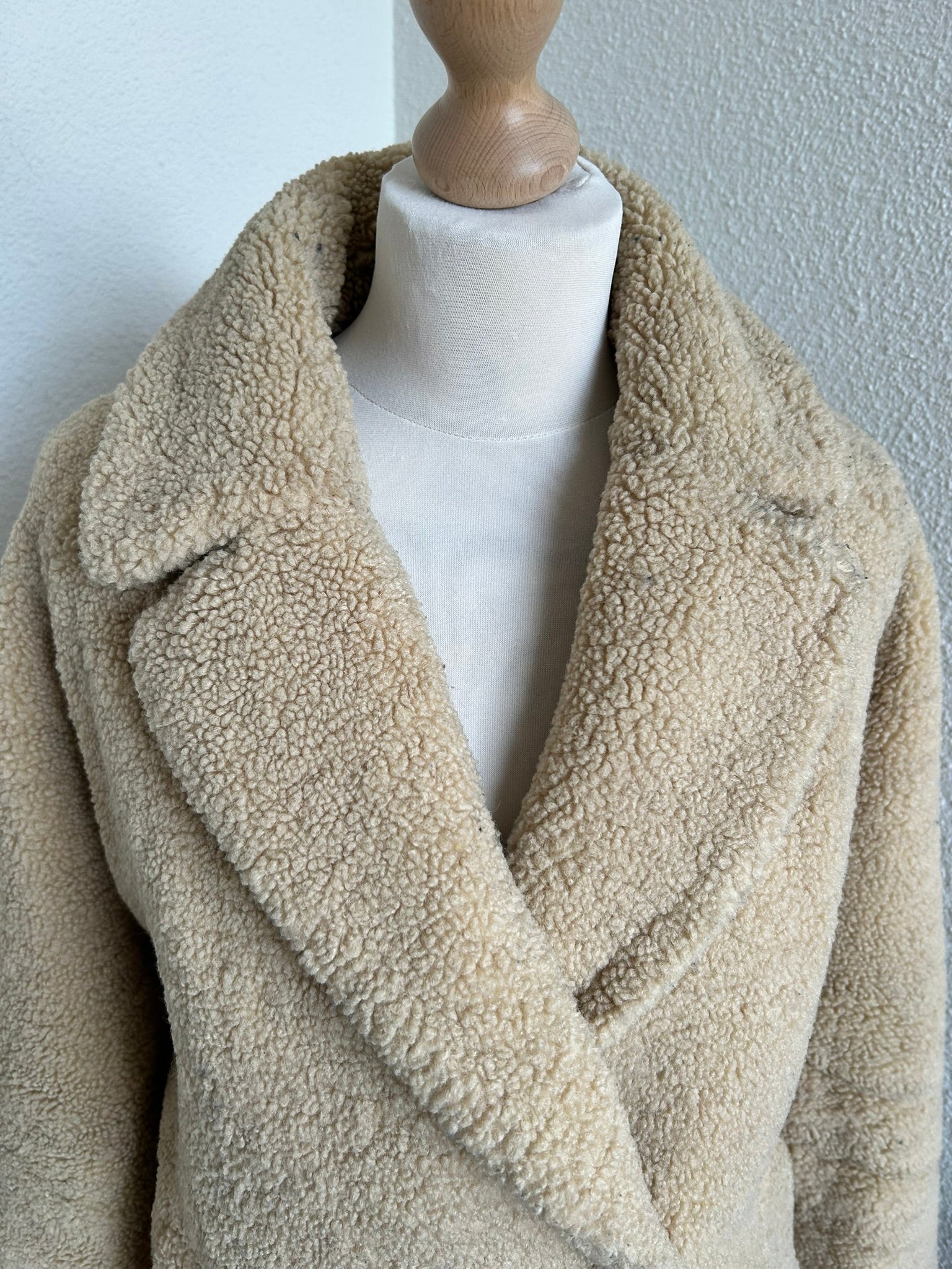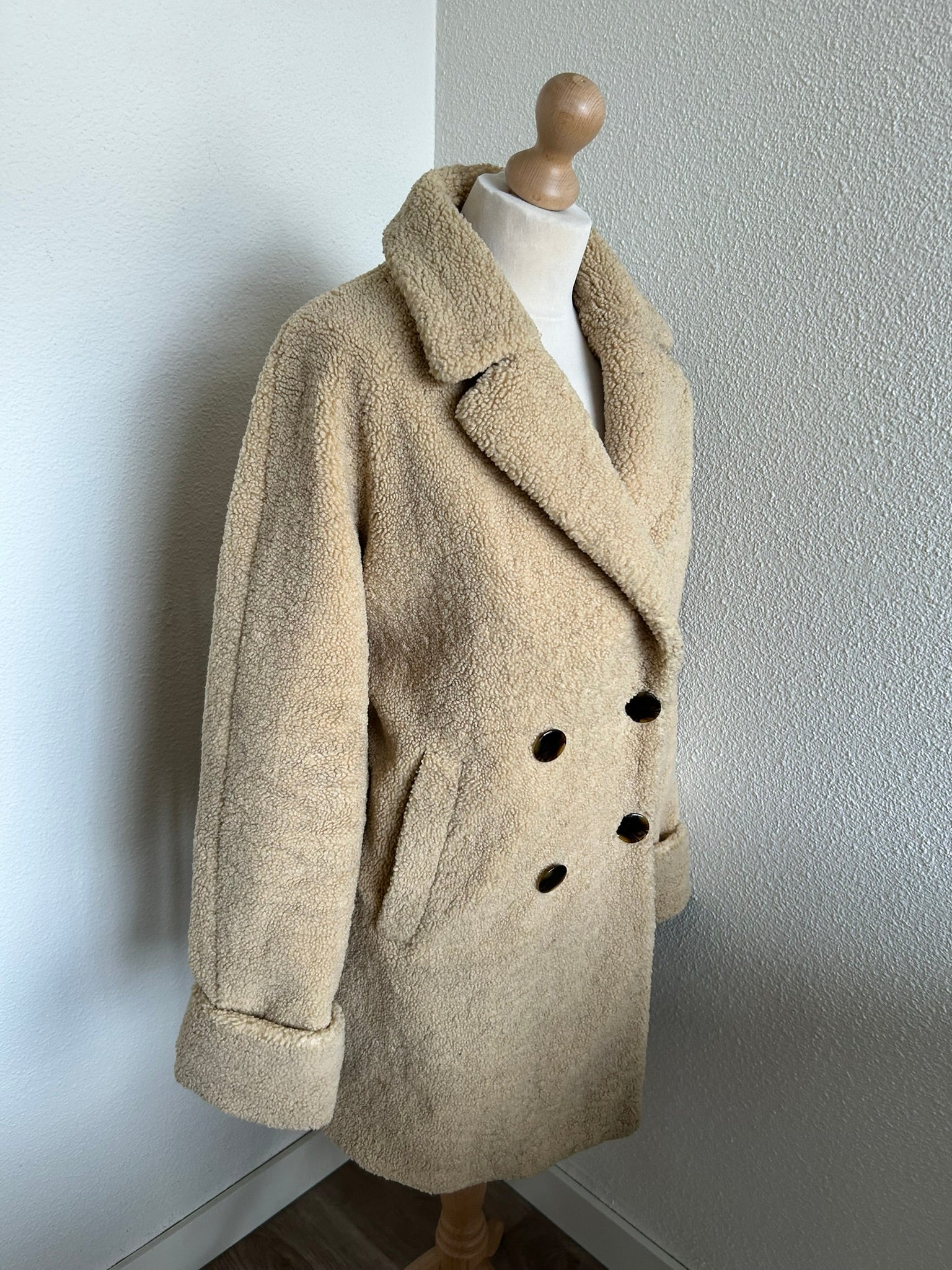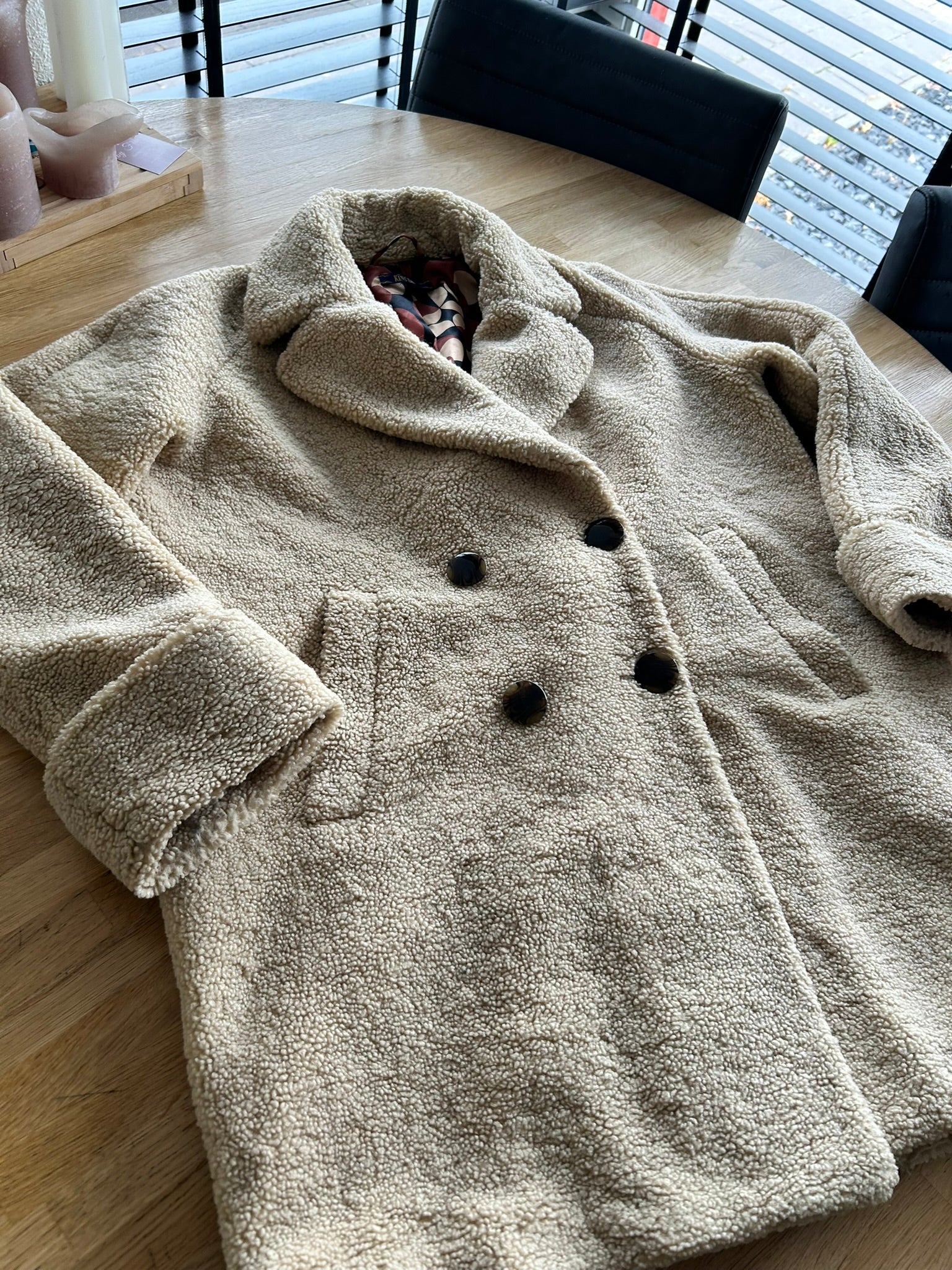- Leuke Teddy fluffy jas in creme/beige met gave retro knopen