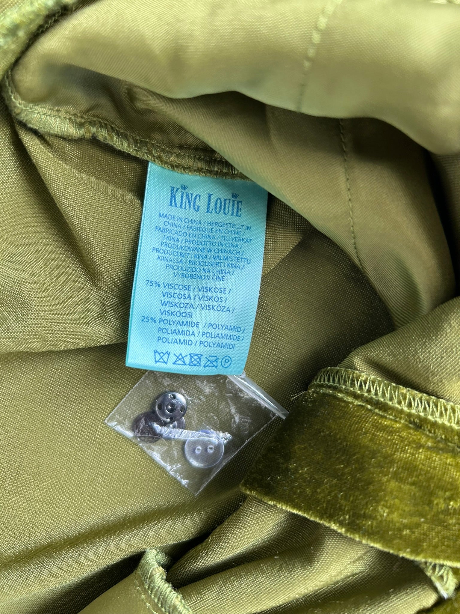 - Mooie halslijn met kraagje, overslag met drukknopje en knoopje op de borst, lange mouwen, getailleerd, steekzakken op de heupen