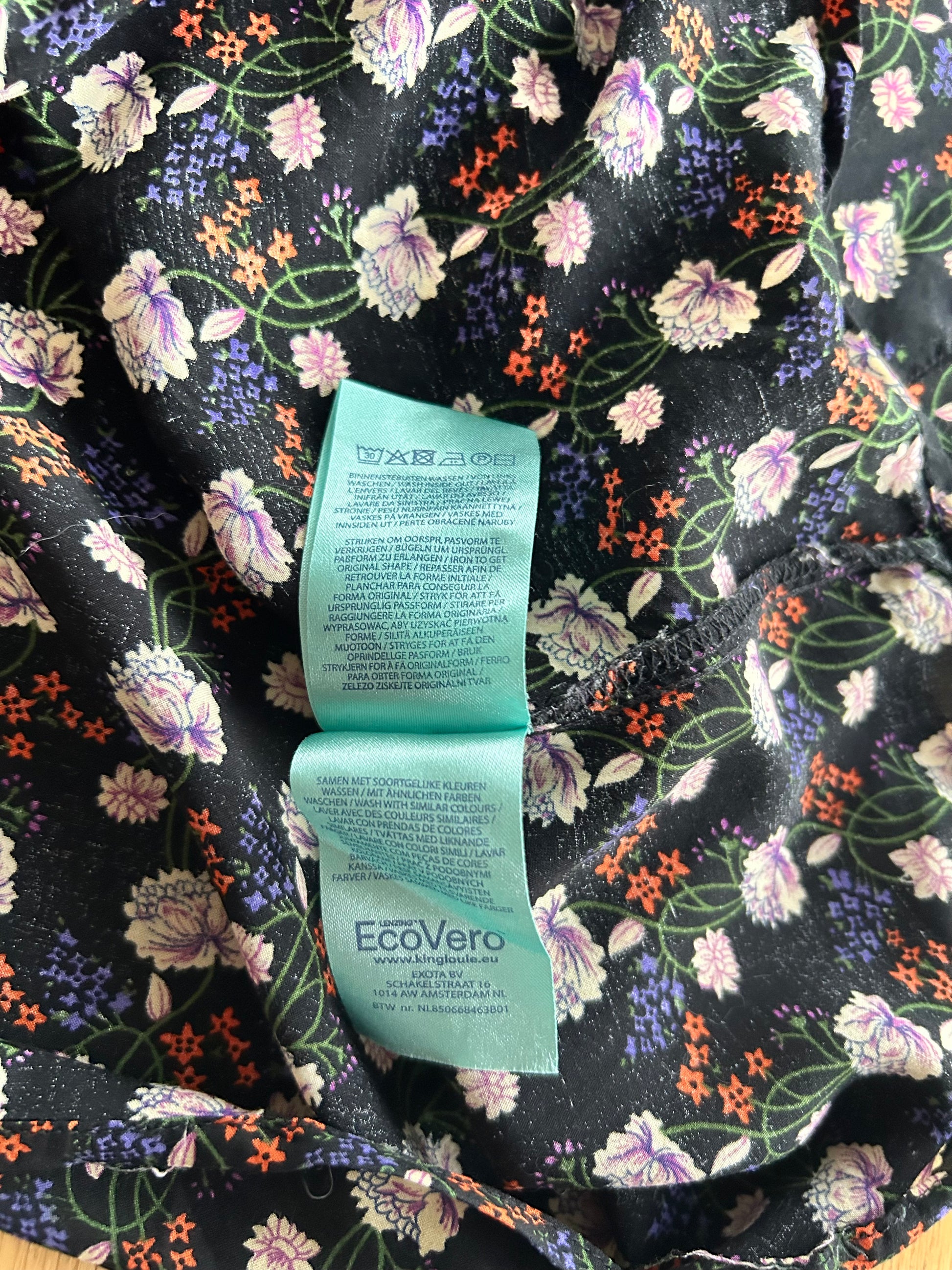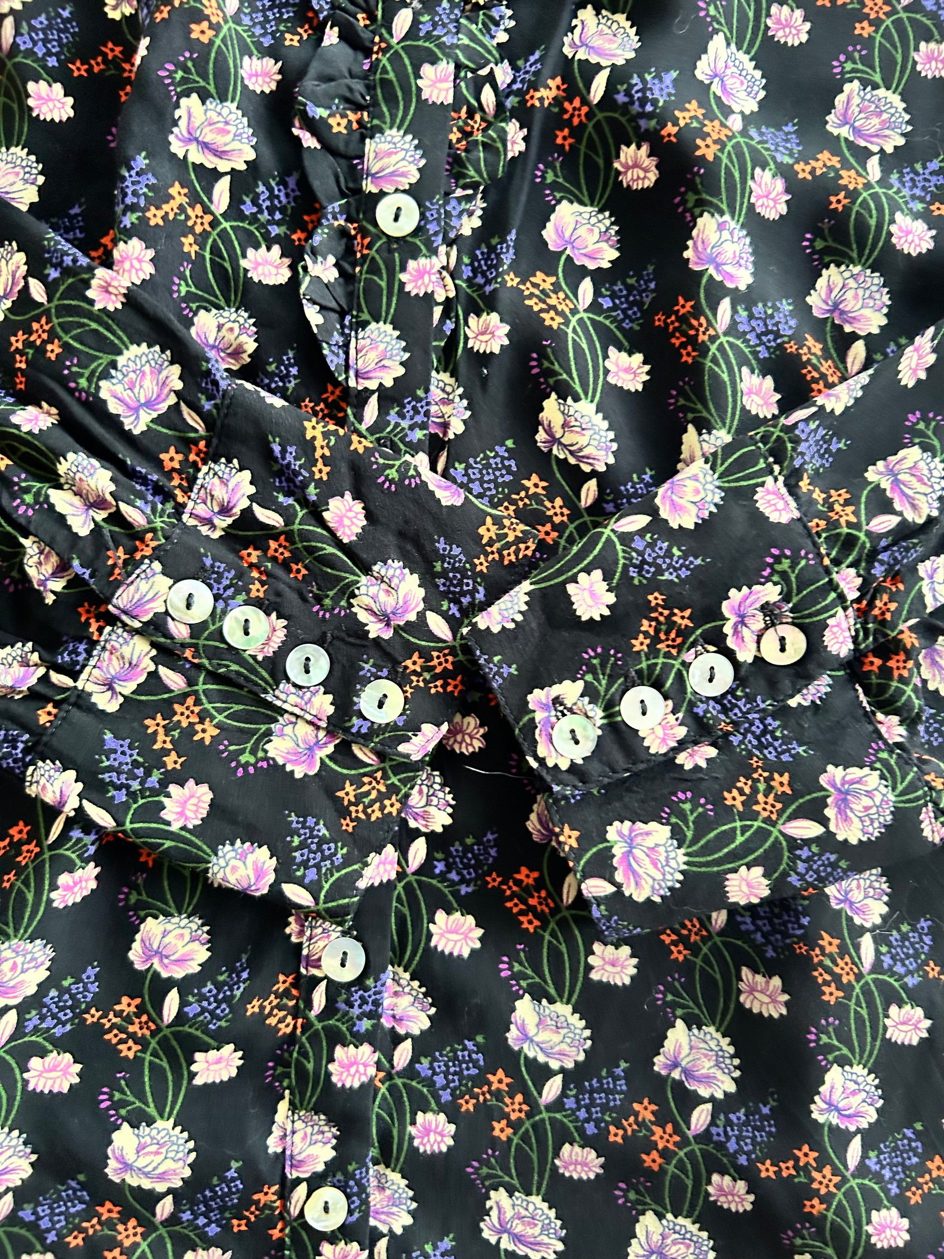 - Prachtige retro print in zwart beige roze paars en oranje bloemen