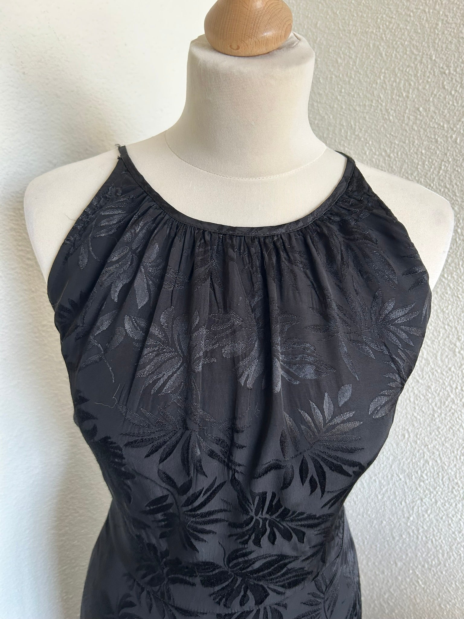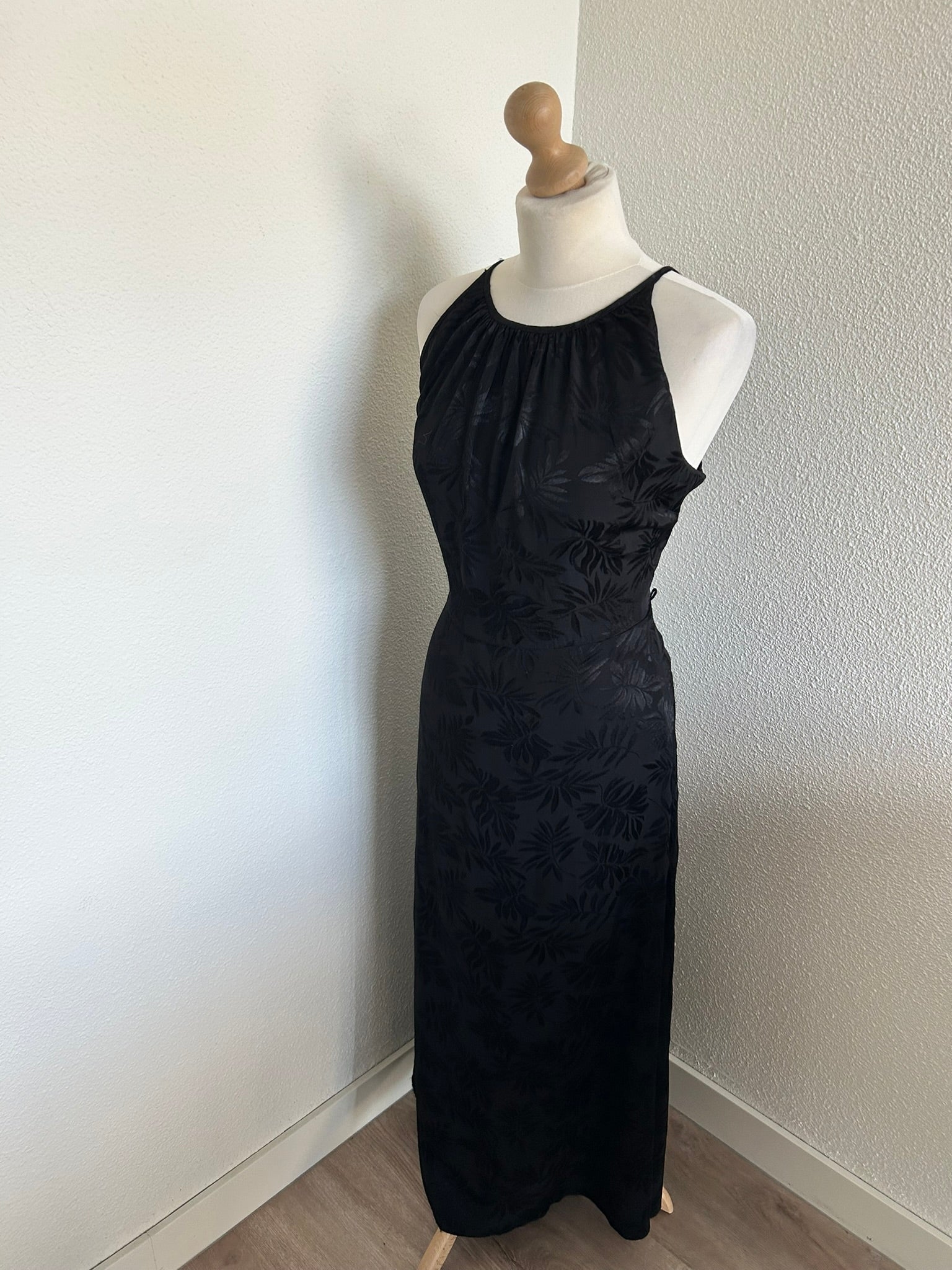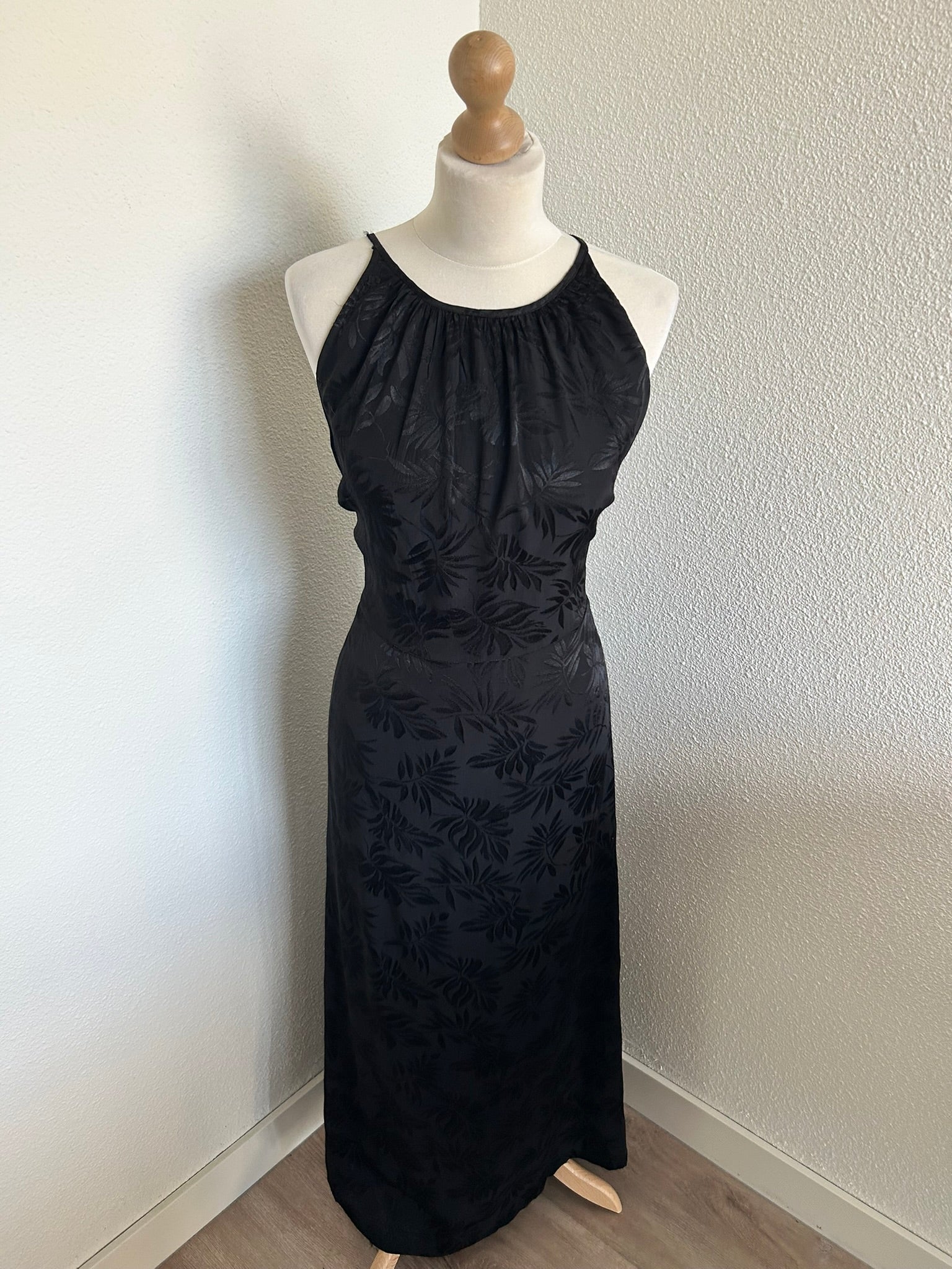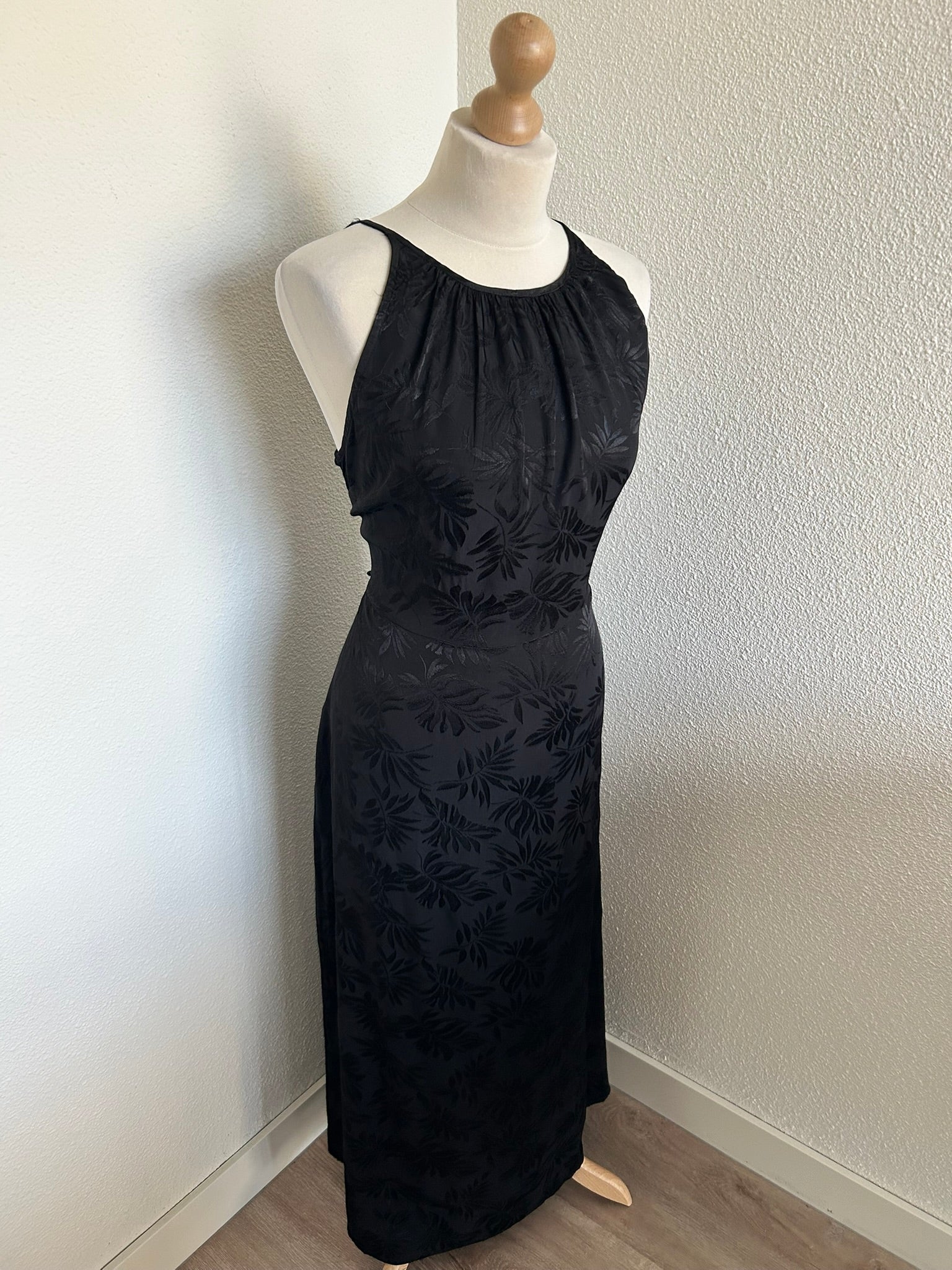 - Leuke retro jurk in zwart met tropische glanzende bladeren print