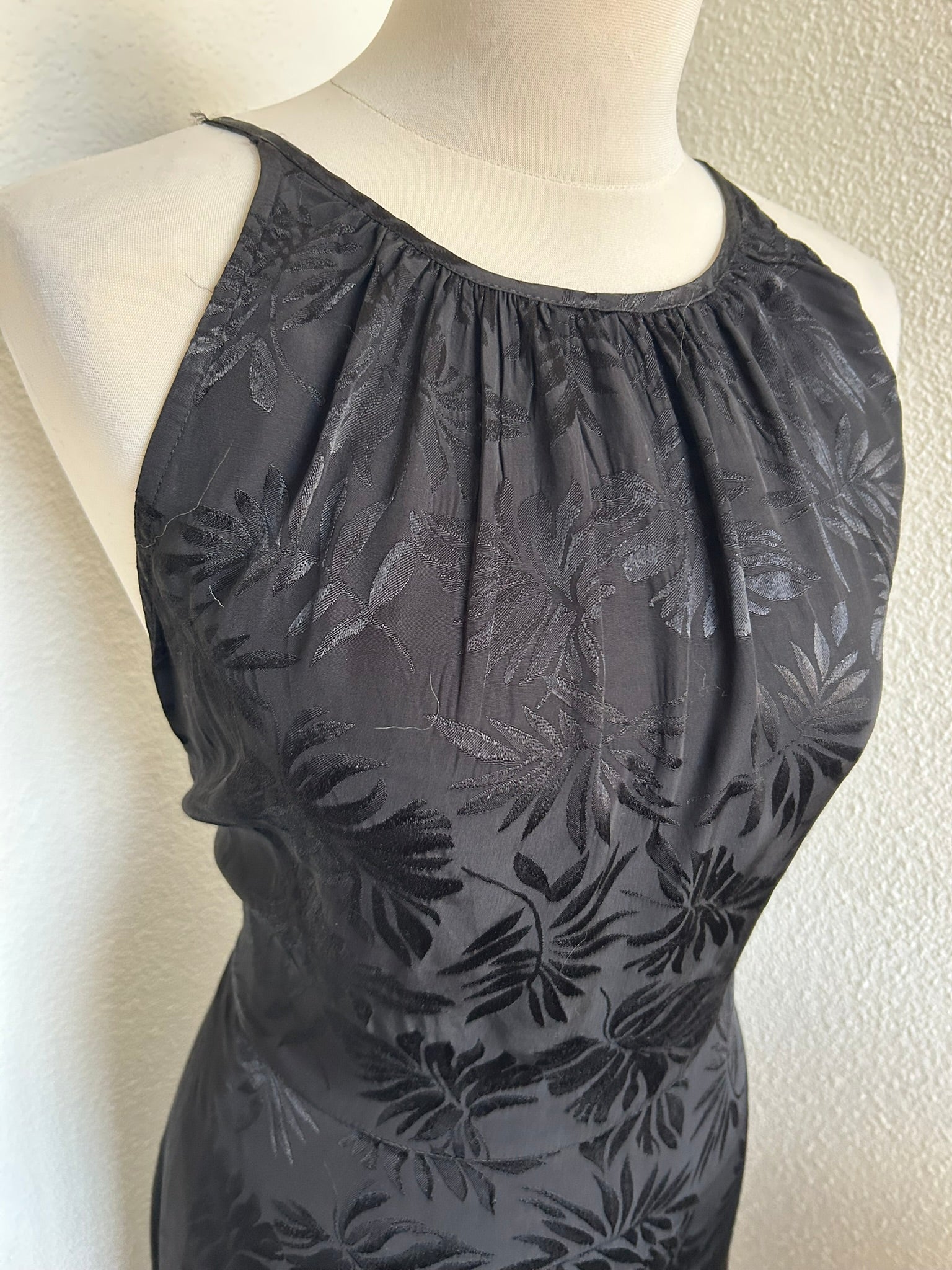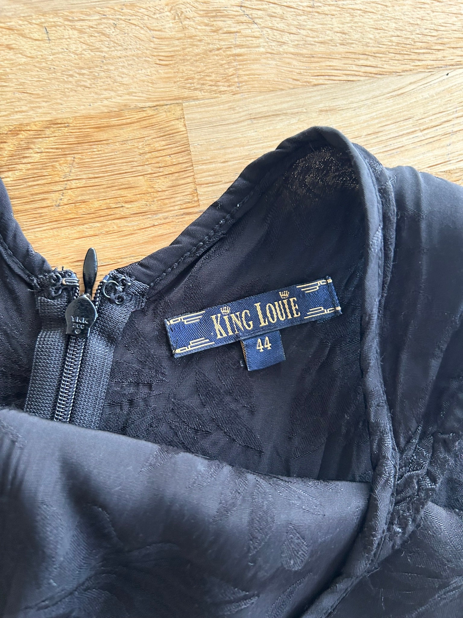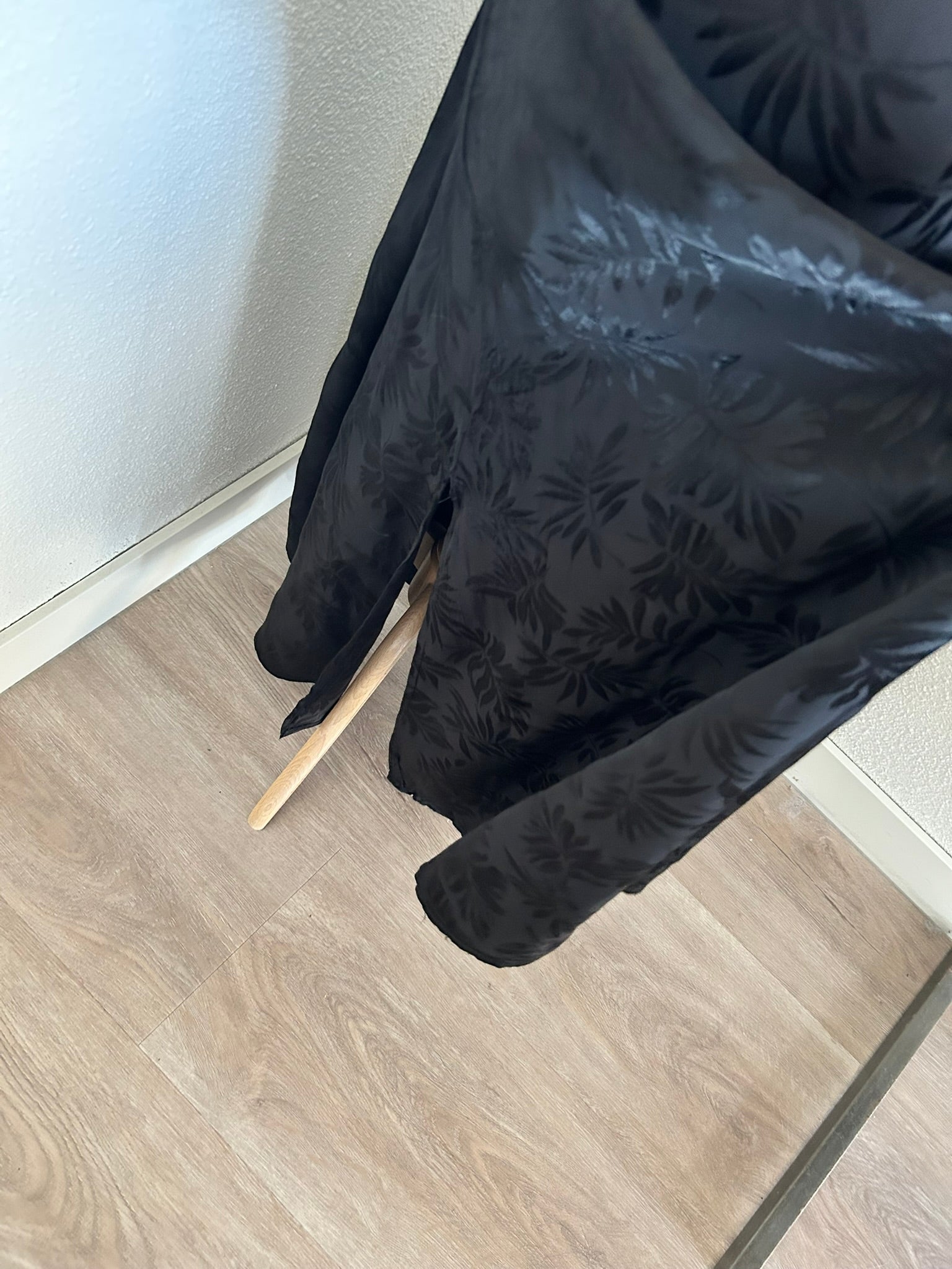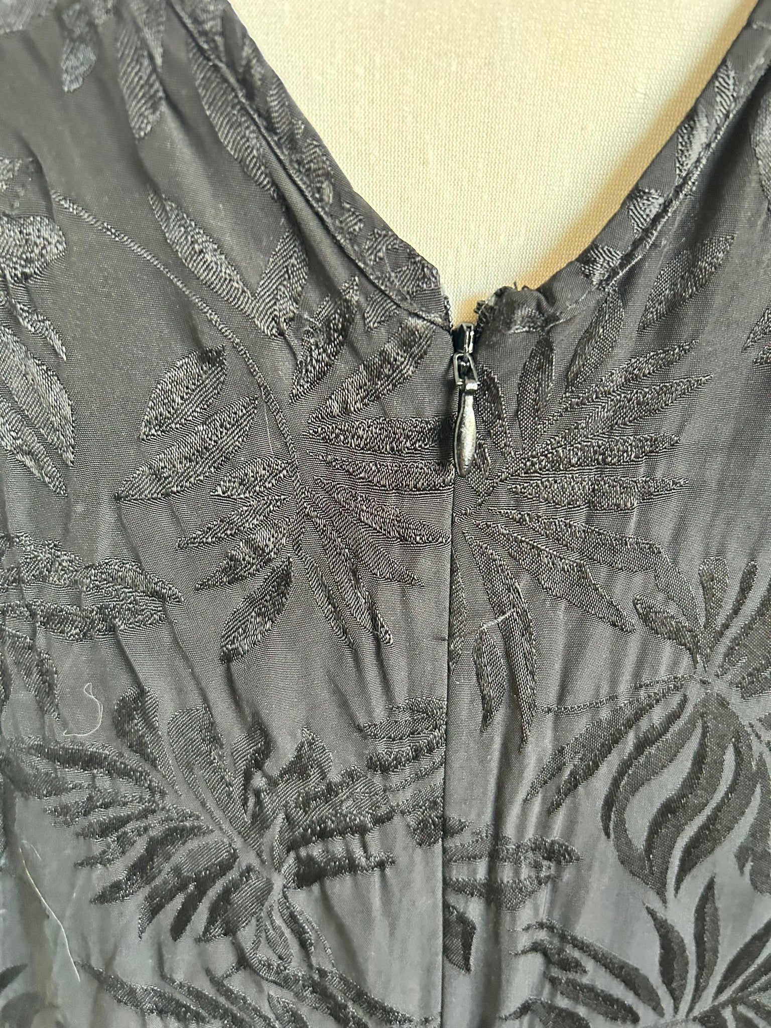- Leuke retro jurk in zwart met tropische glanzende bladeren print