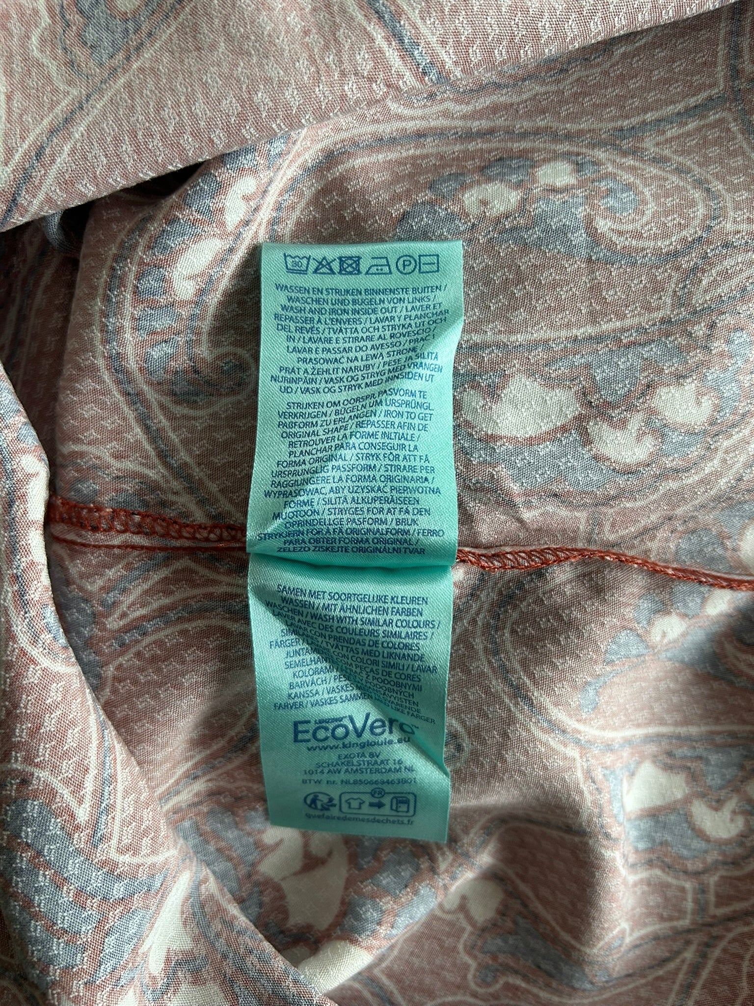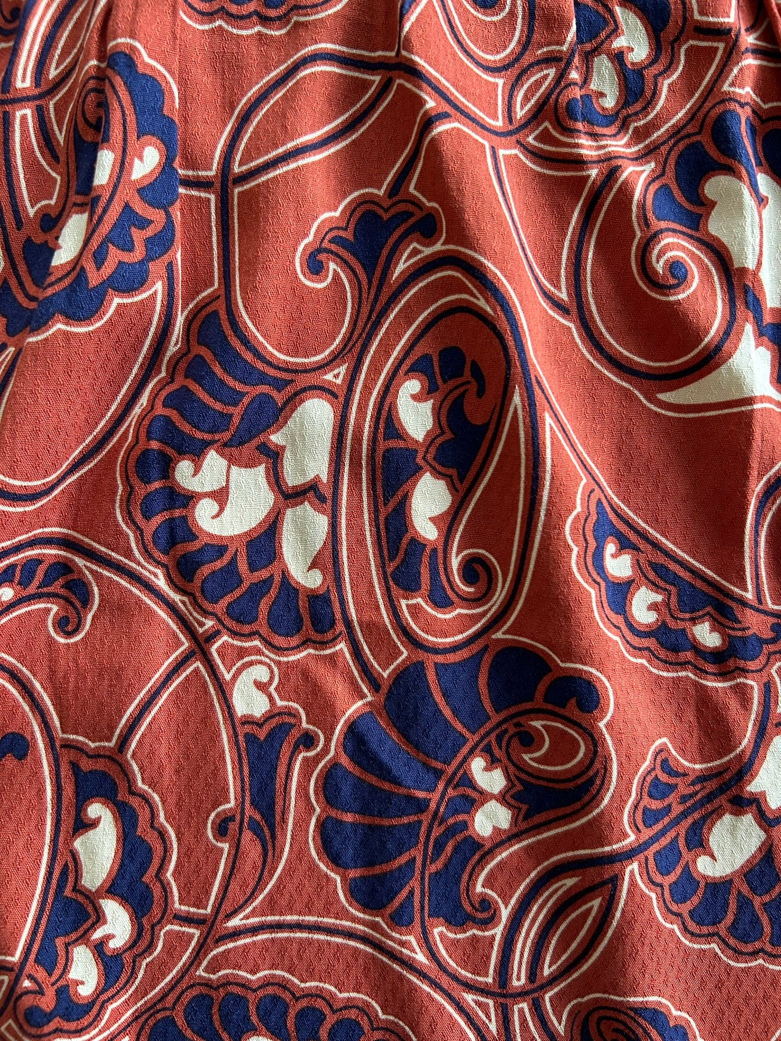 - Karamel bruine/ oranje-bruine print met creme-wit en donker blauw