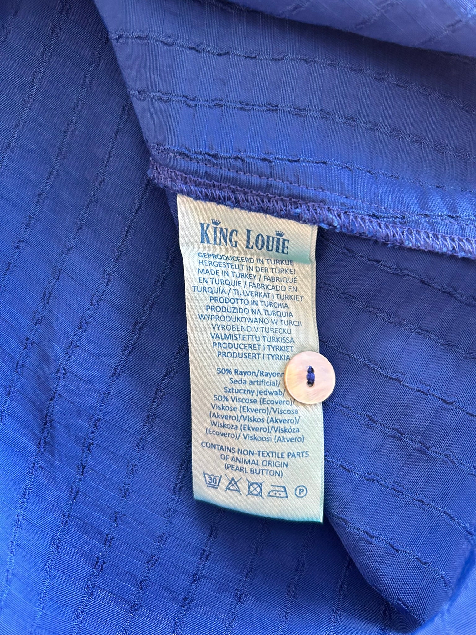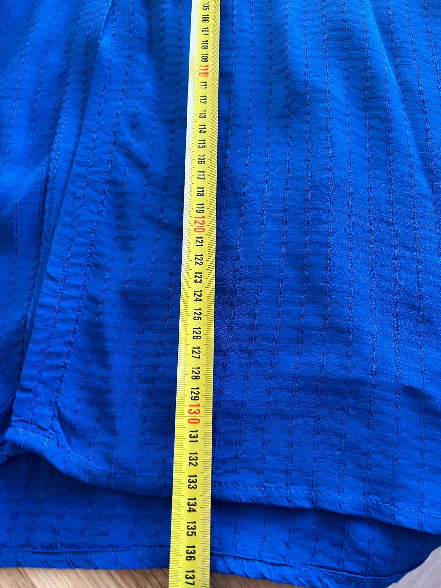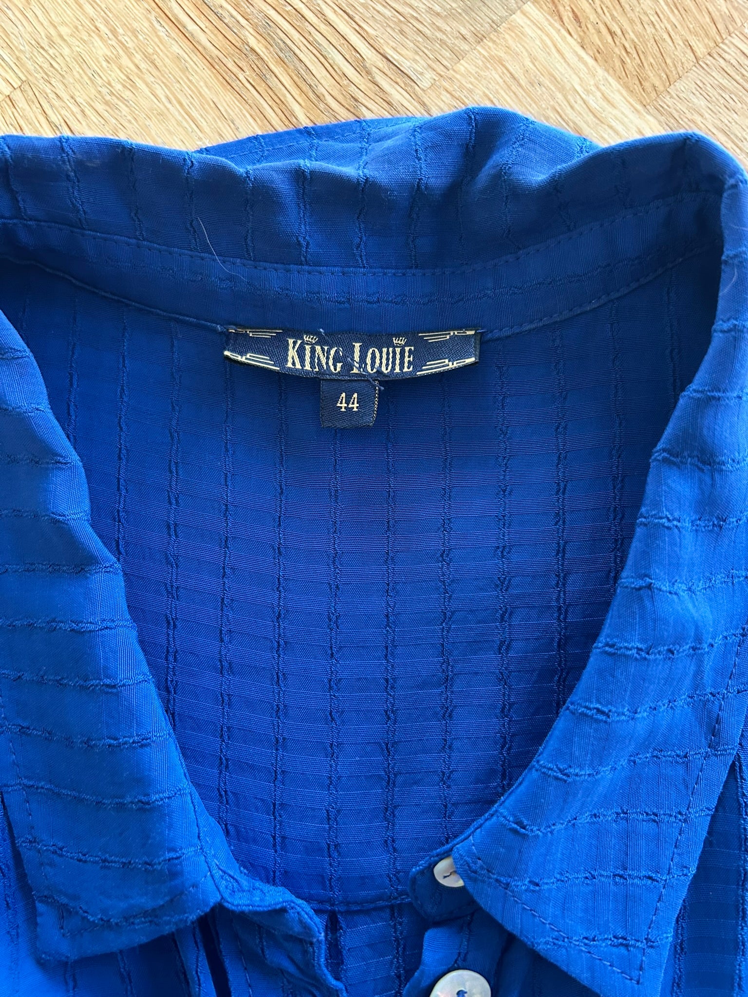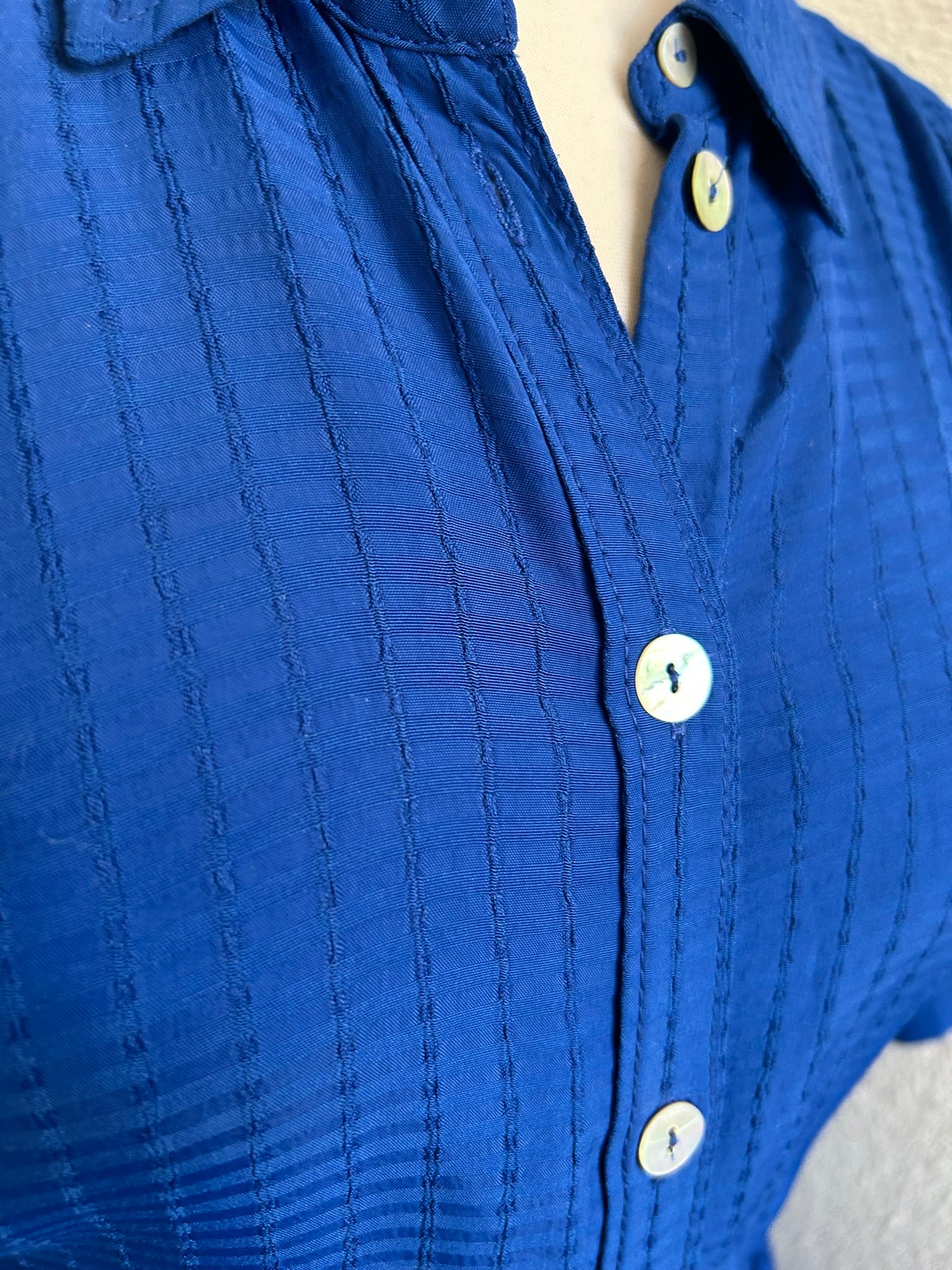 - Mooie halslijn met kraagje en retro knoopjes tot onder, korte mouwen, getailleerd door knooplint, steekzakken, midi / kuit lengte