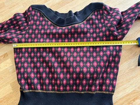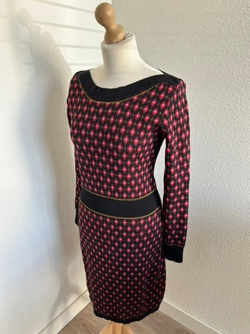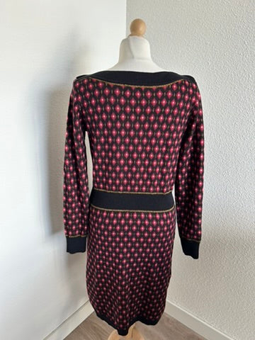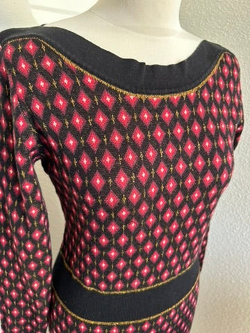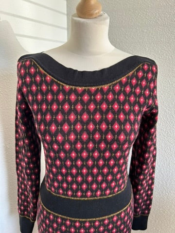 - Leuke jurk rood zwart en goud geruit retro patroon en subtieke glitter