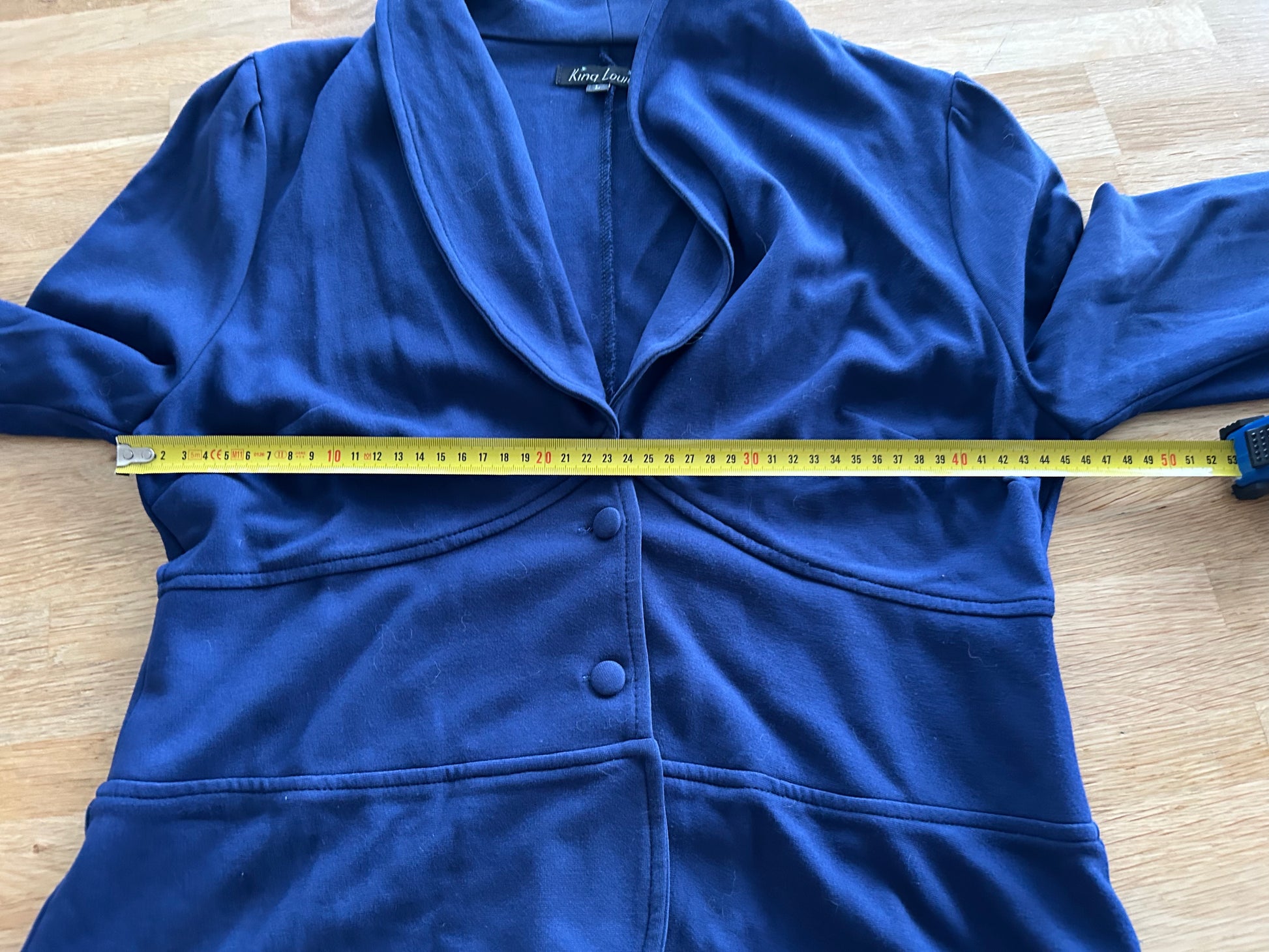 - Mooie halslijn met kraagje, stoffen retro knopen, lange mouwen