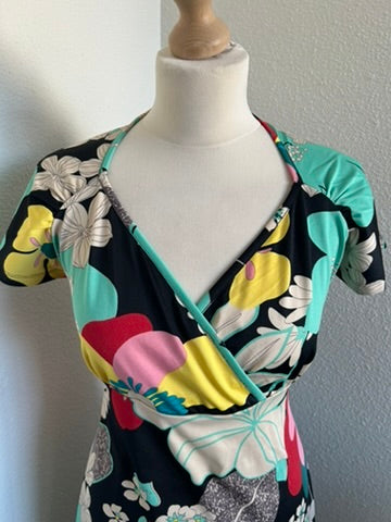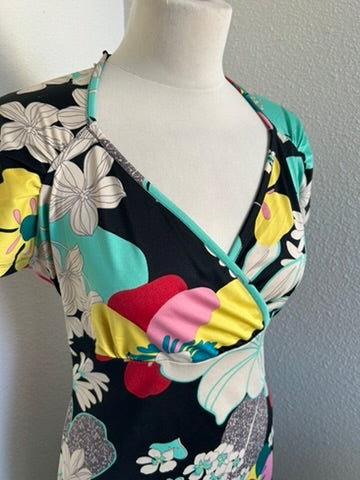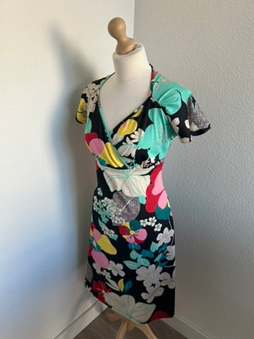 - Zwart met gekleurde bloemen in geel wit roze turquoise blauw
