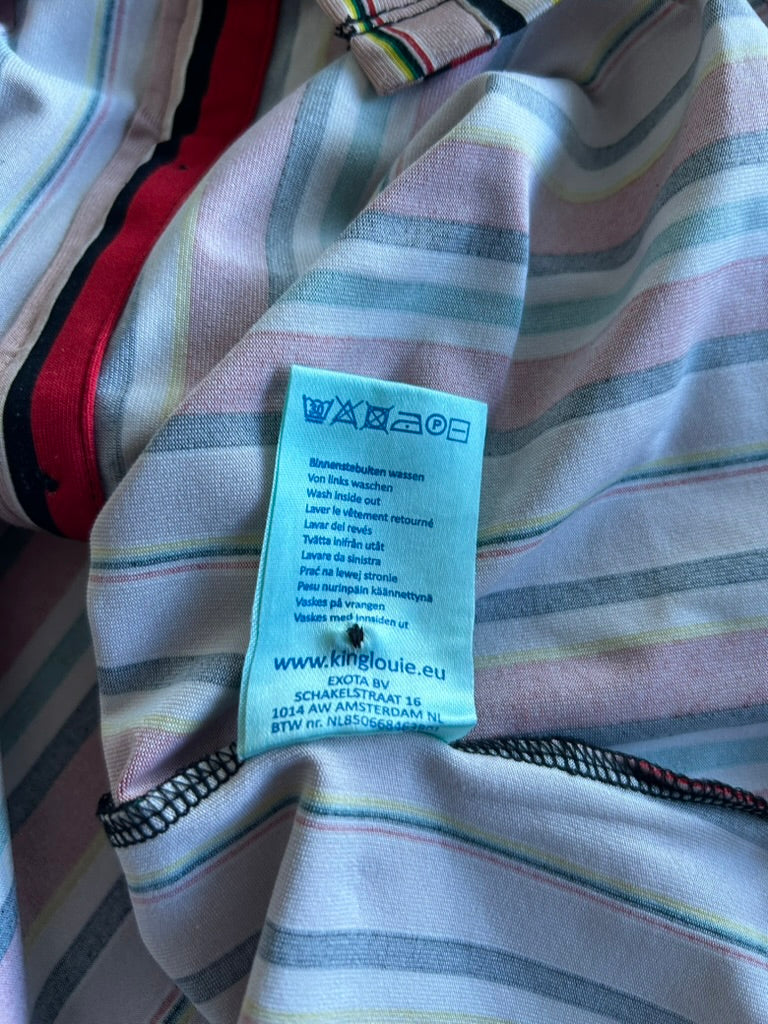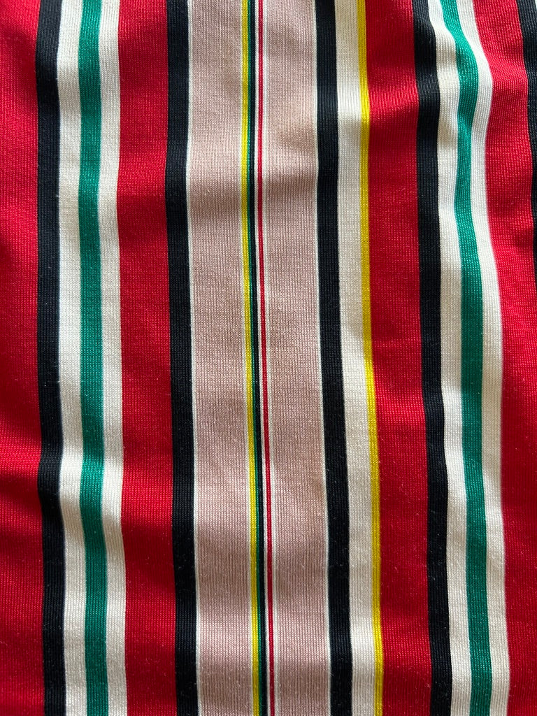 - Gestreepte retro print in rood roze geel groen wit en zwart
