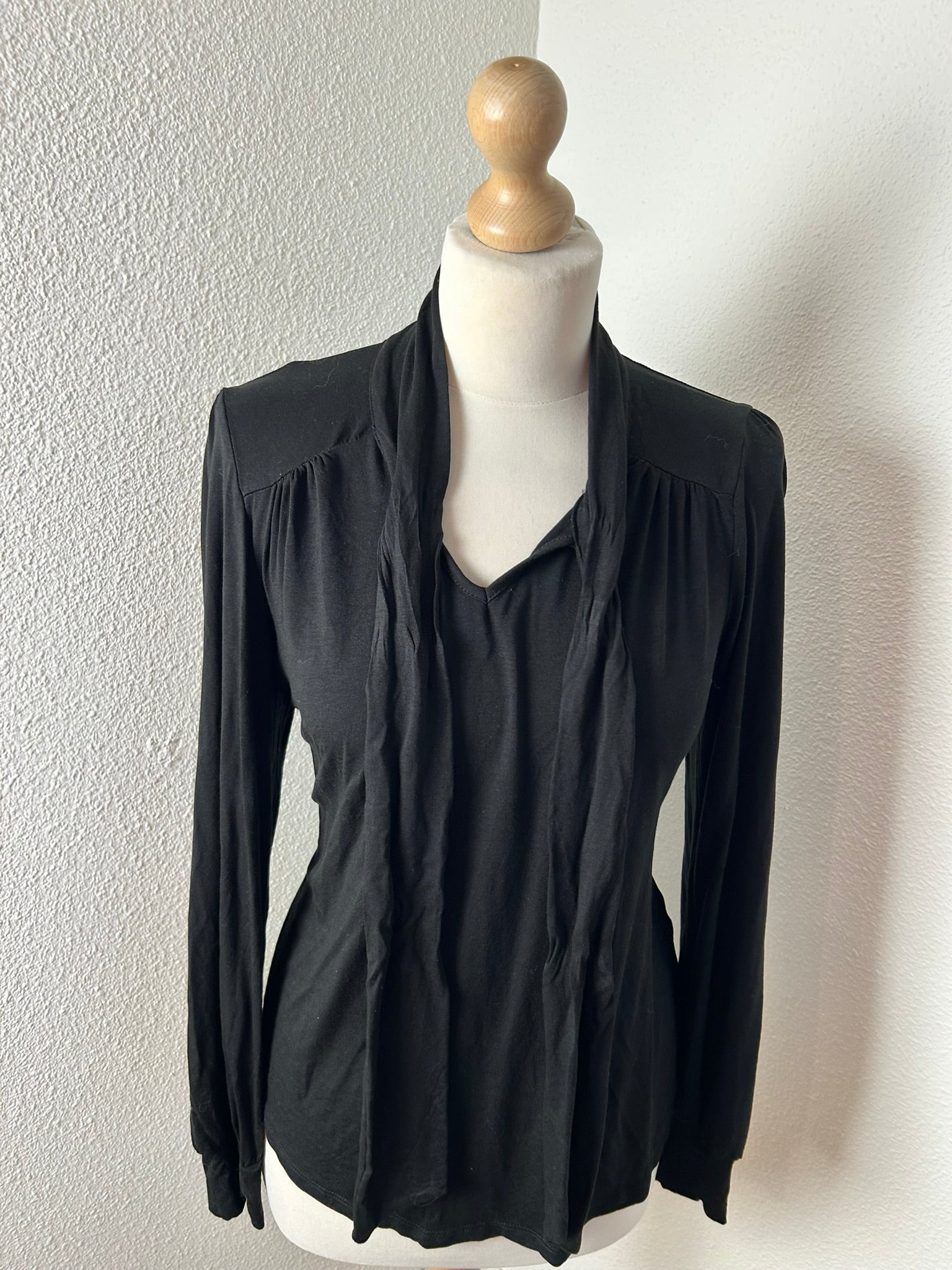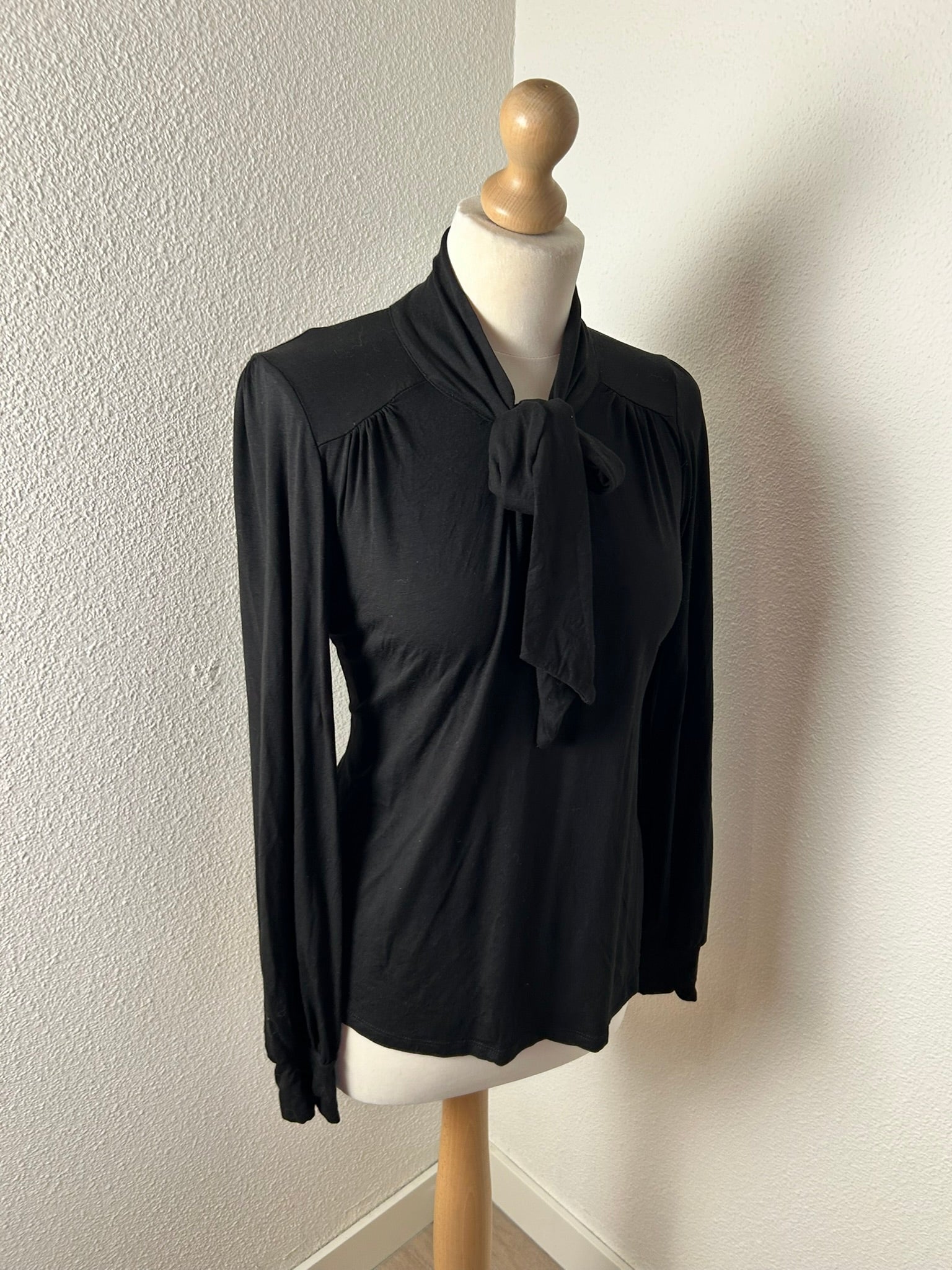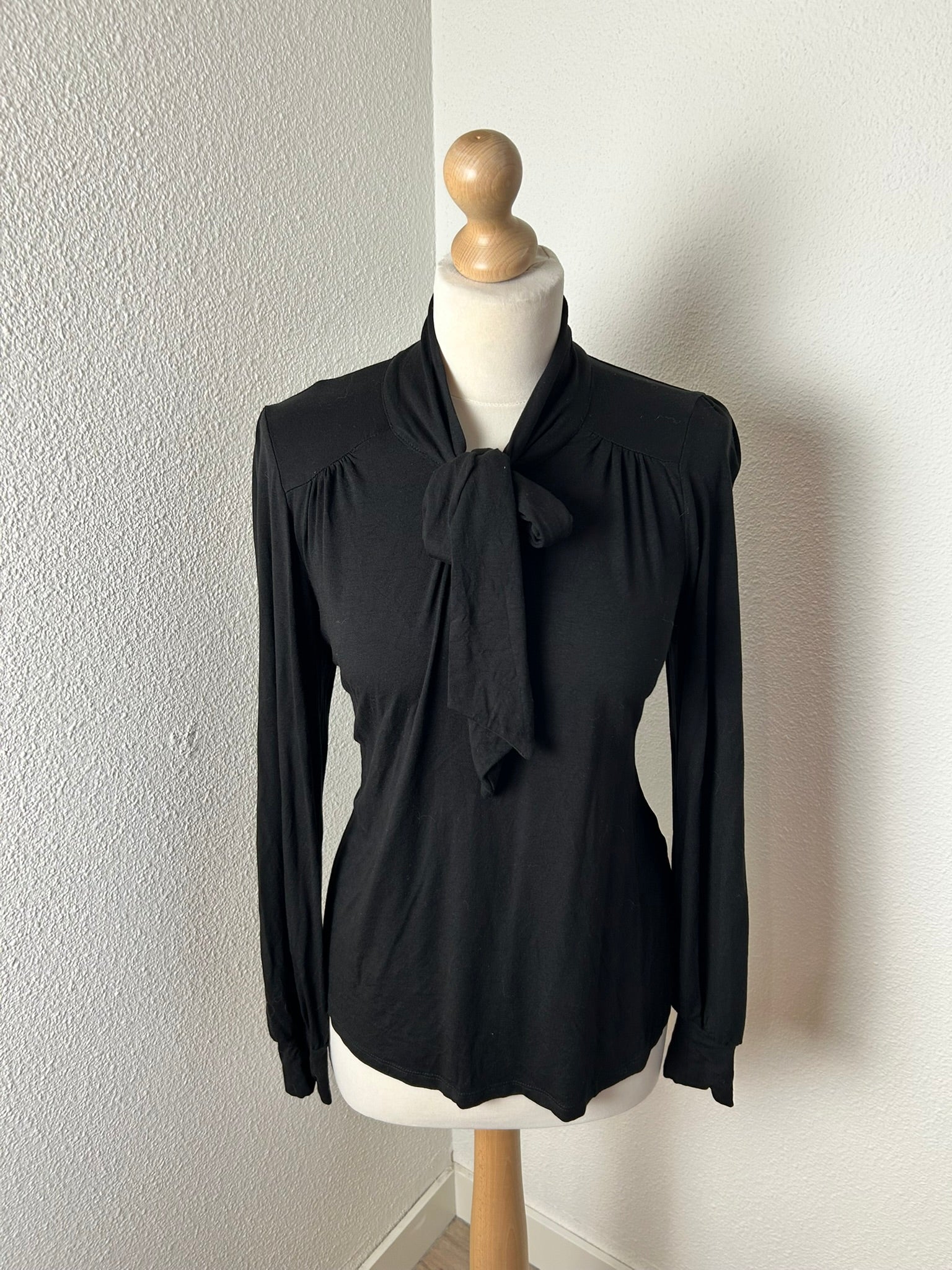 - Mooie halslijn met striklinten aan de hals, lange beetje poffende mouwen