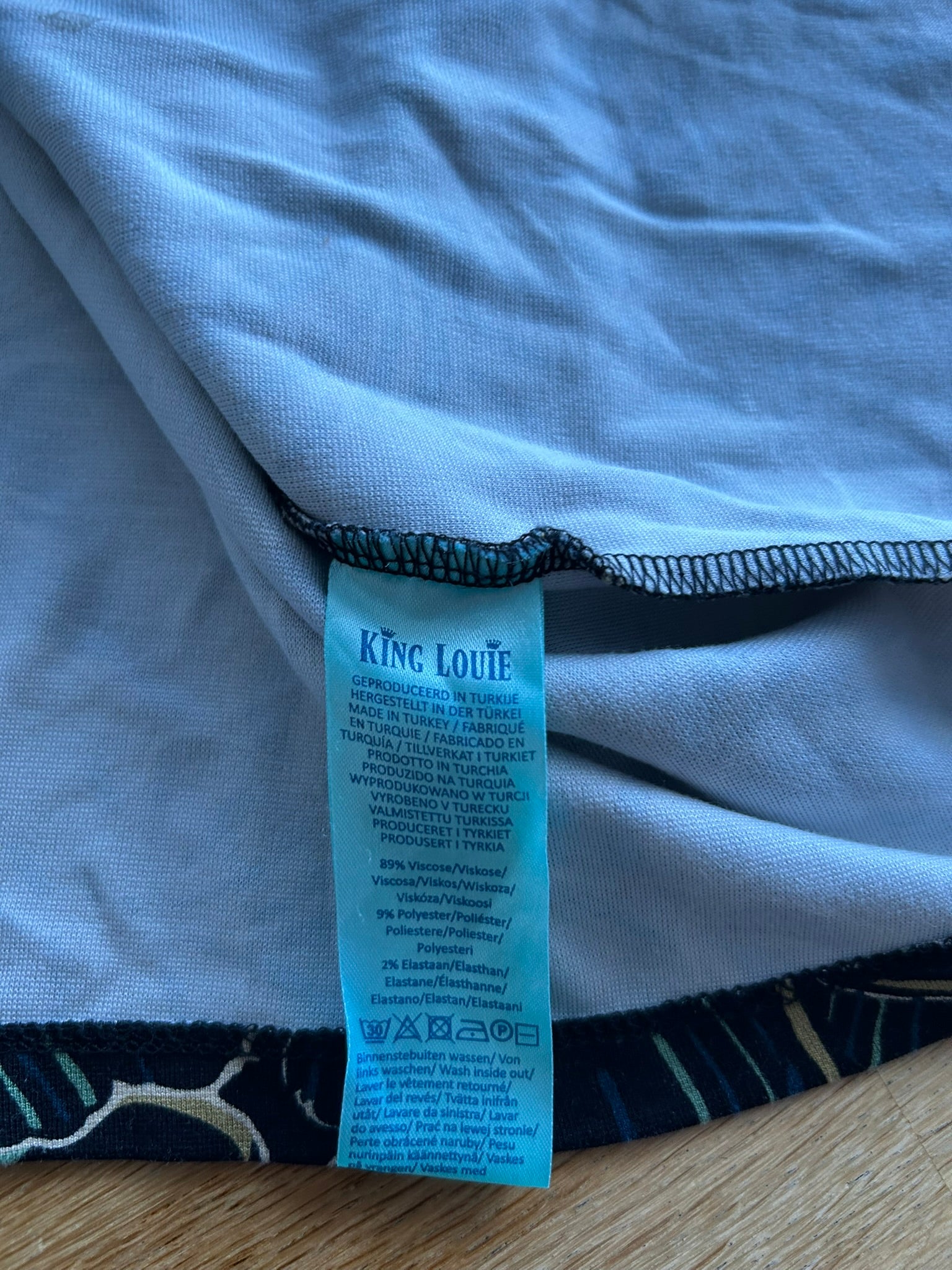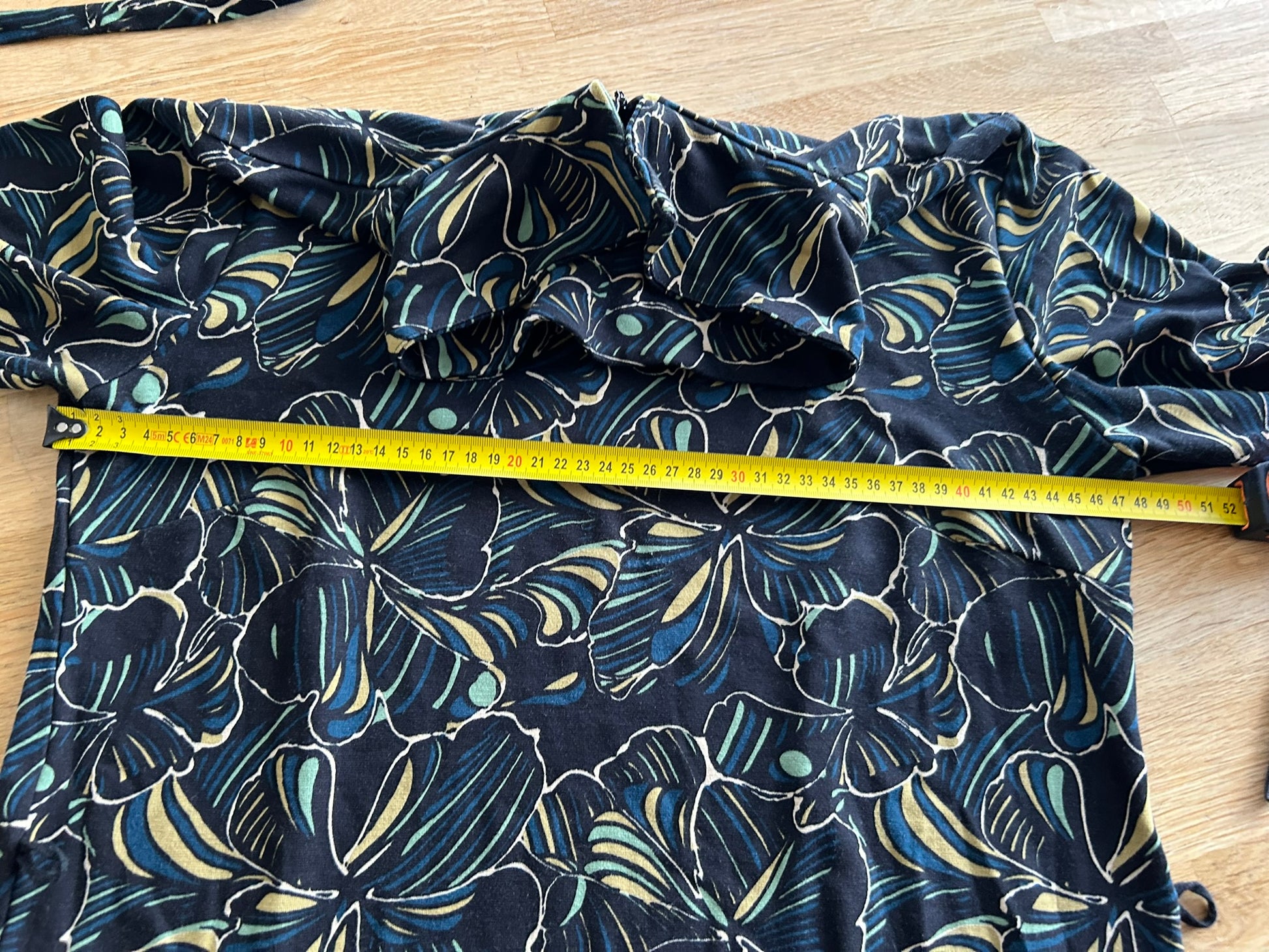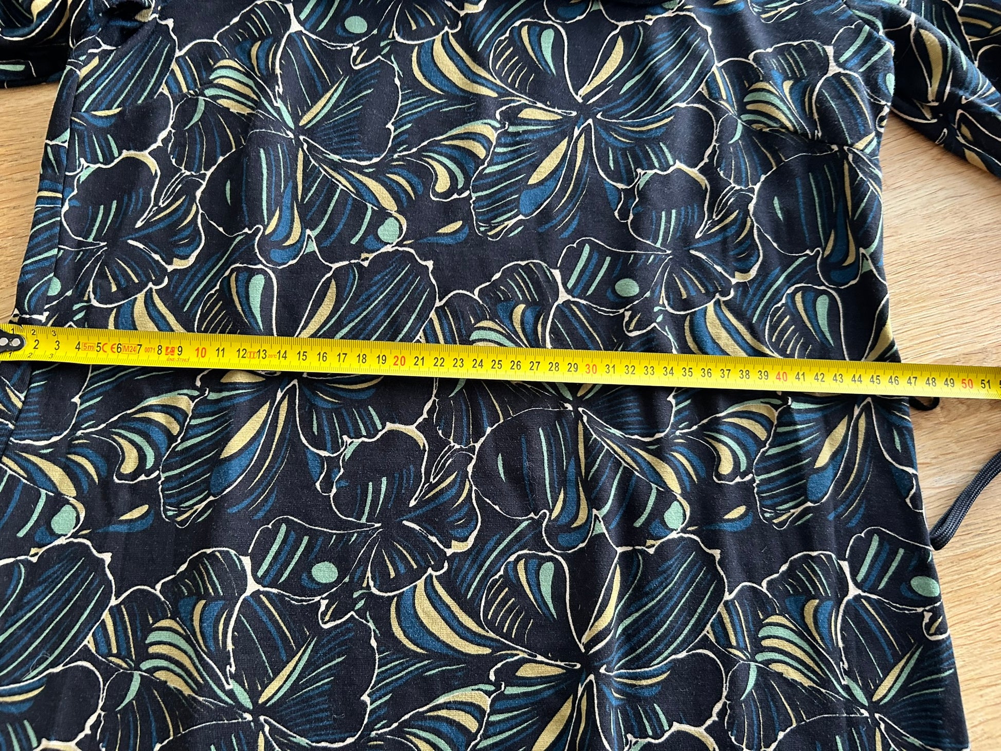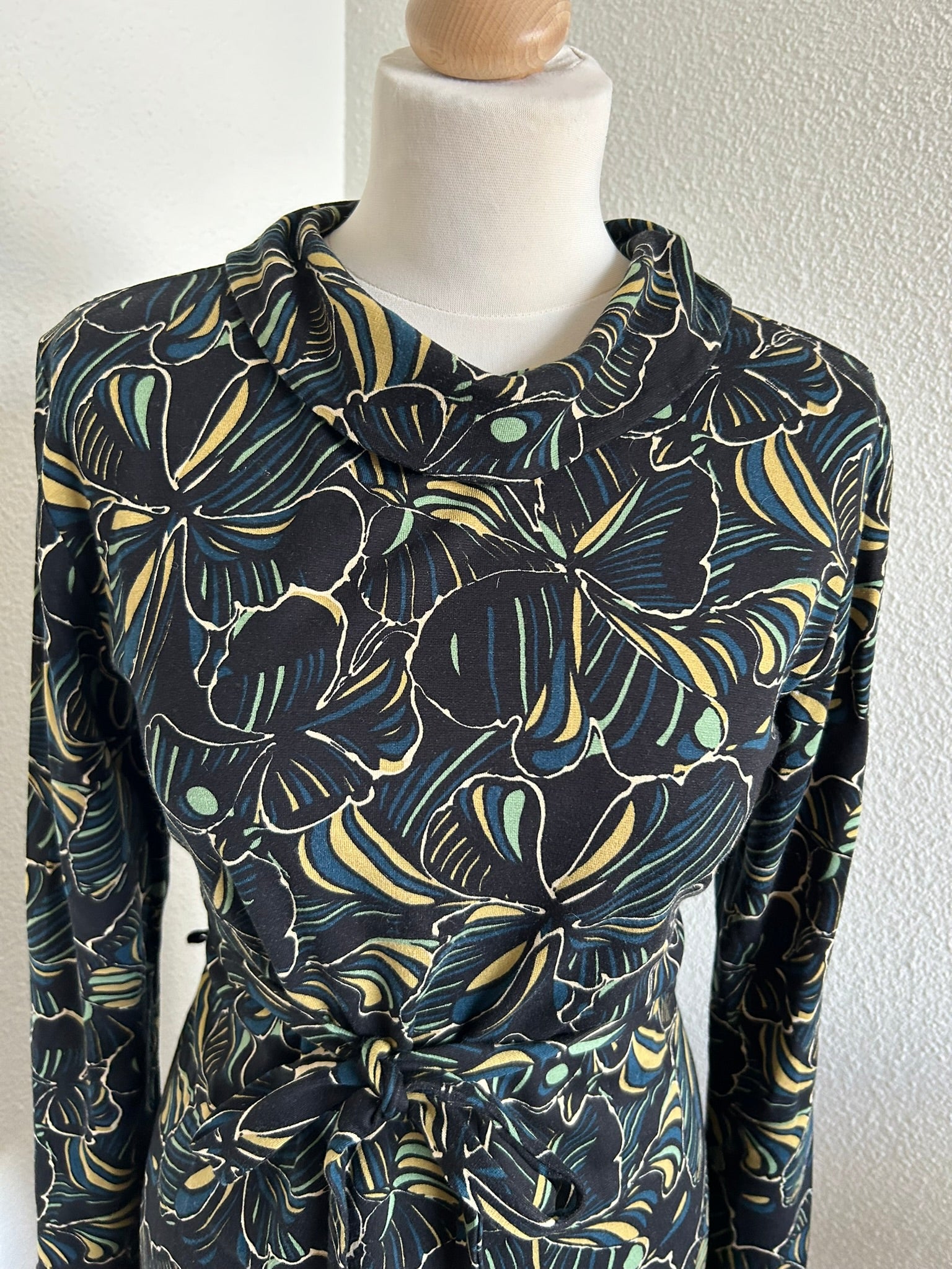 - Leuke jurk in zwart met mooie grafische retro bloemen print in wit geel blauw en groen