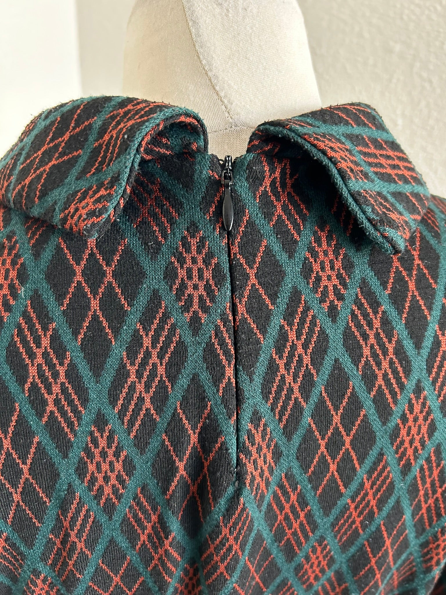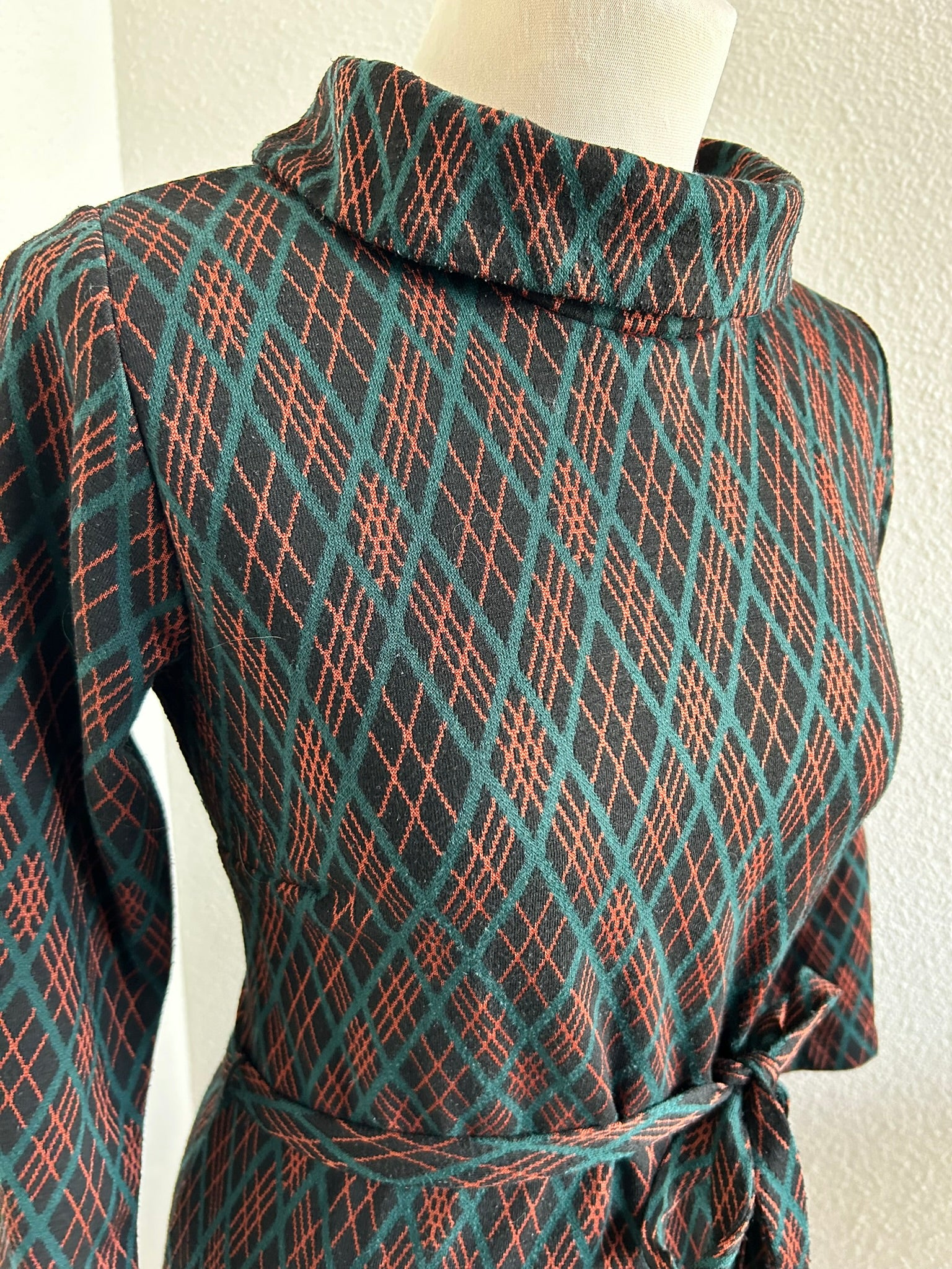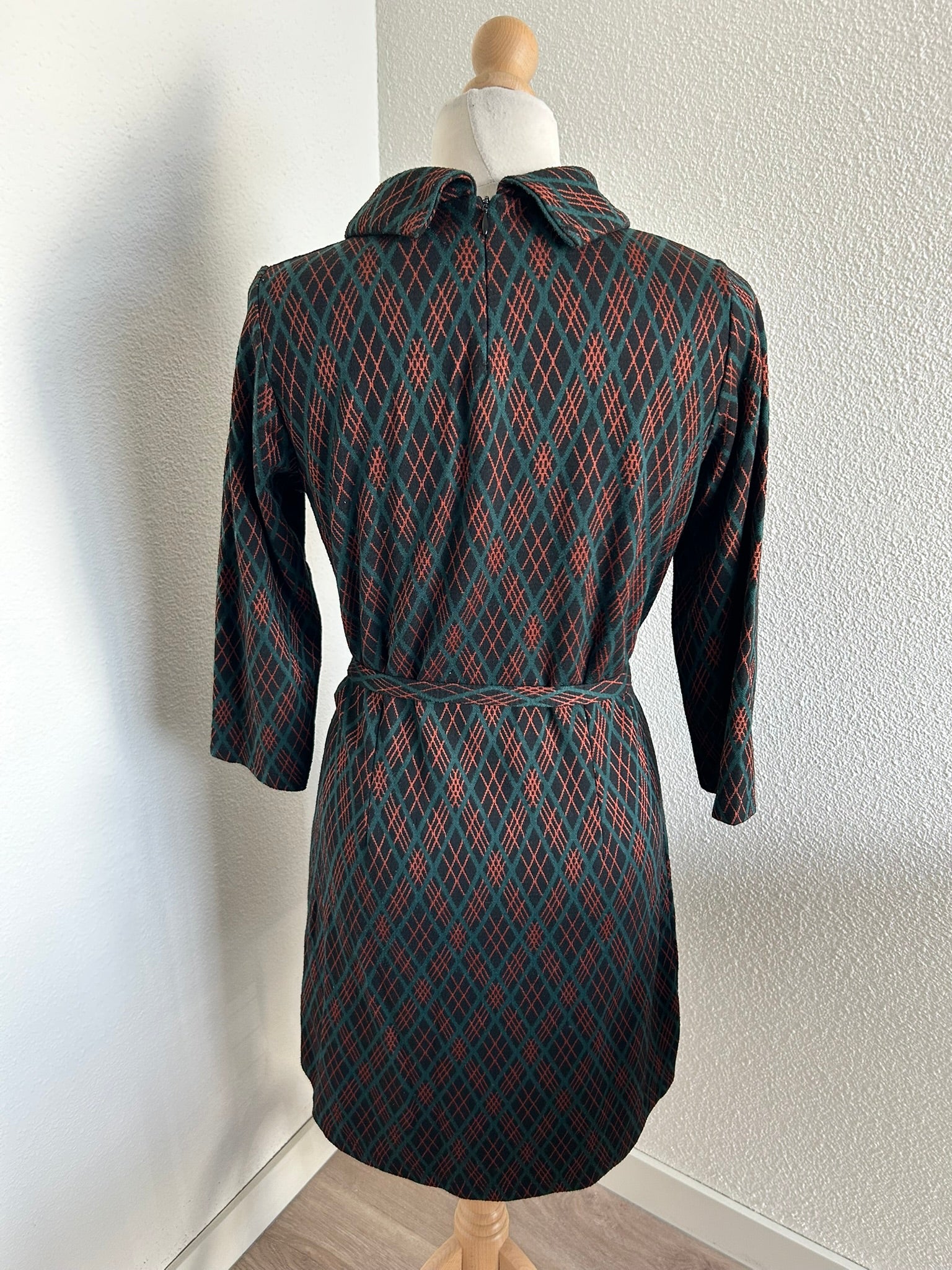 - Leuke najaars jurk in zwart met donkerrood/wijnrood en donkergroene geruit patroon