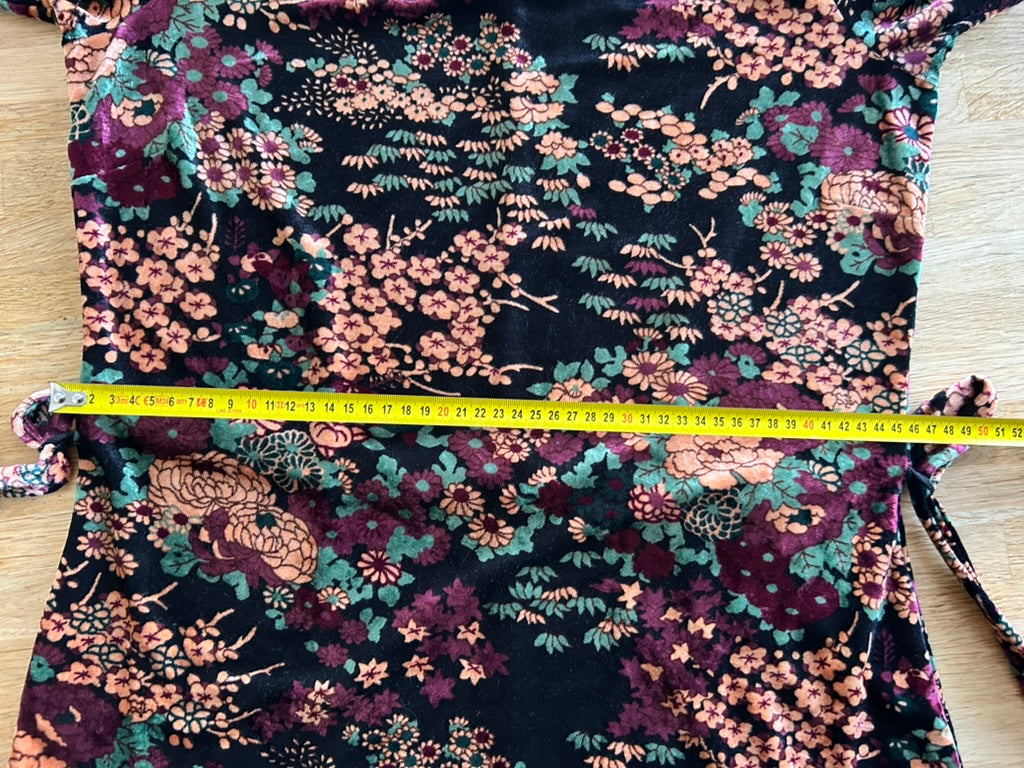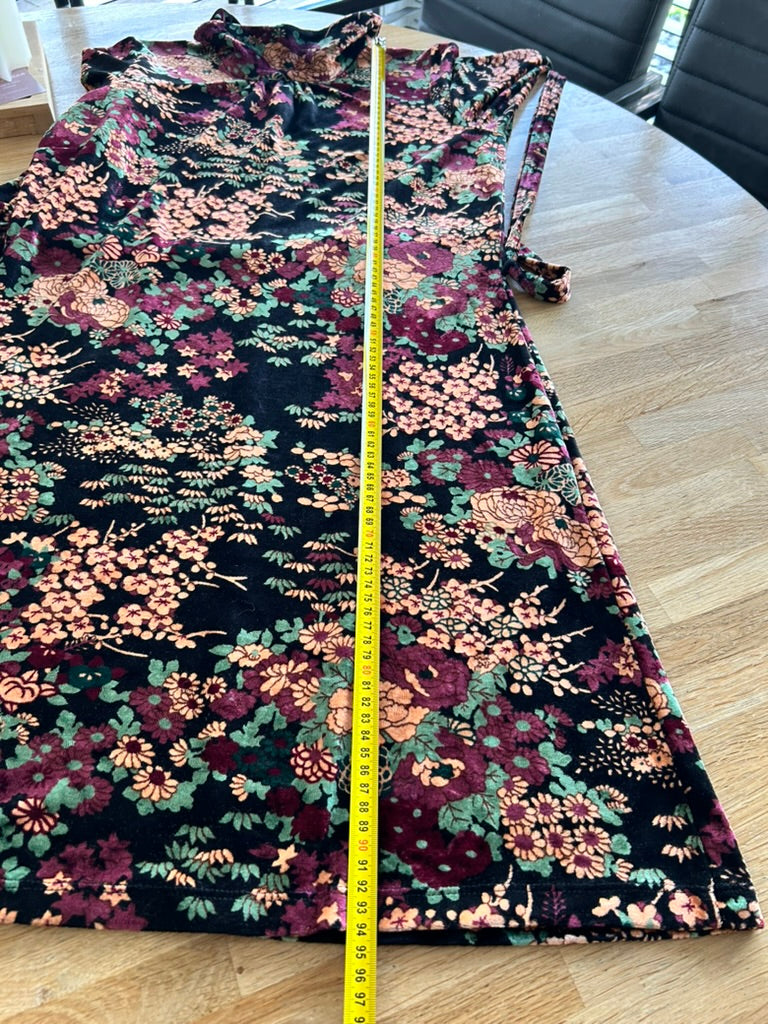 - Leuke jurk in zwart met Aziatische retro bloemen print in roze paars blauw wit en mosterd geel