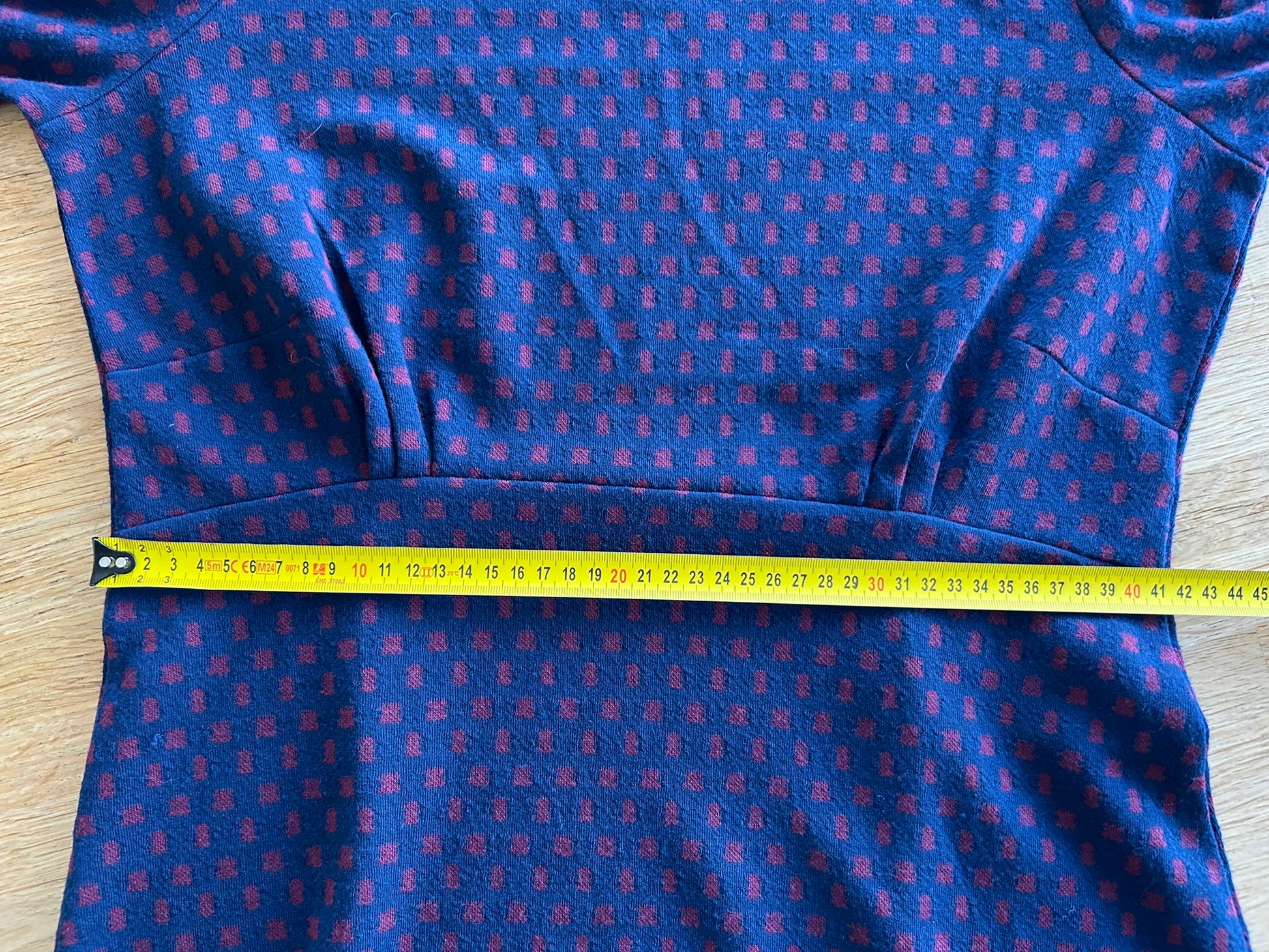 - Leuk retro donkerblauwe, marine jurk met wijnrood blokjes patroon