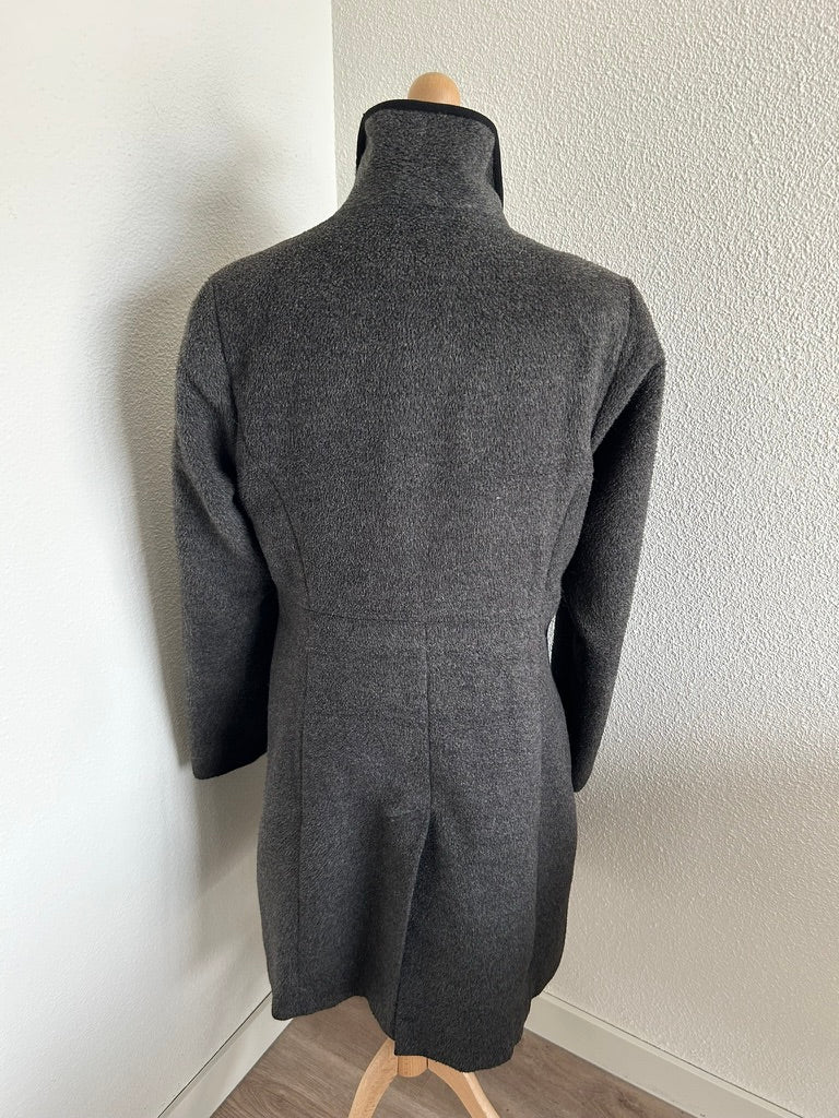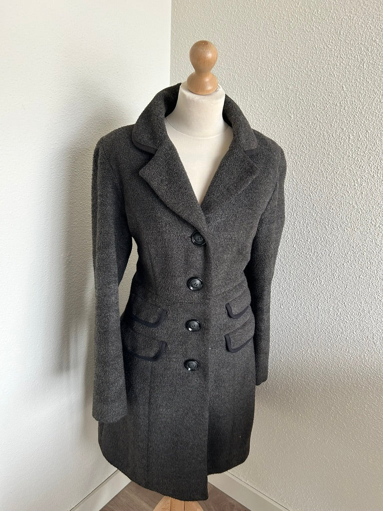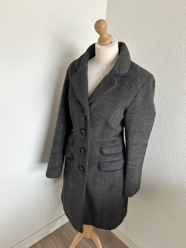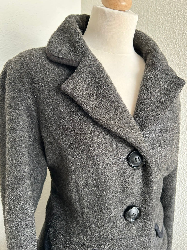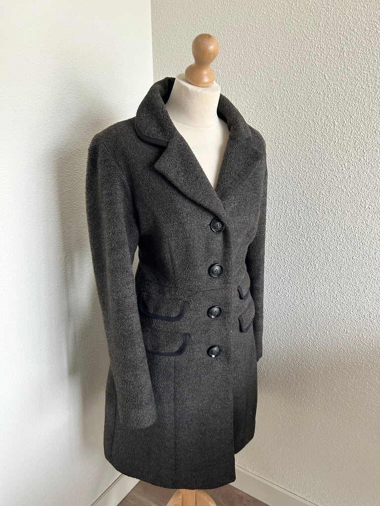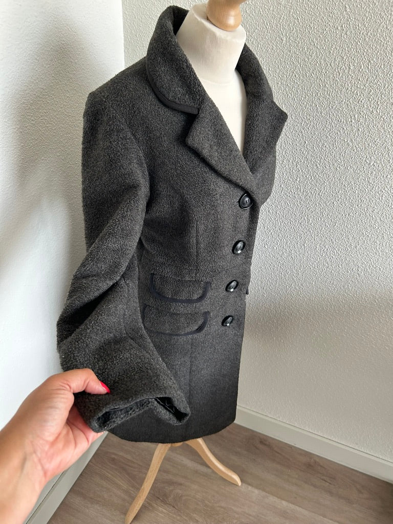 - Leuk retro donker grijze/antraciet kleruige jas met zwarte details