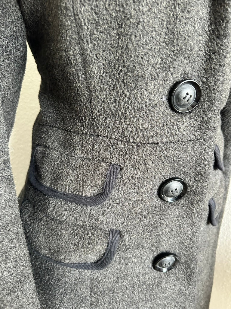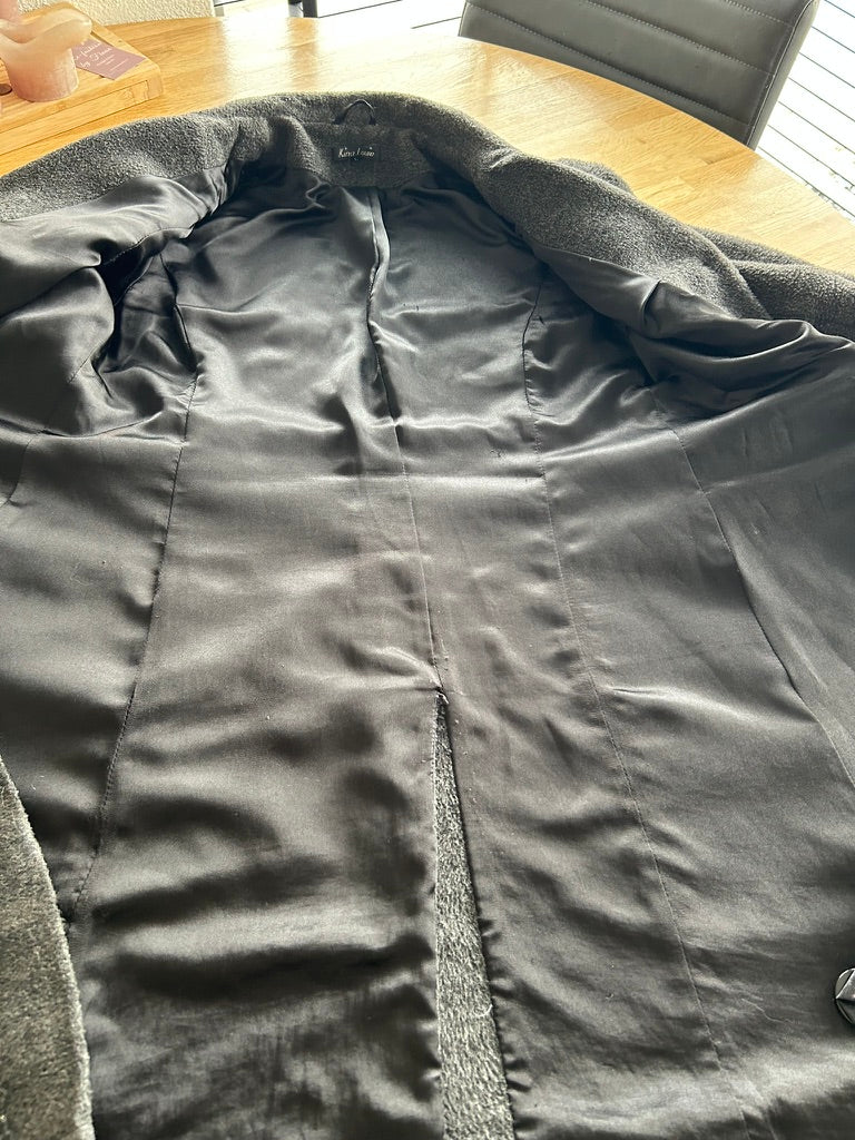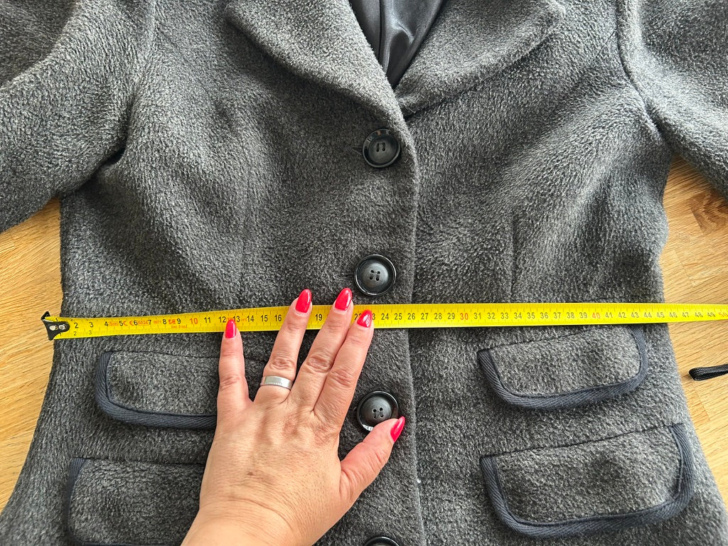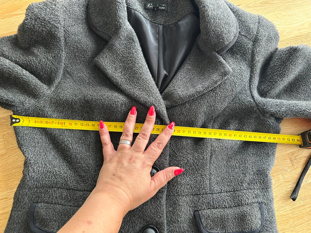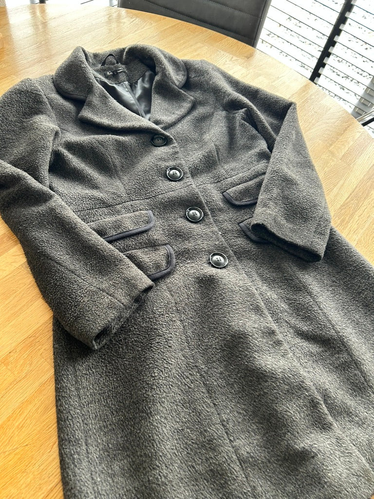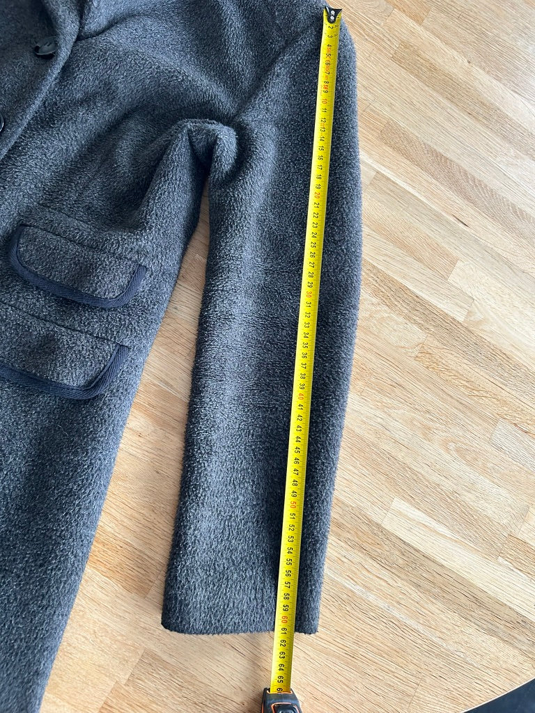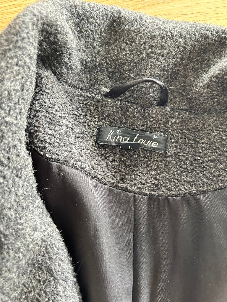 - Leuk retro donker grijze/antraciet kleruige jas met zwarte details