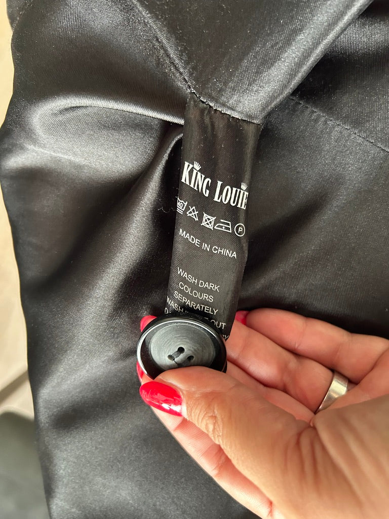- Mooie halslijn met kraagje, grote retro knopen, steekzakken, middellang model