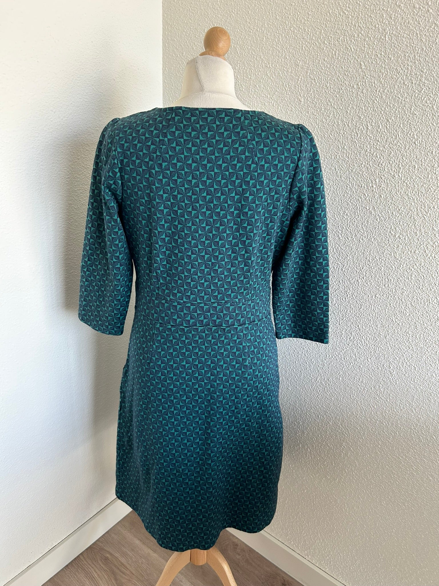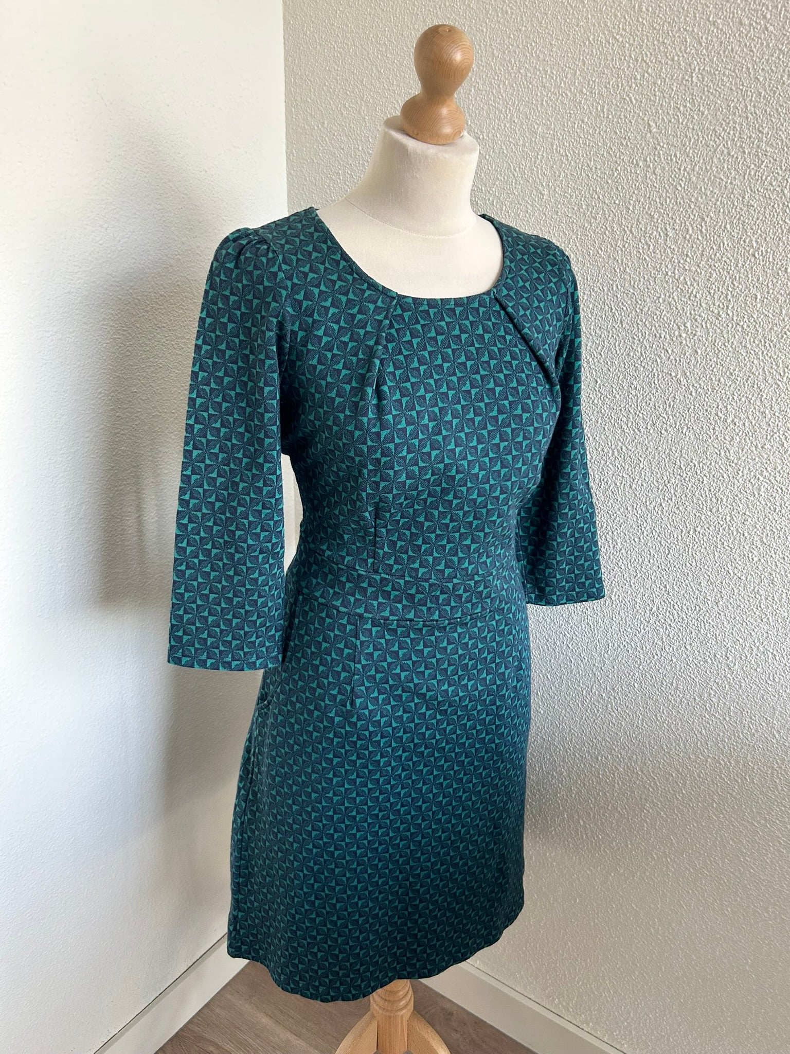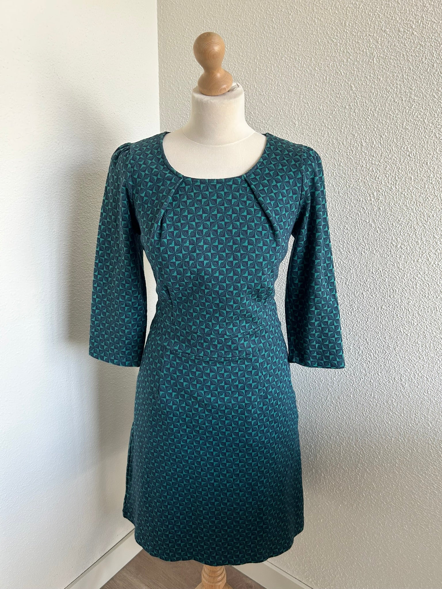 - Leuke jurk in donkerblauw en donkergroene retro geruite/geblokte print