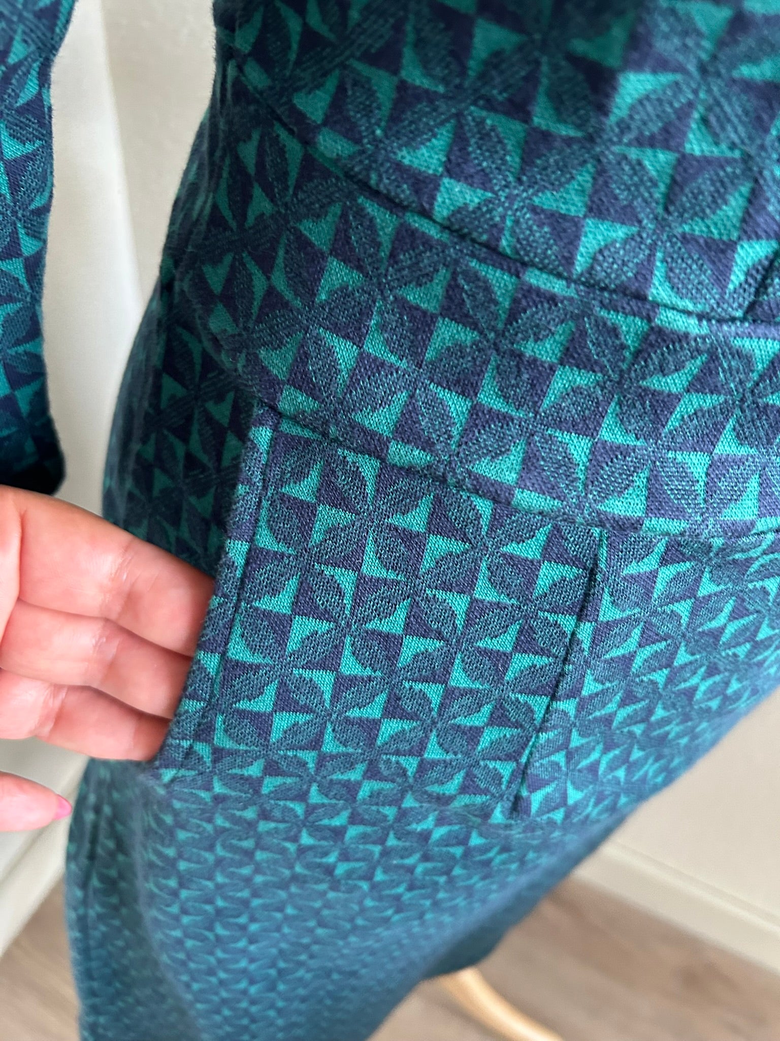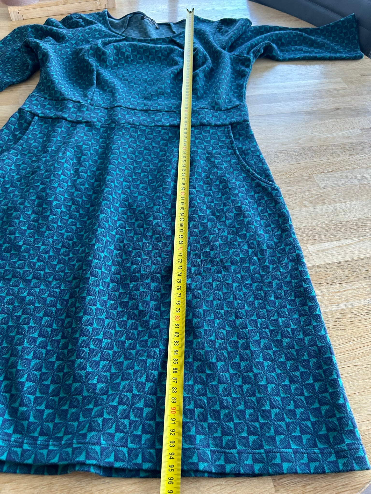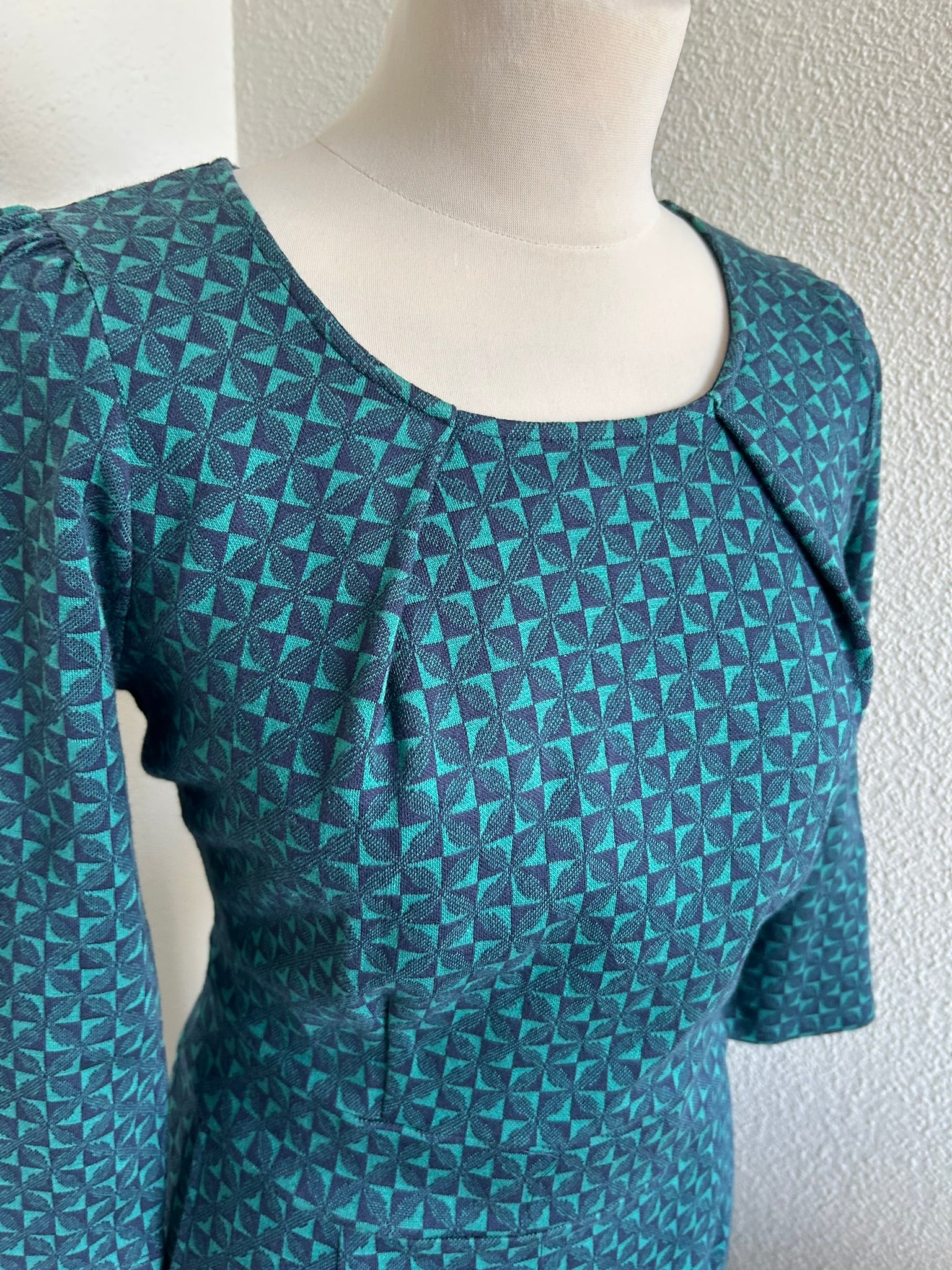 - Leuke jurk in donkerblauw en donkergroene retro geruite/geblokte print