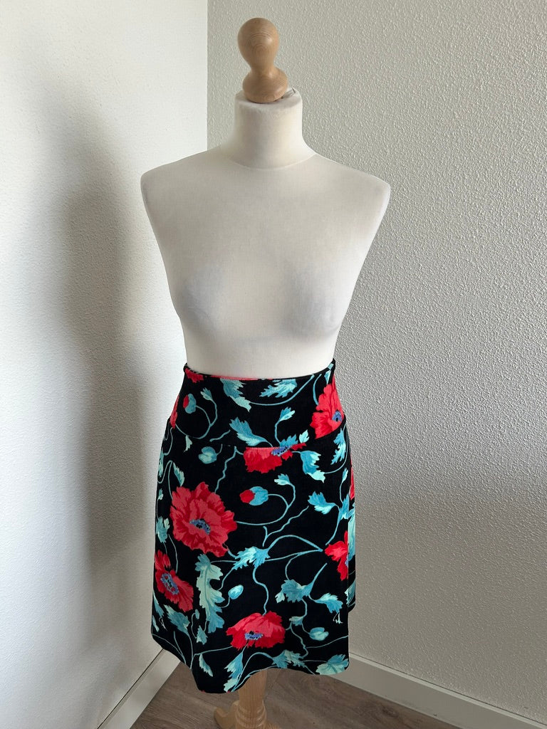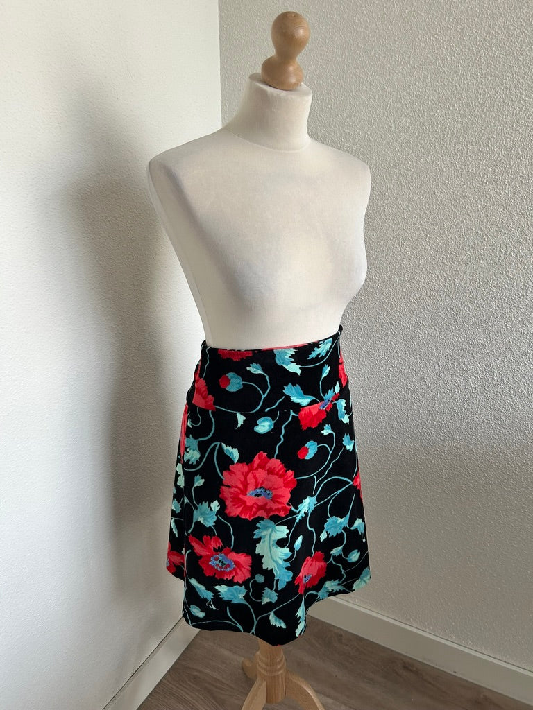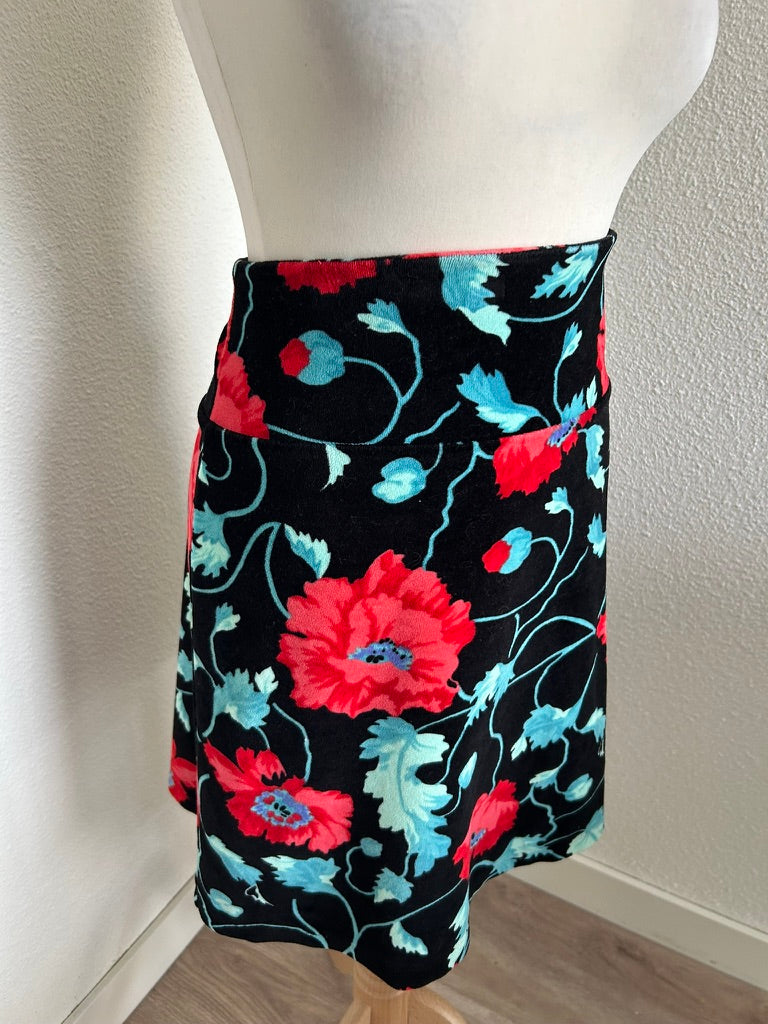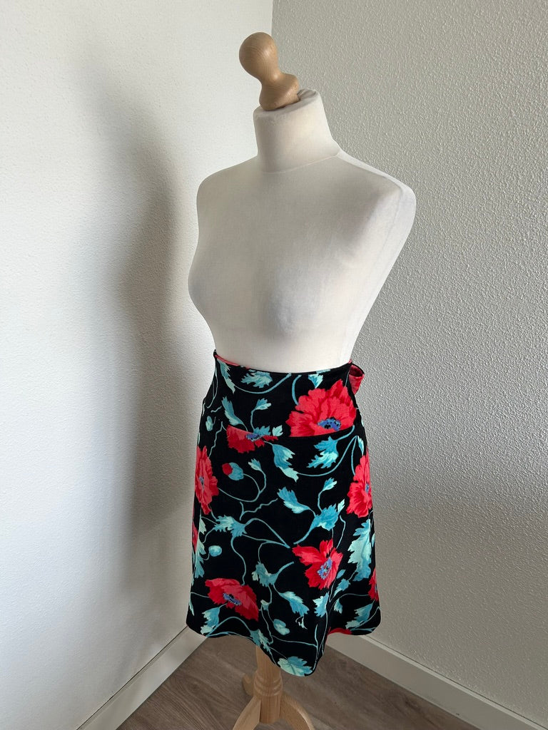 - Leuke rok in zwart met print van bloemen/klaprozen in rood wit en groen