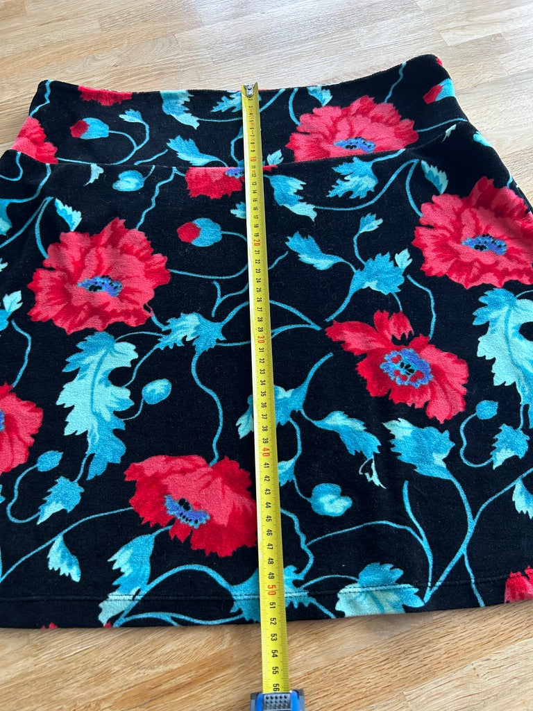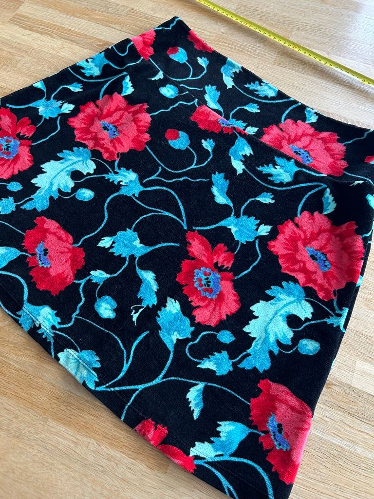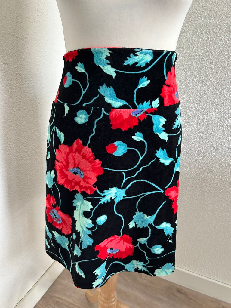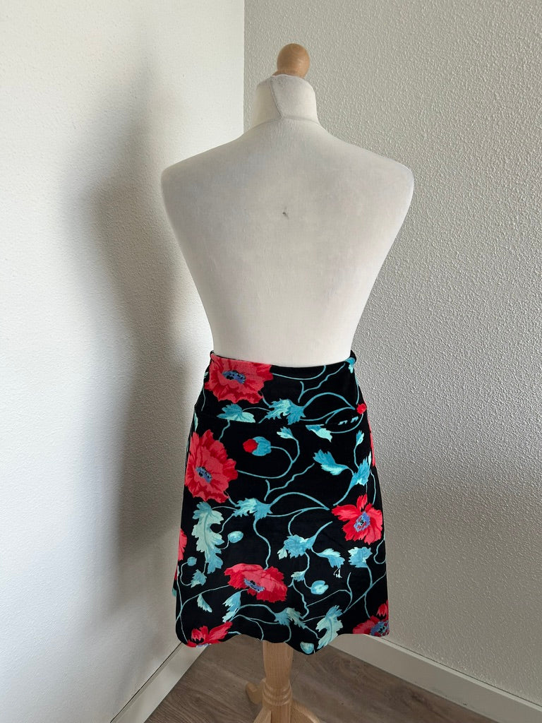 - Leuke rok in zwart met print van bloemen/klaprozen in rood wit en groen