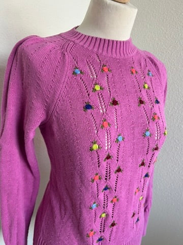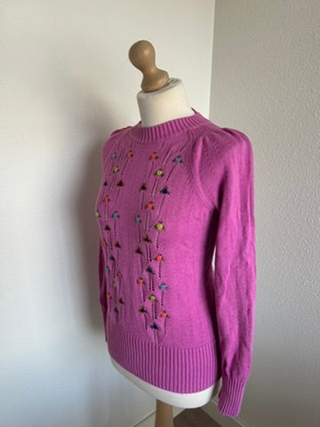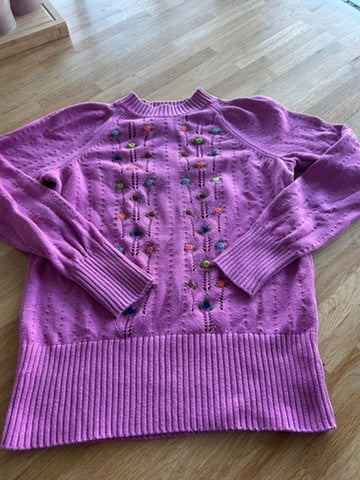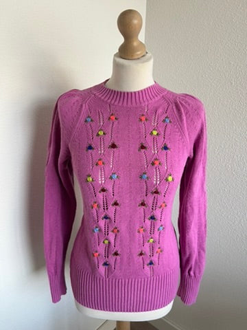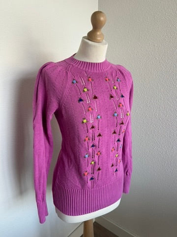 - Leuke winter trui met opengewert patroon en kleurrijke geborduurde dots