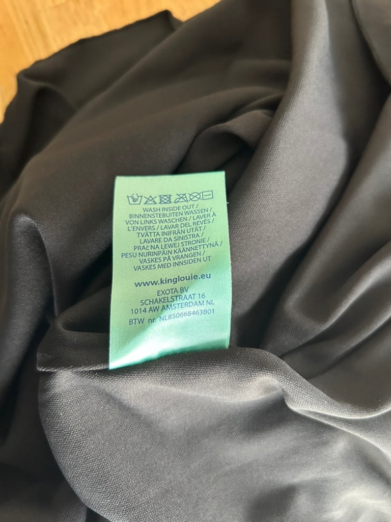 - Mooie v-halslijn, korte mouwen, getailleerd met tailleband en striklinten op de rug, open rug met striklinten in de nek, lang model