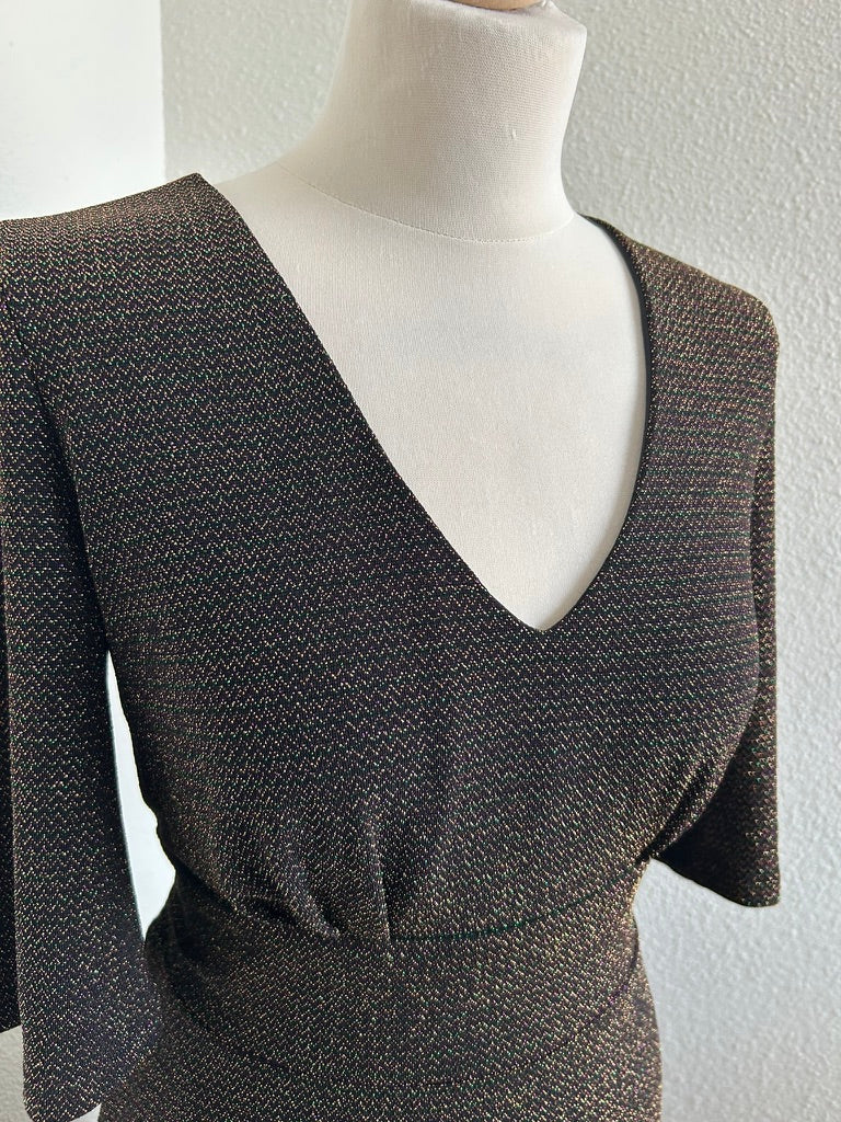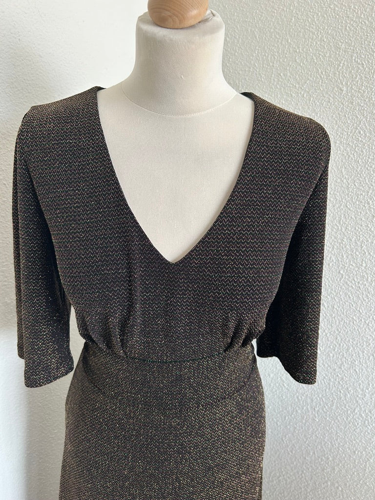- Mooie retro maxi lange glitter jurk met open rug (geschikt voor bh)