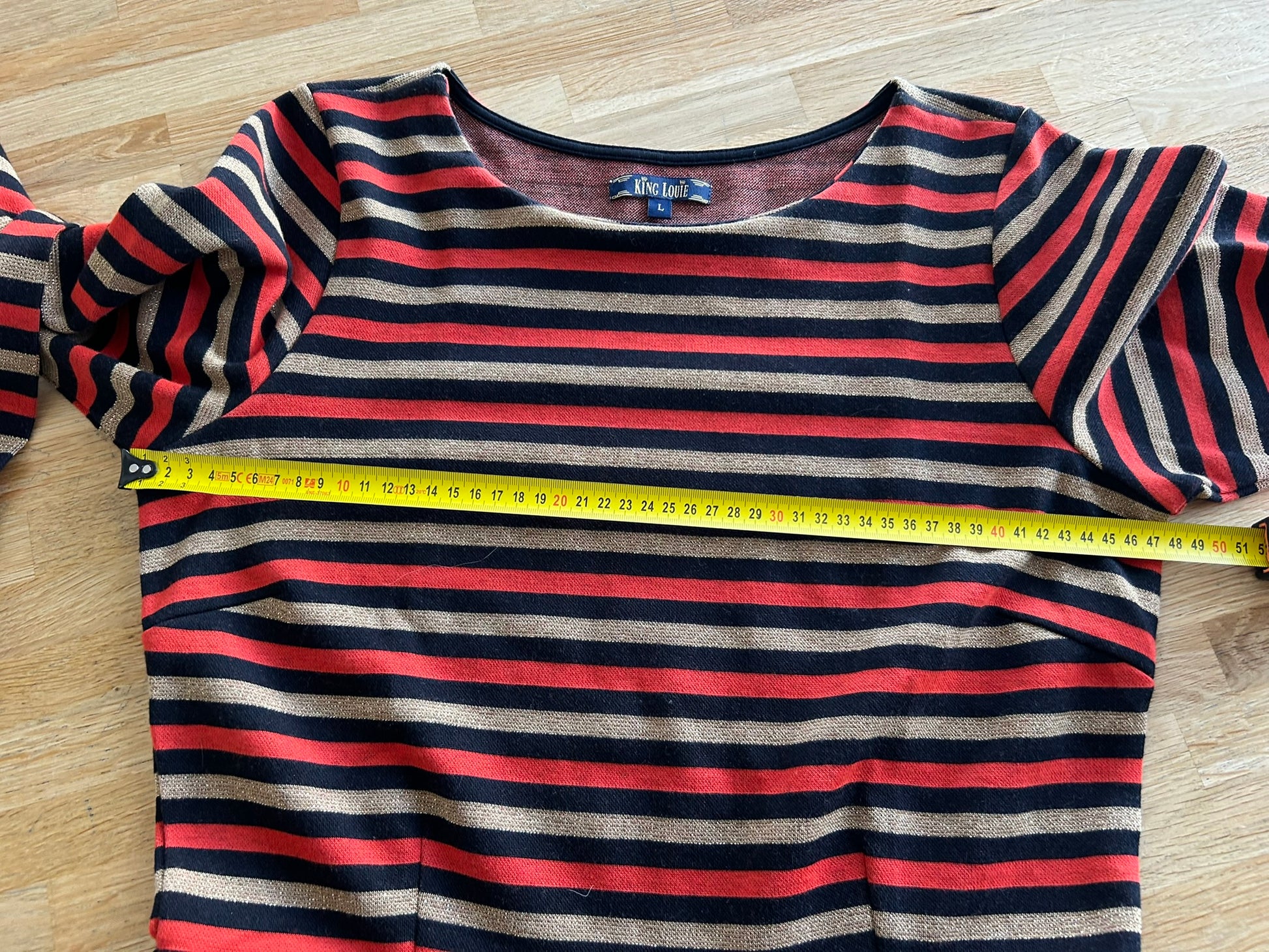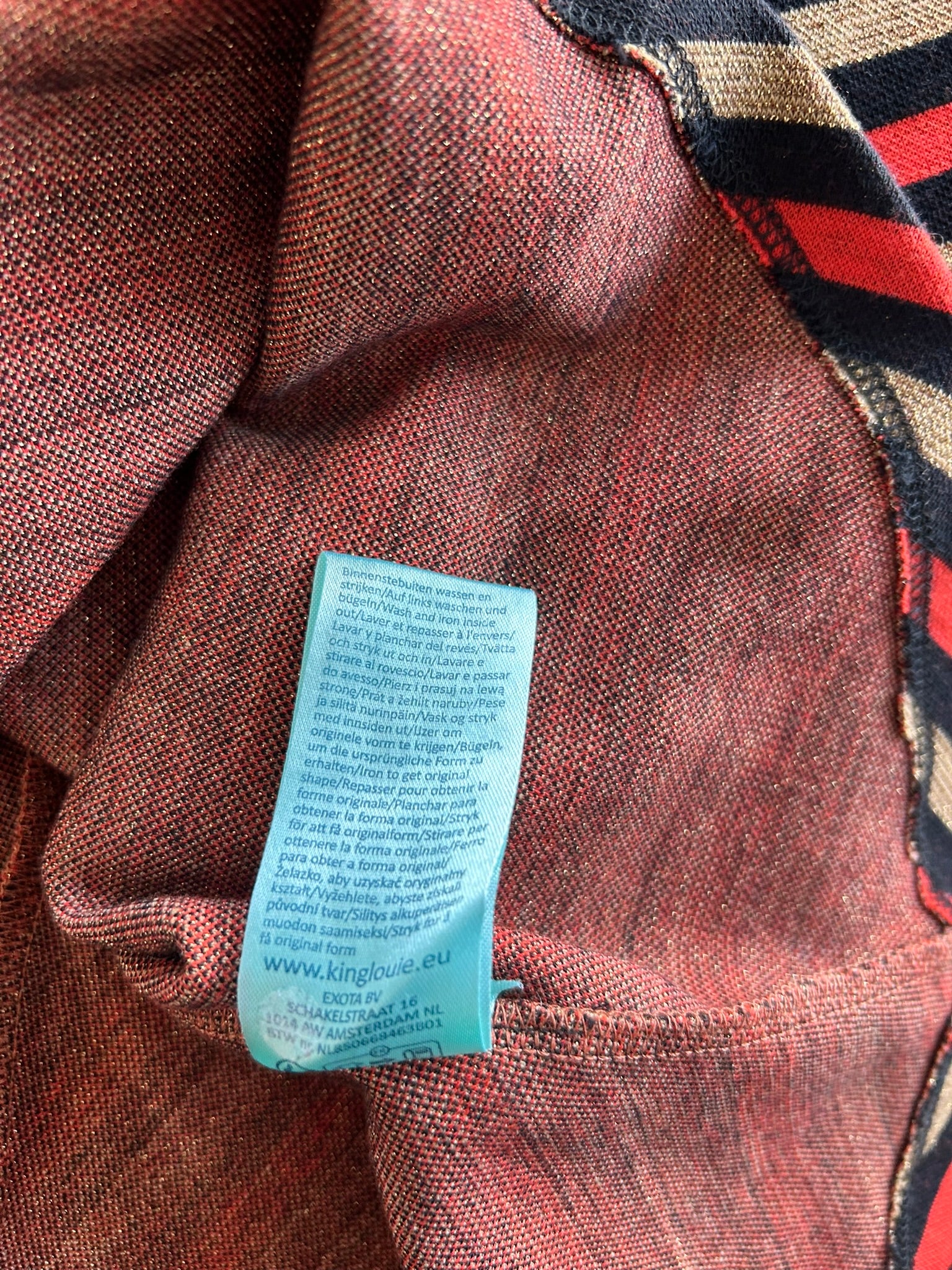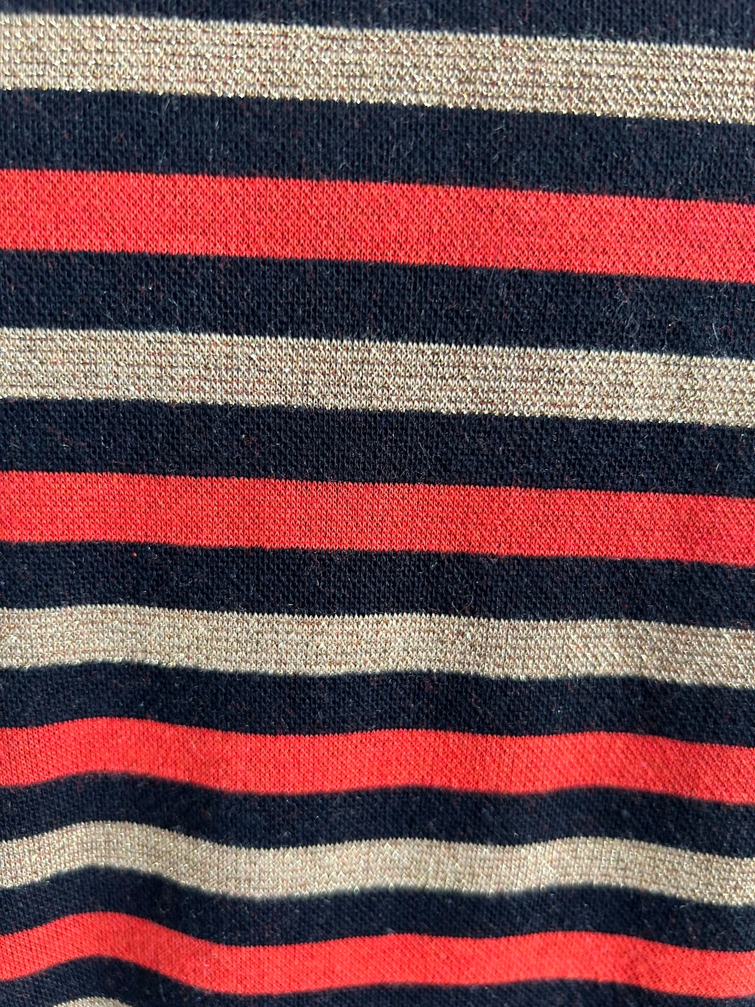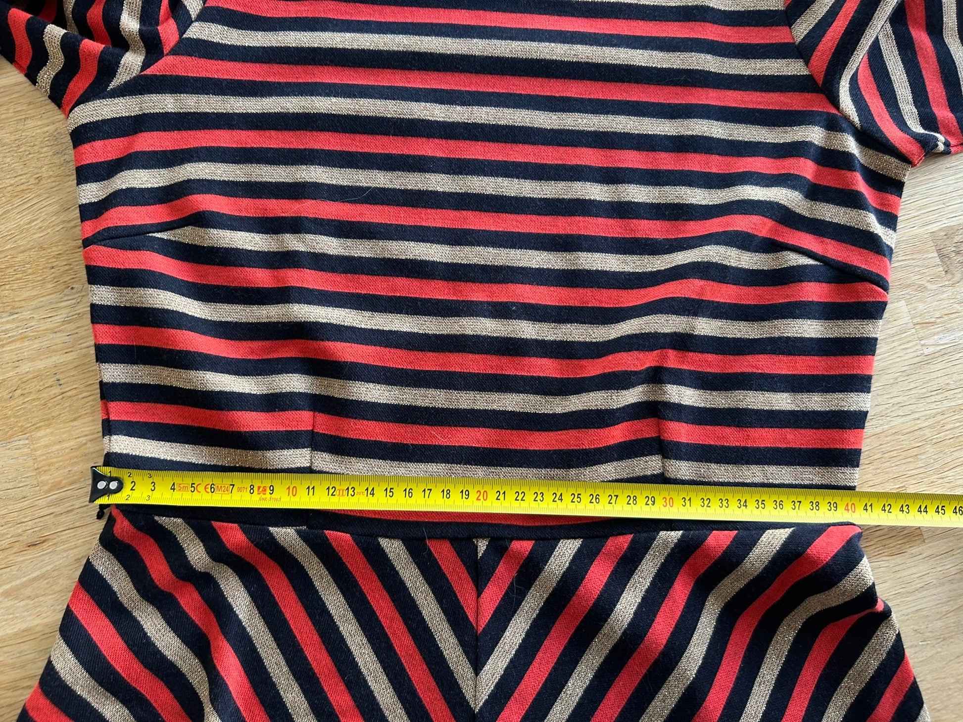 - Leuke najaars jurk in zwart, koraal-rood en gouden strepen, glitter