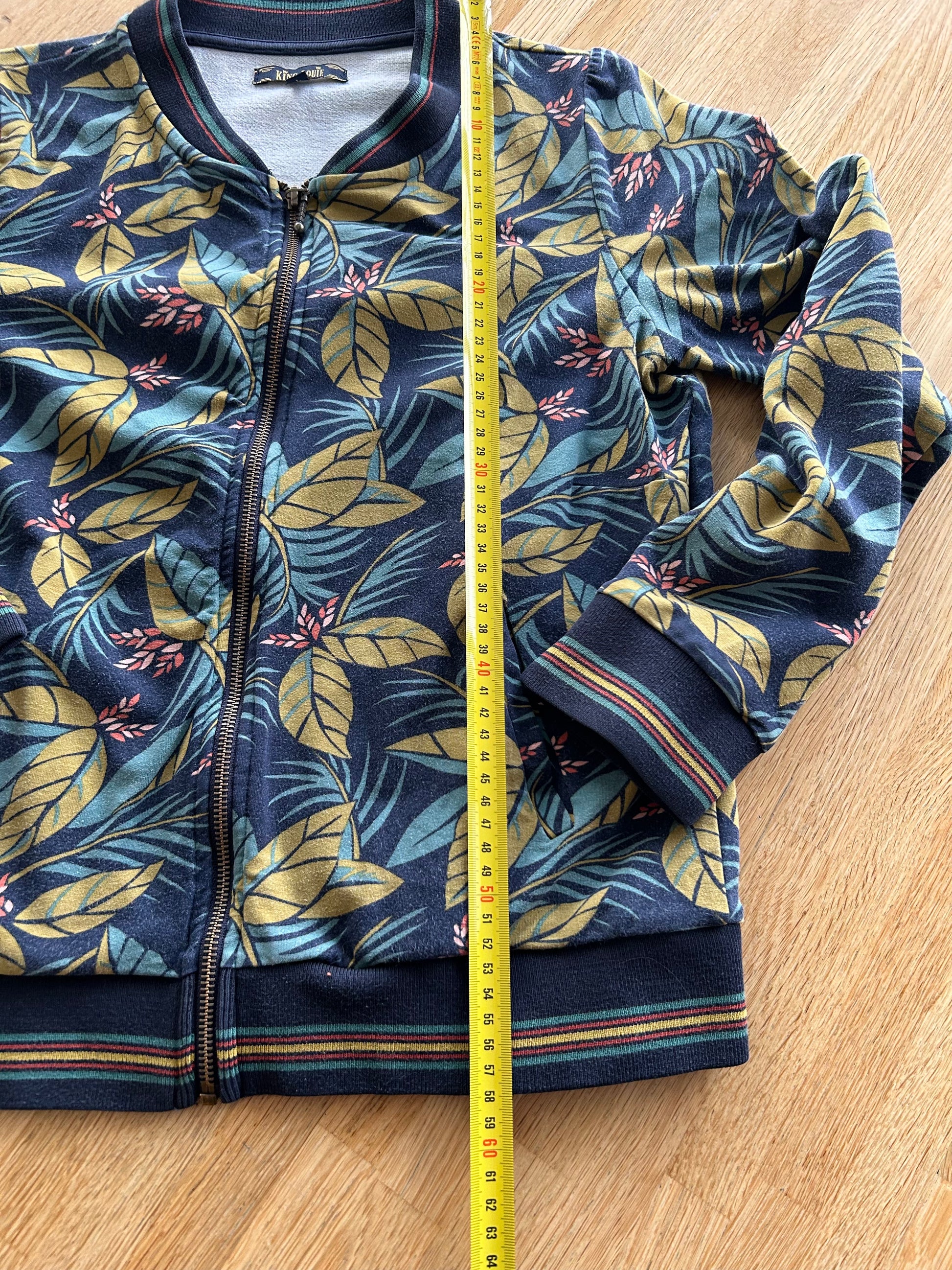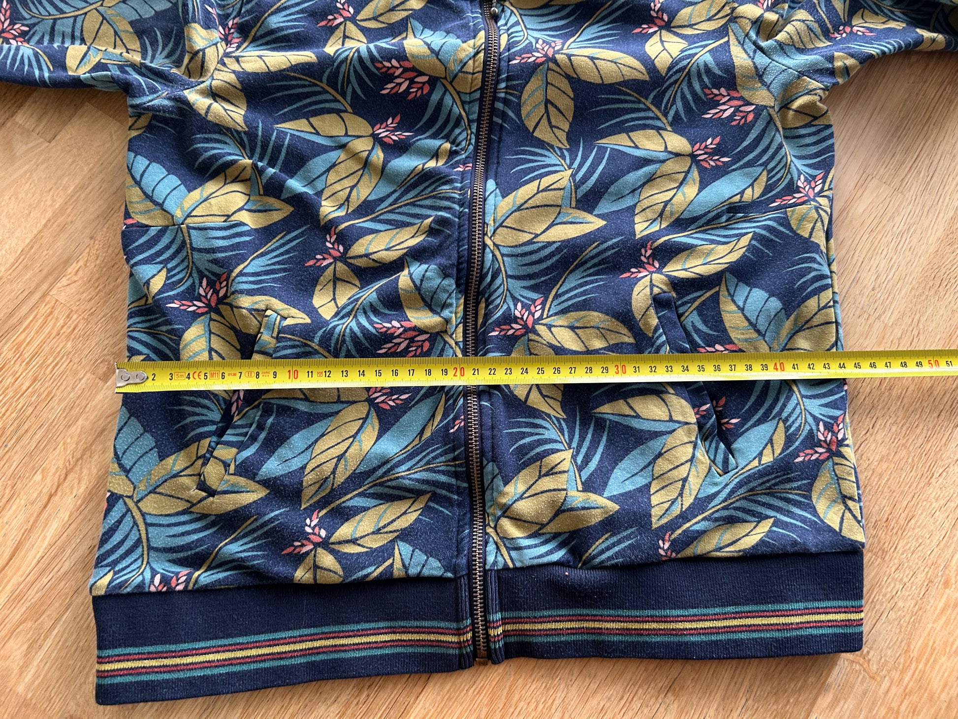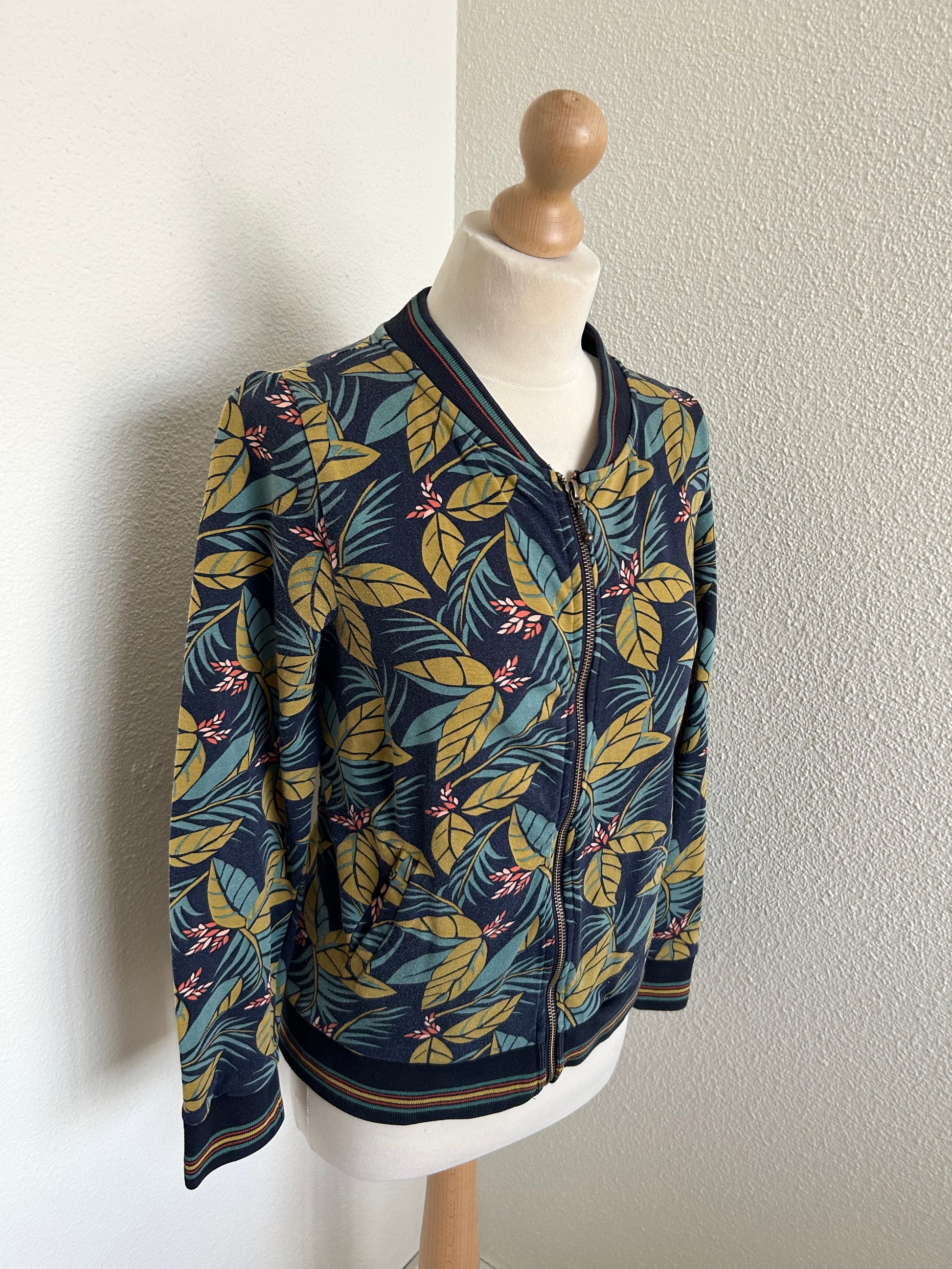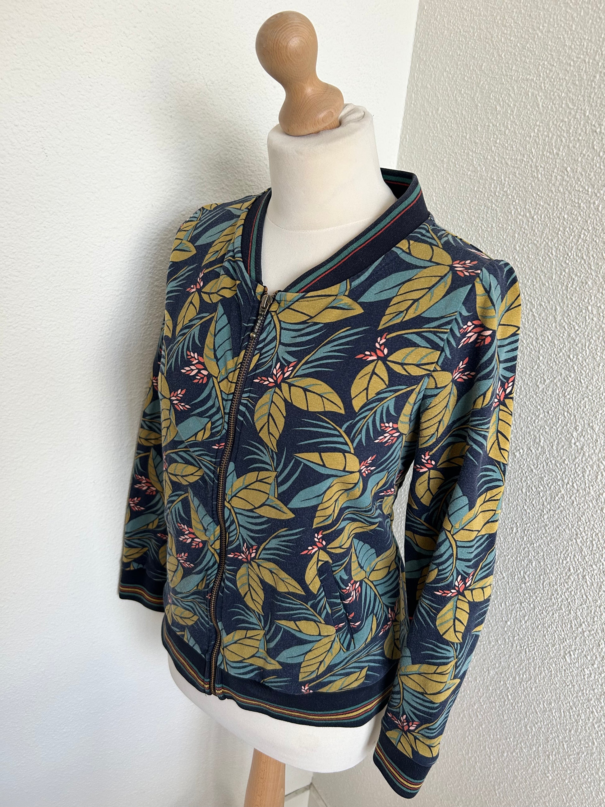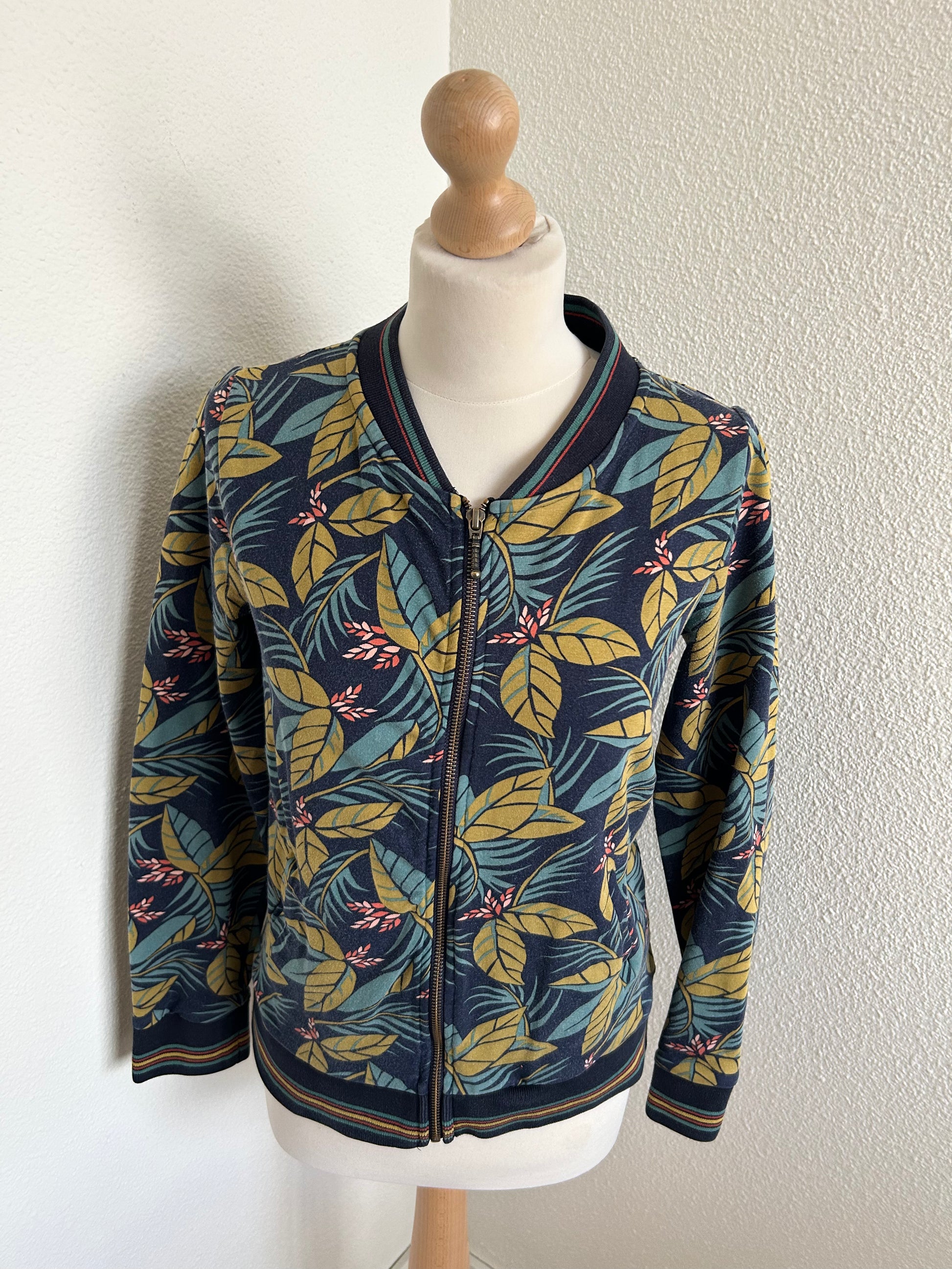 - Donkerblauw / marine blauw met groene en wijnrode tropische bladeren print