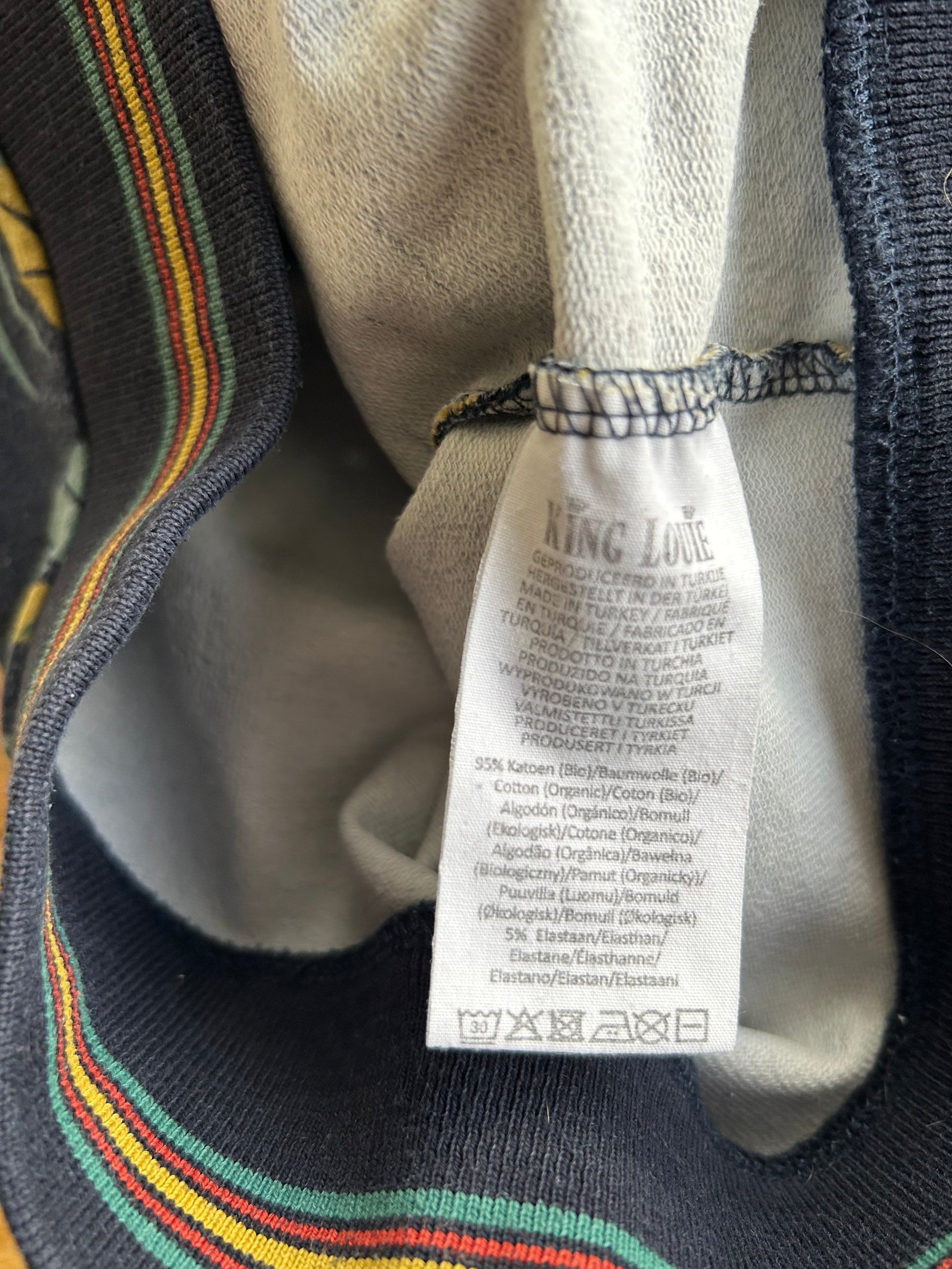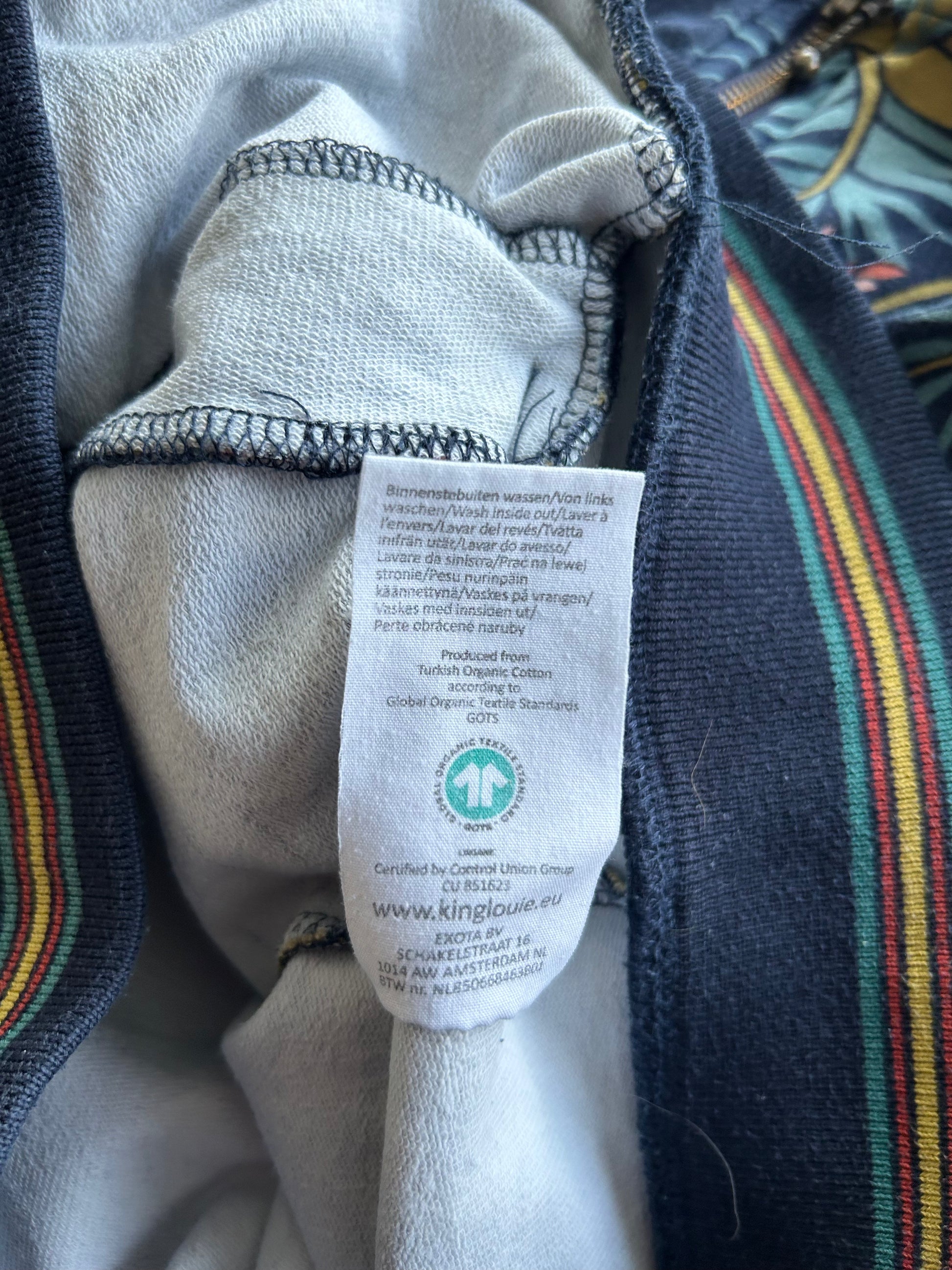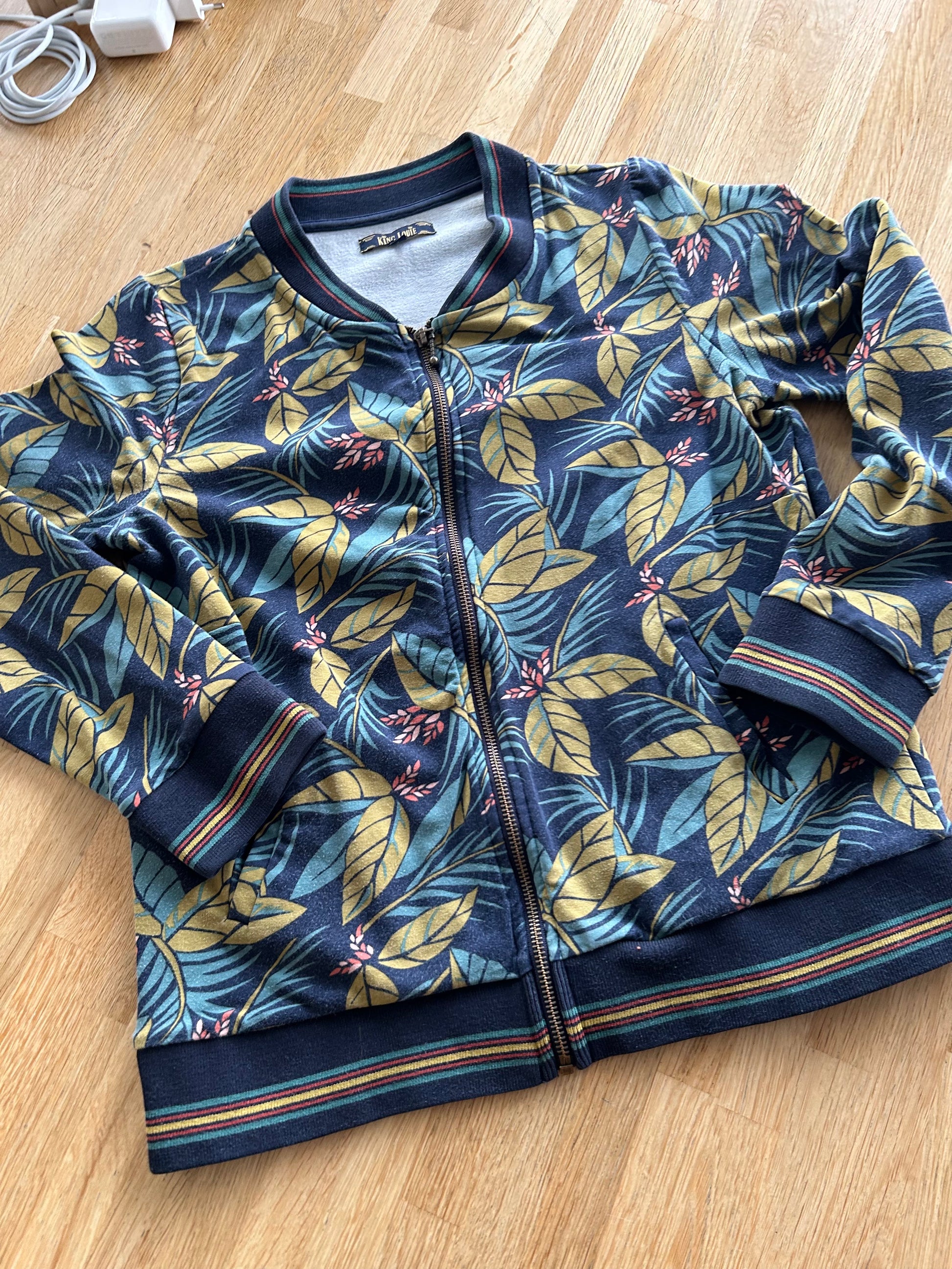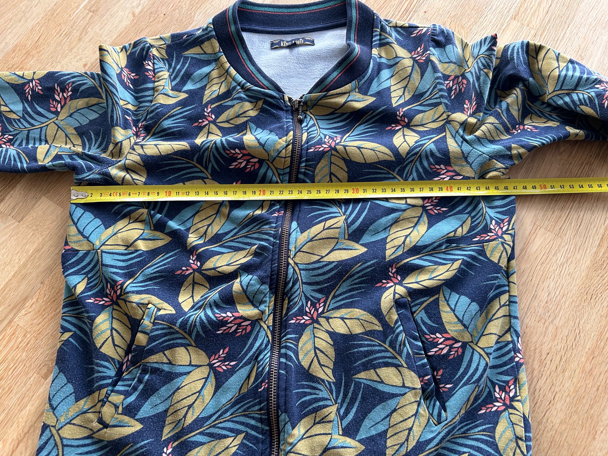 - Donkerblauw / marine blauw met groene en wijnrode tropische bladeren print