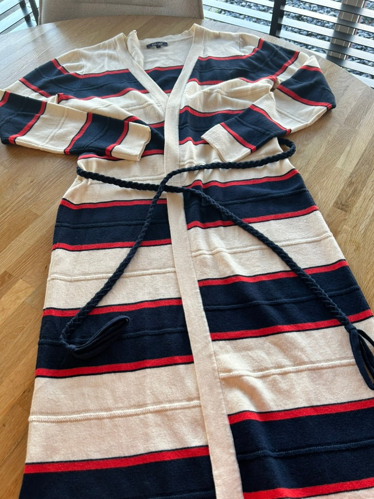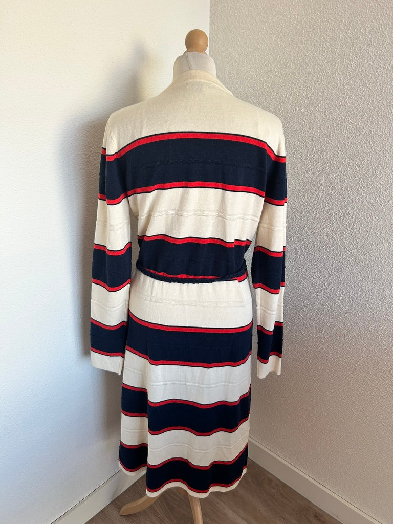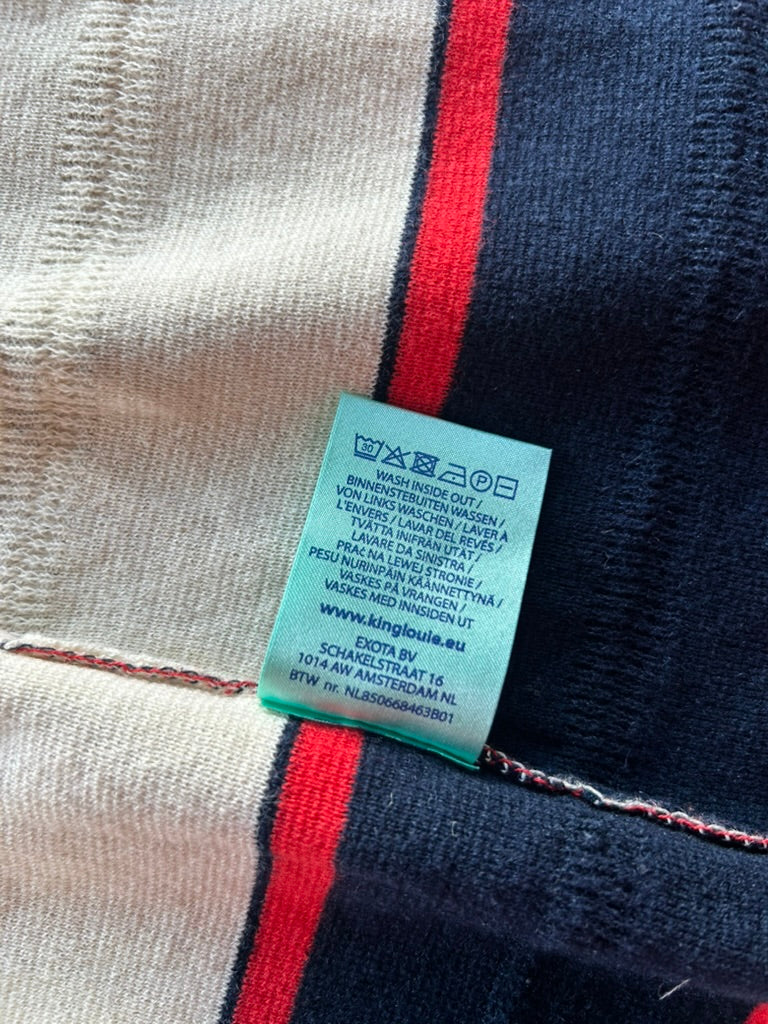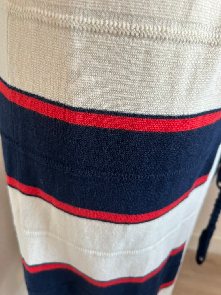 - Creme wit met rood en donkerblauw/marine blauw gestreept patroon